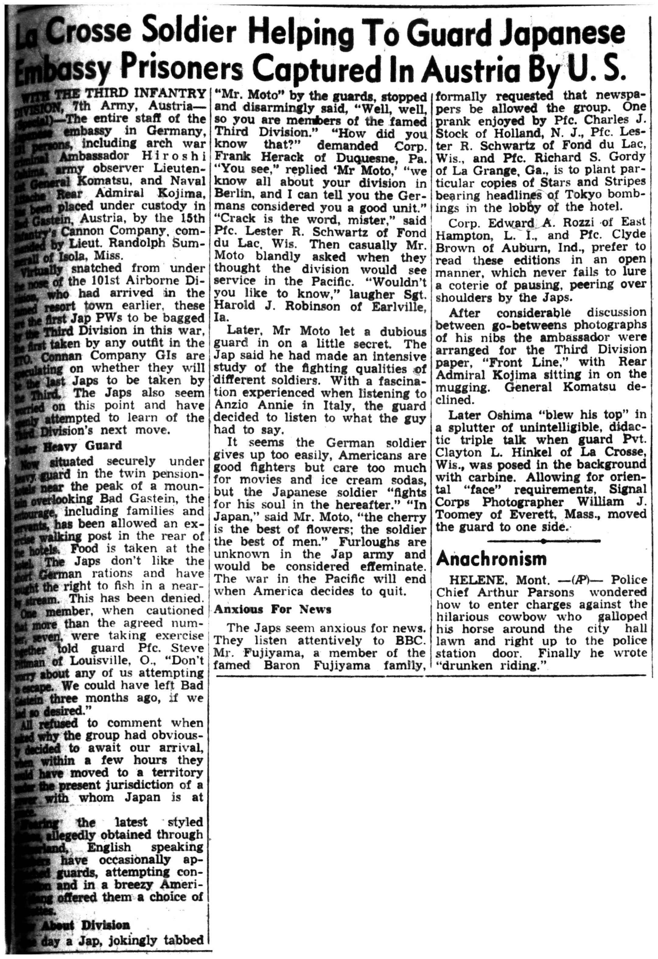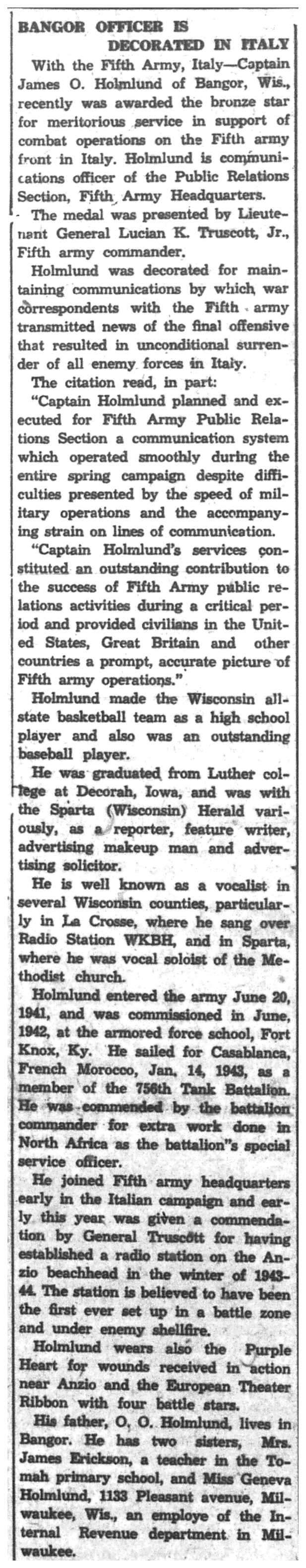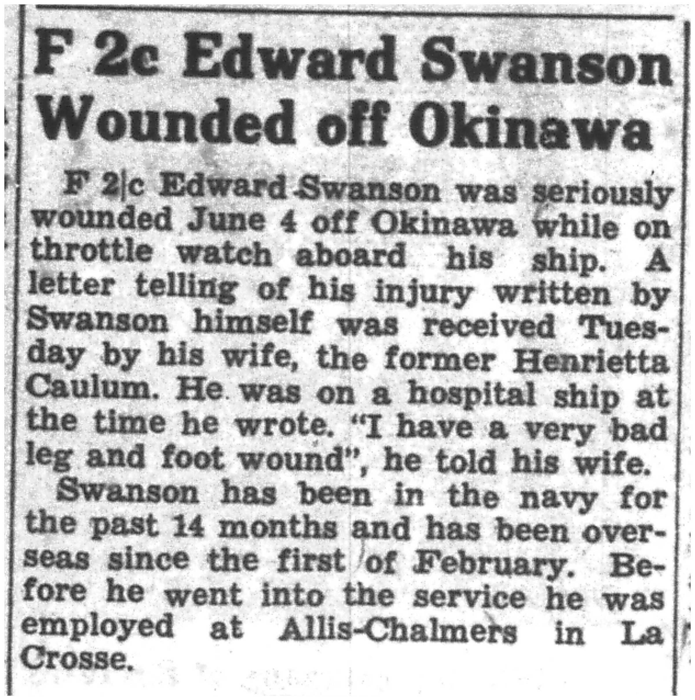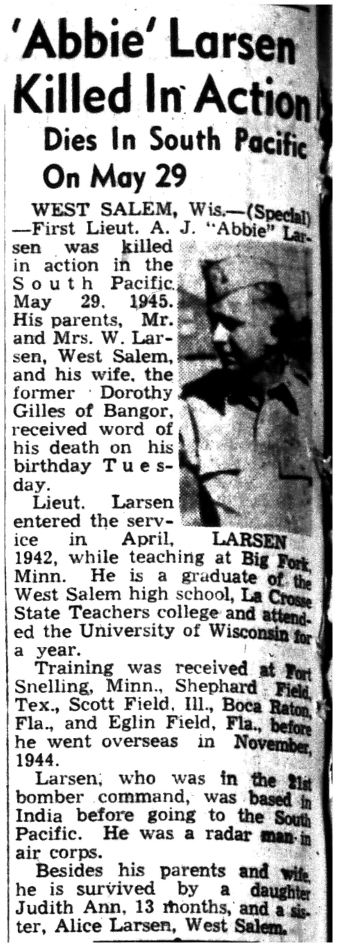 | 1945-6-4 | La Crosse Tribune p2 | |