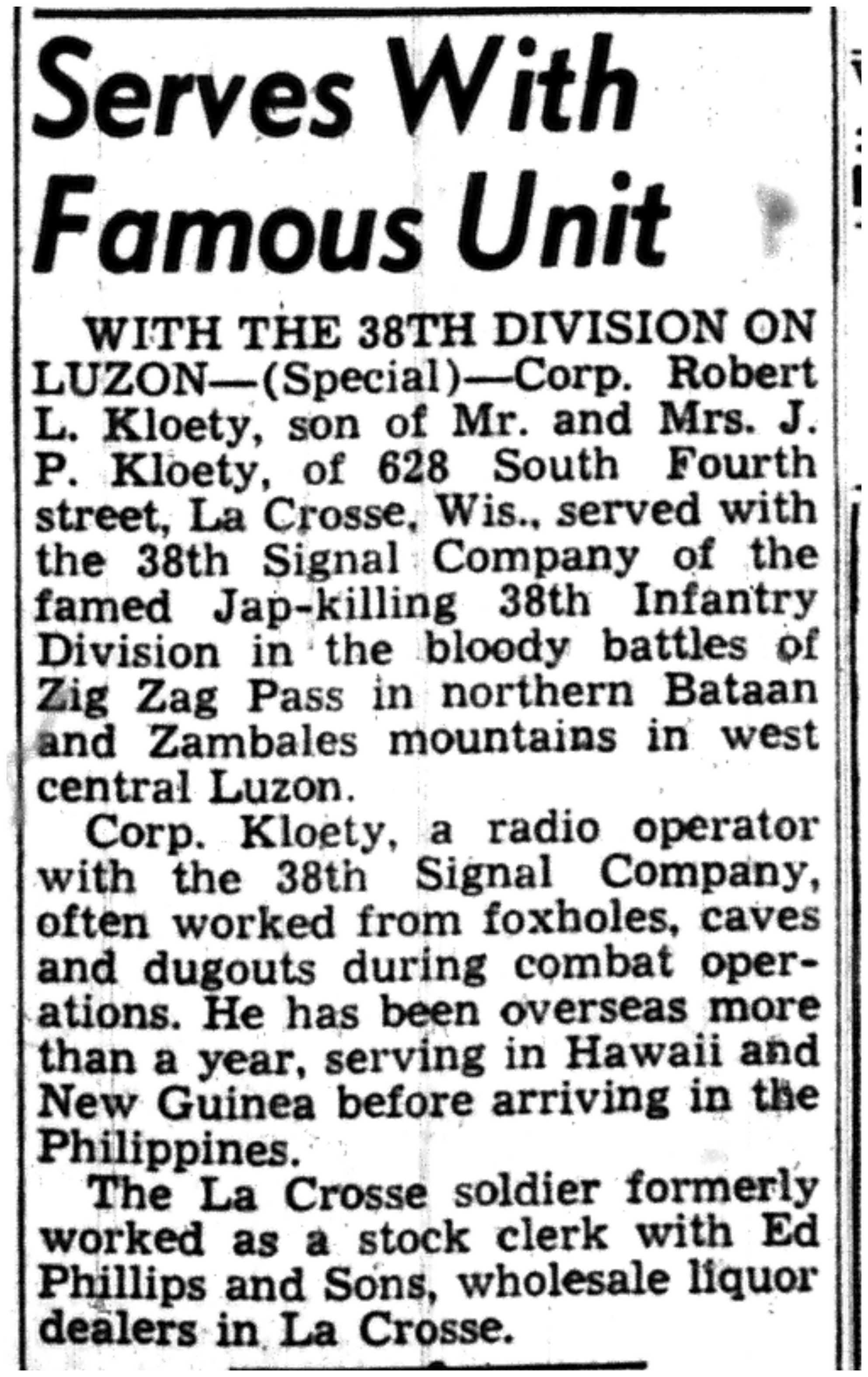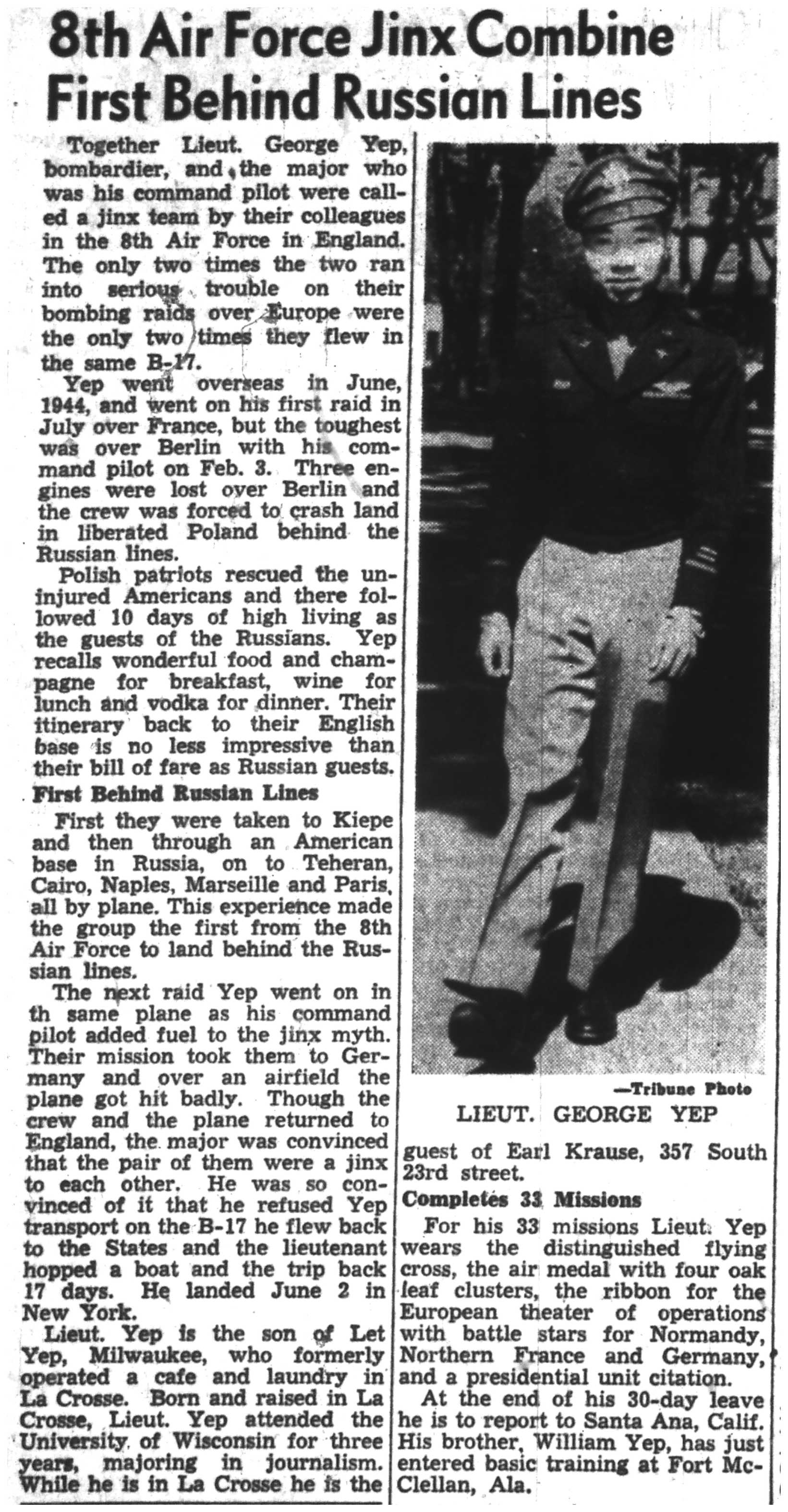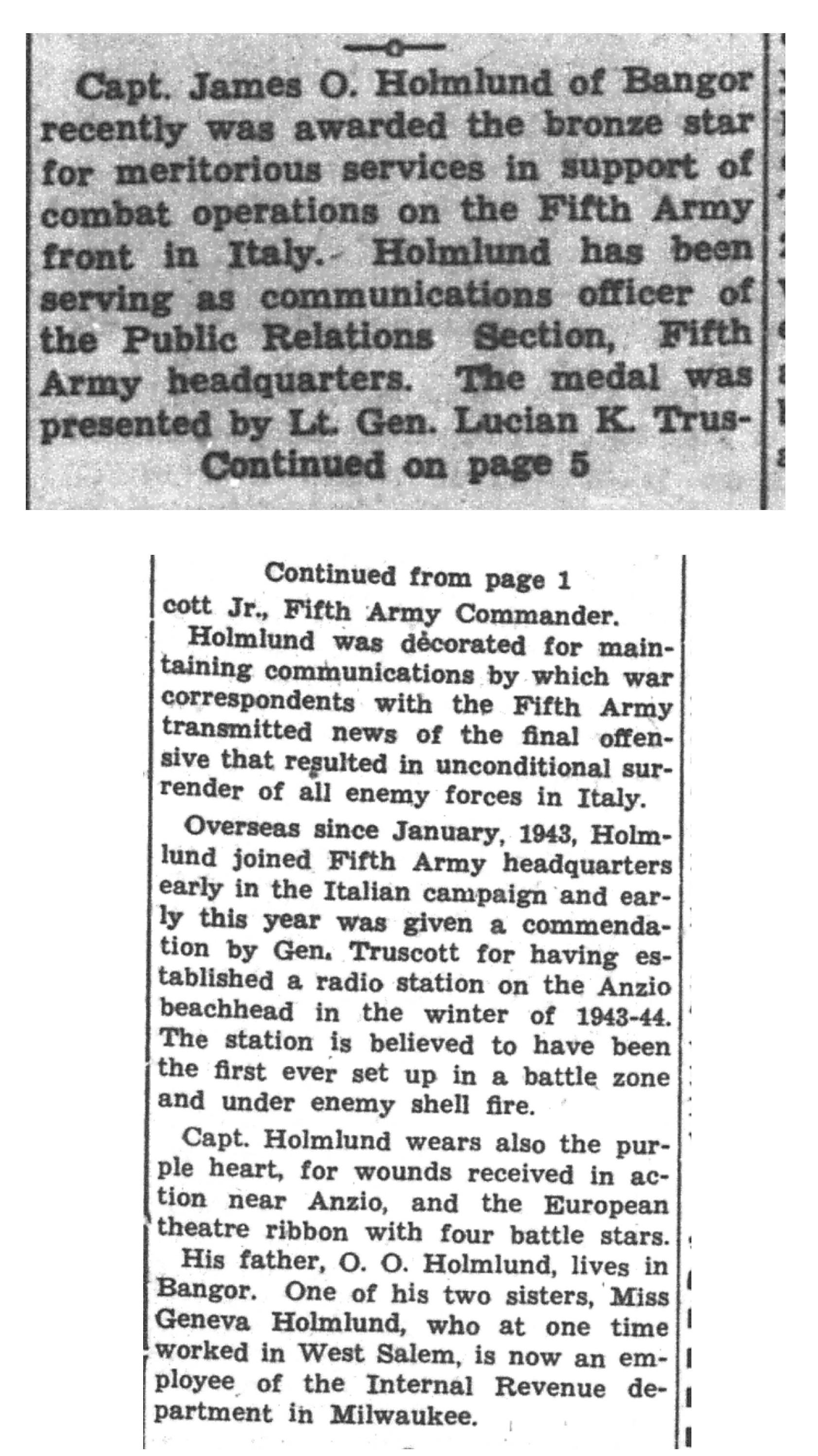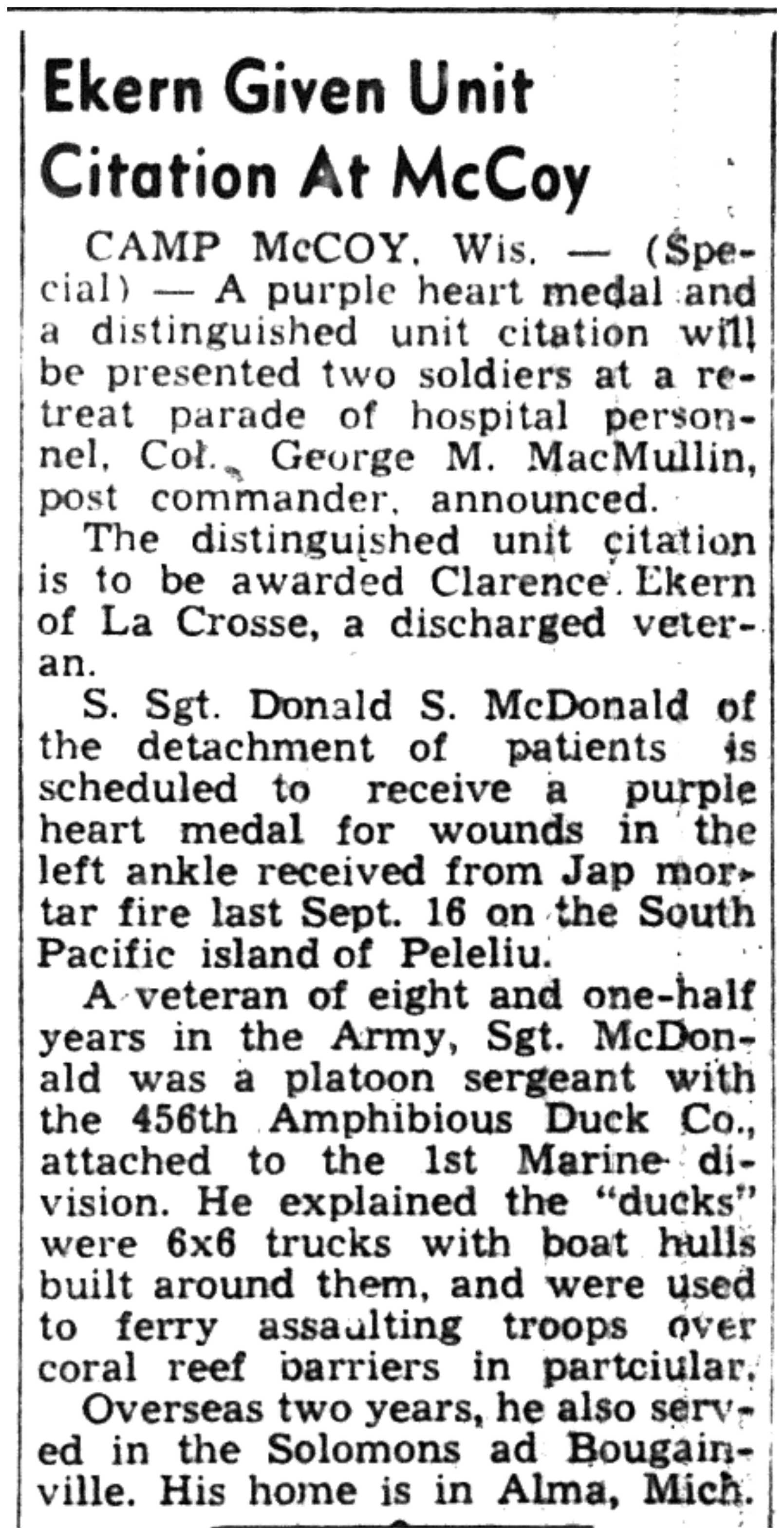 | 1945-6-4 | La Crosse Tribune p2 | |
