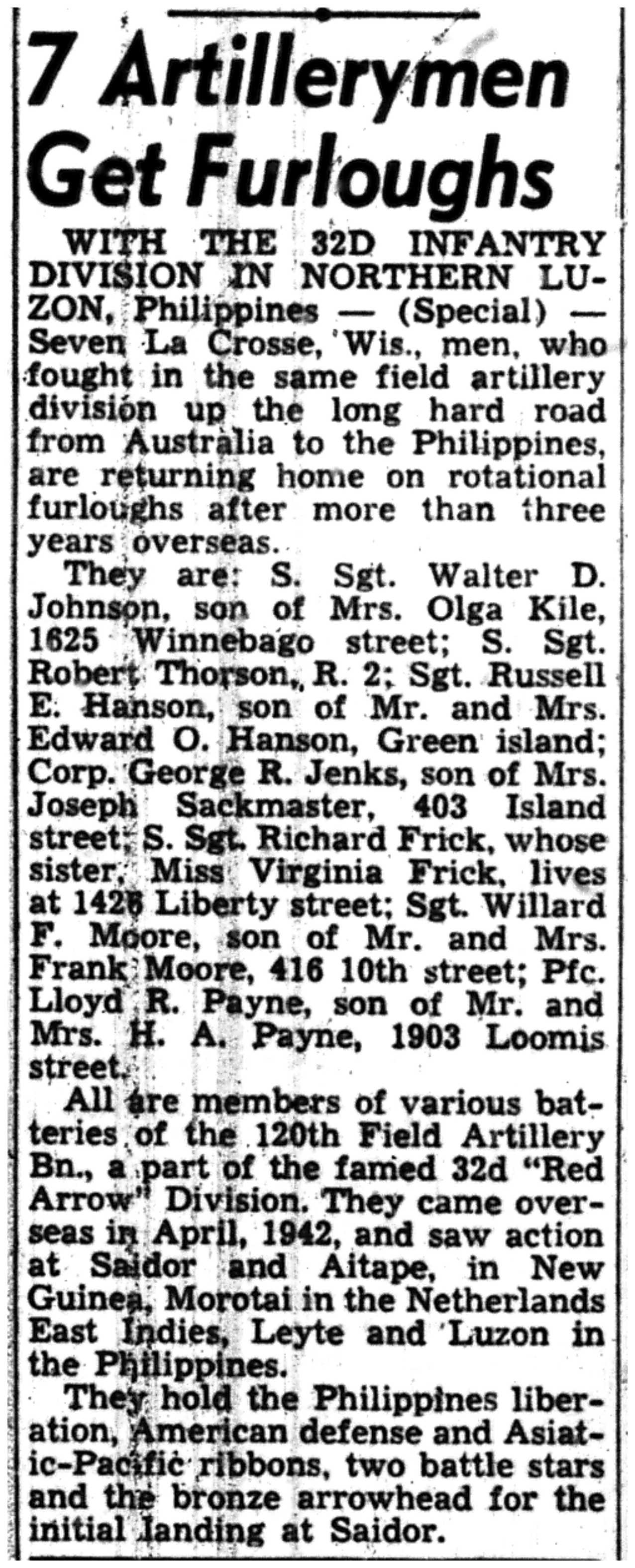 | 1945-6-24 | La Crosse Tribune p5 | |