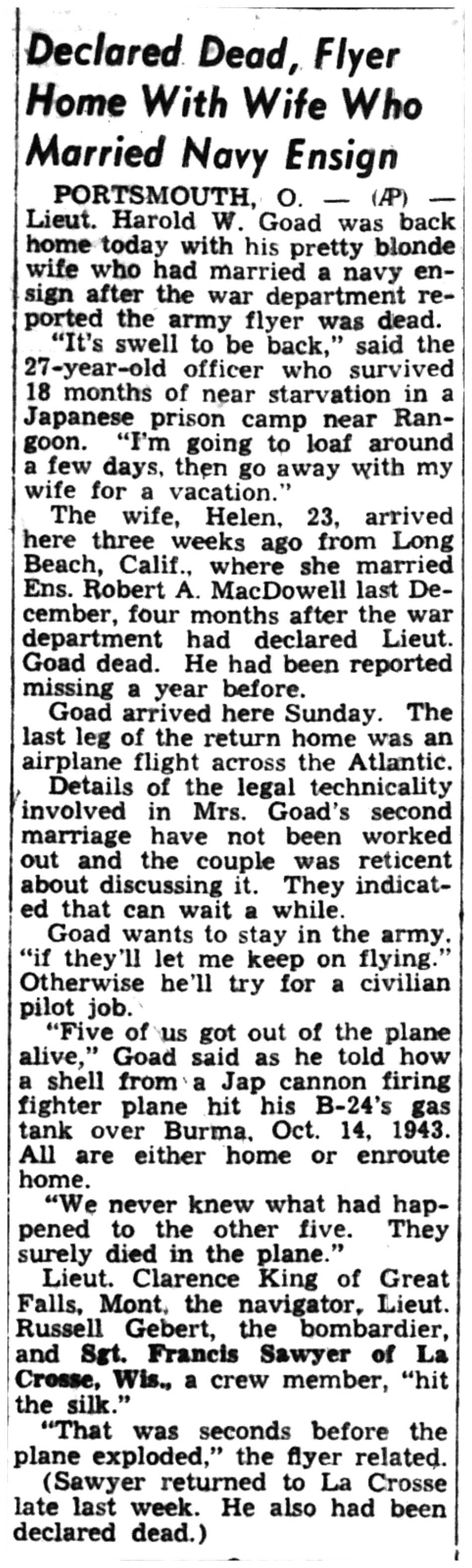 | 1945-6-29 | La Crosse Tribune p6 | |