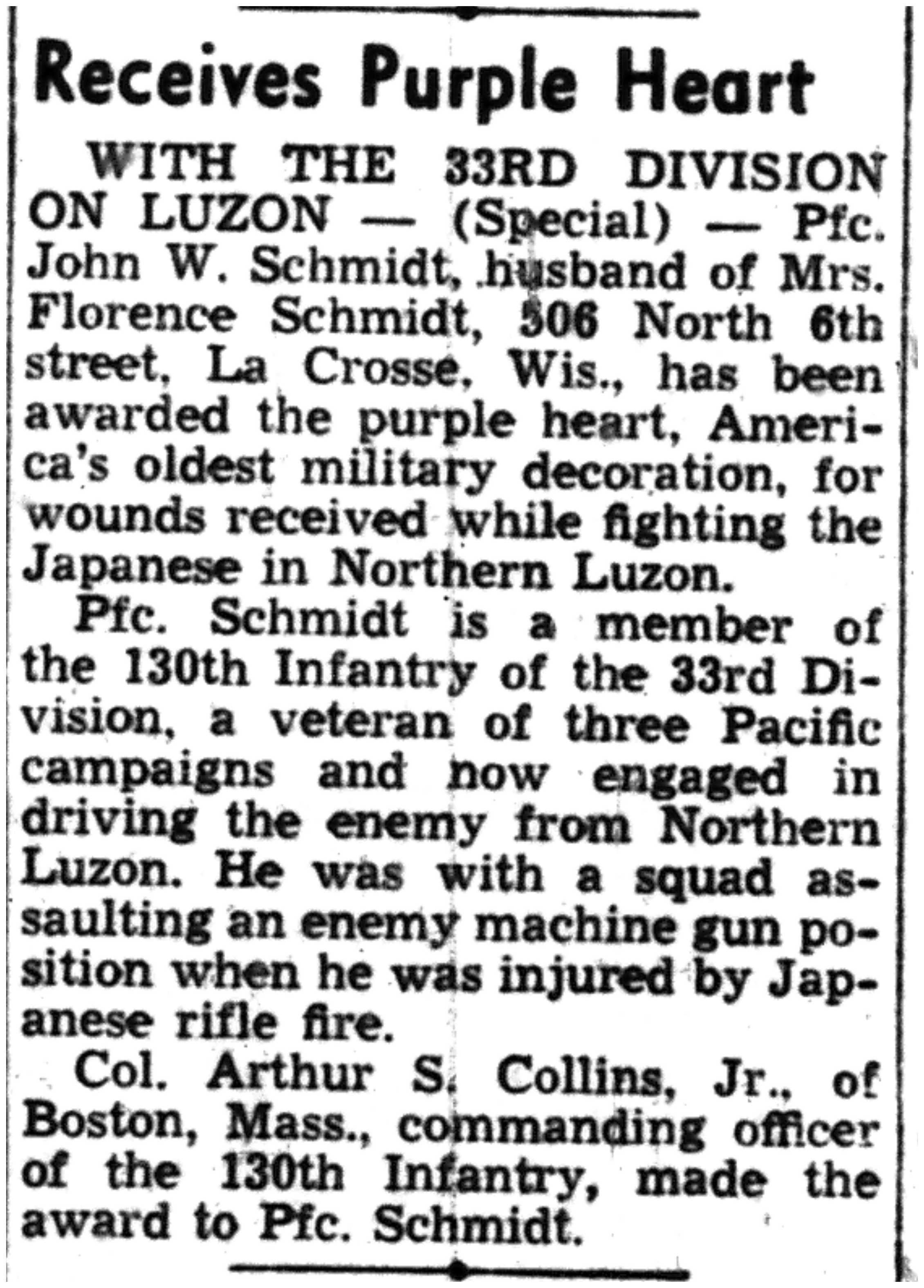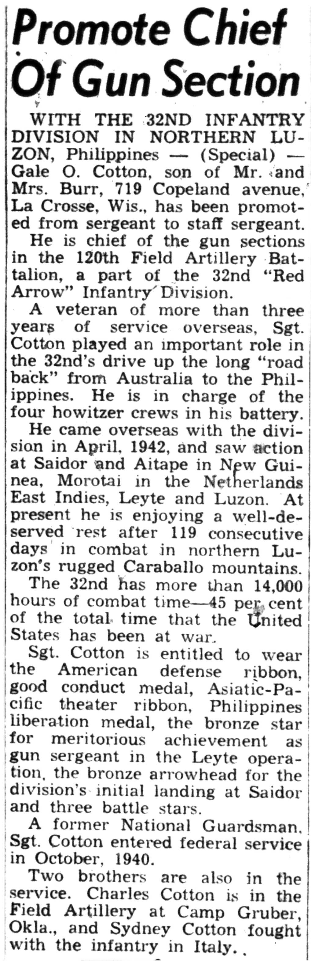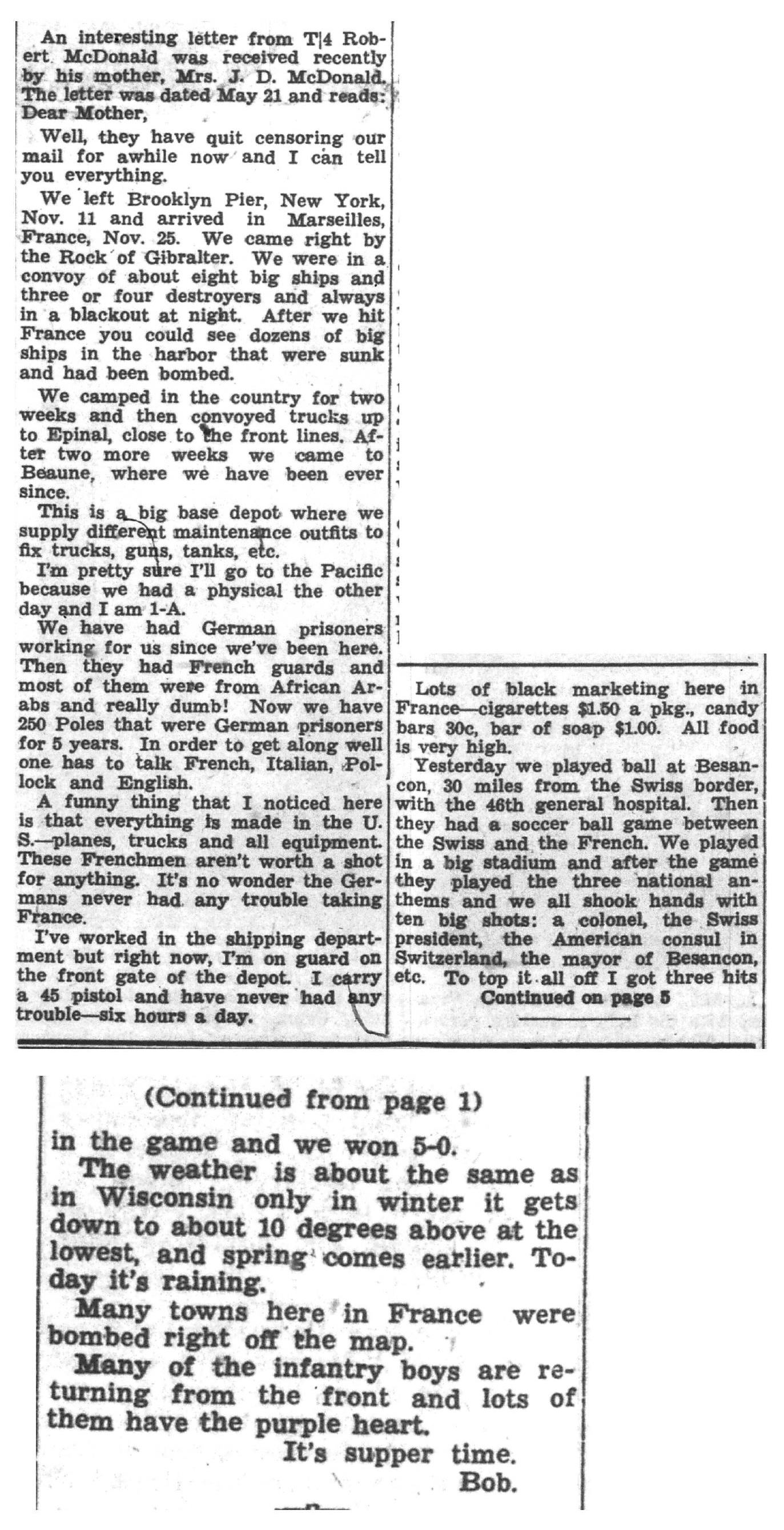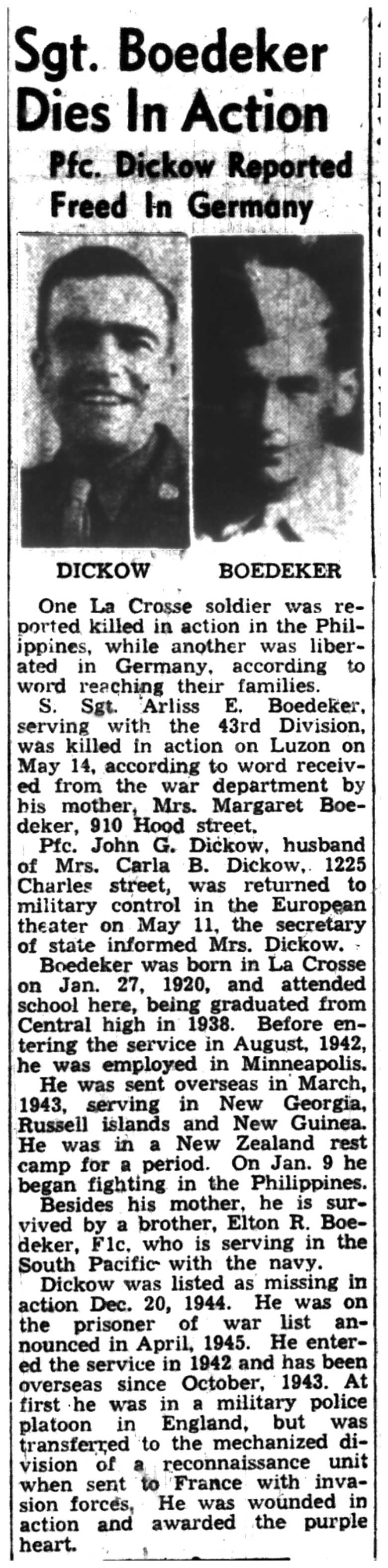 | 1945-6-5 | La Crosse Tribune p10 | |