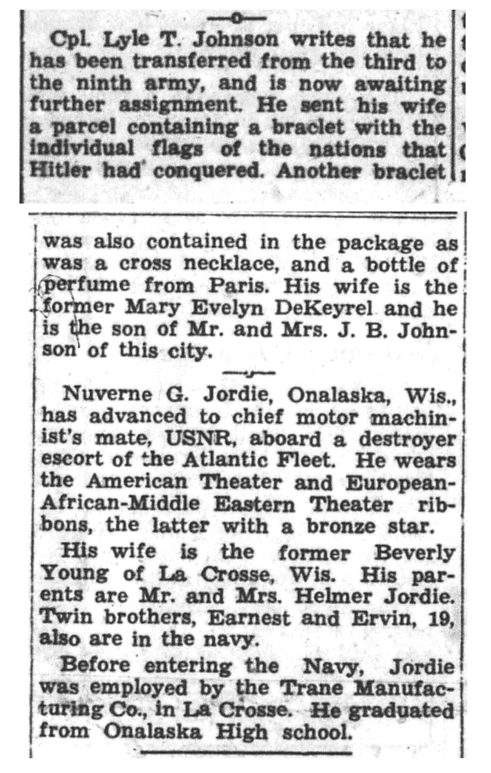 | 1945-6-17 | La Crosse Tribune p10 | |
