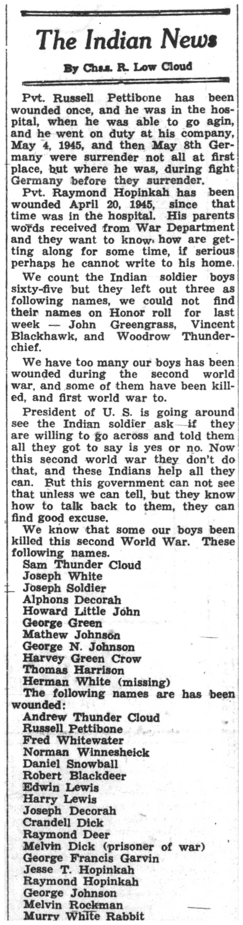 | 1945-6-28 | Non-Pareil Journal p5 | |