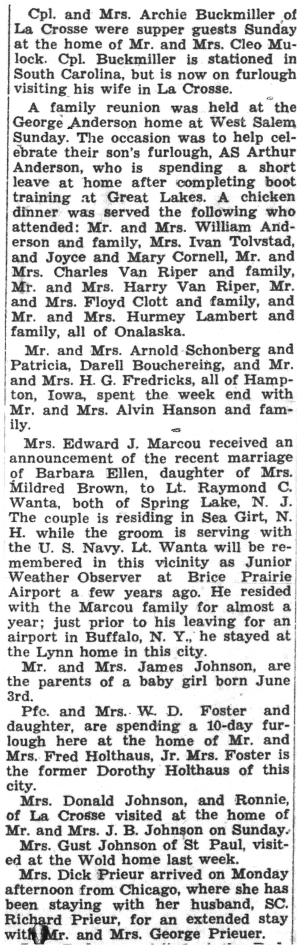 | 1945-6-28 | La Crosse County Record p8 | |