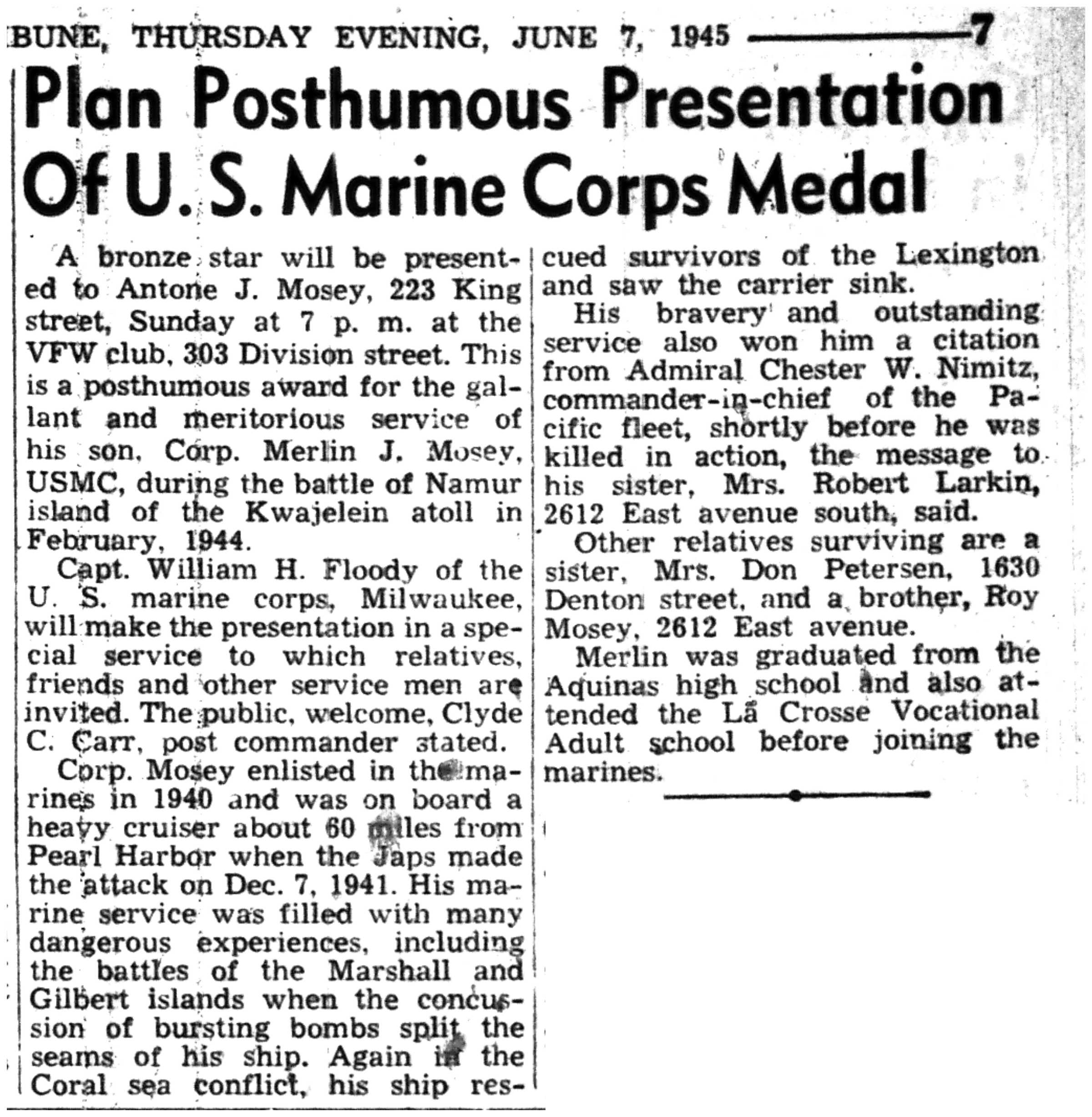 | 1945-6-17 | La Crosse Tribune p7 | |