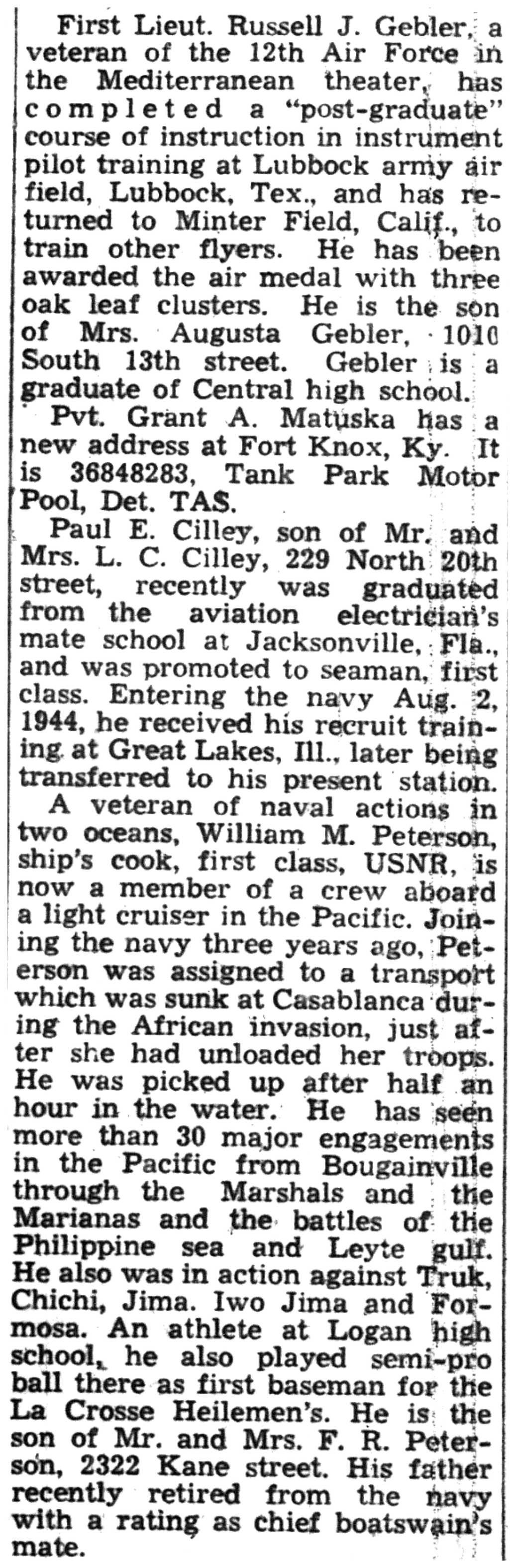 | 1945-6-17 | La Crosse Tribune p12 |