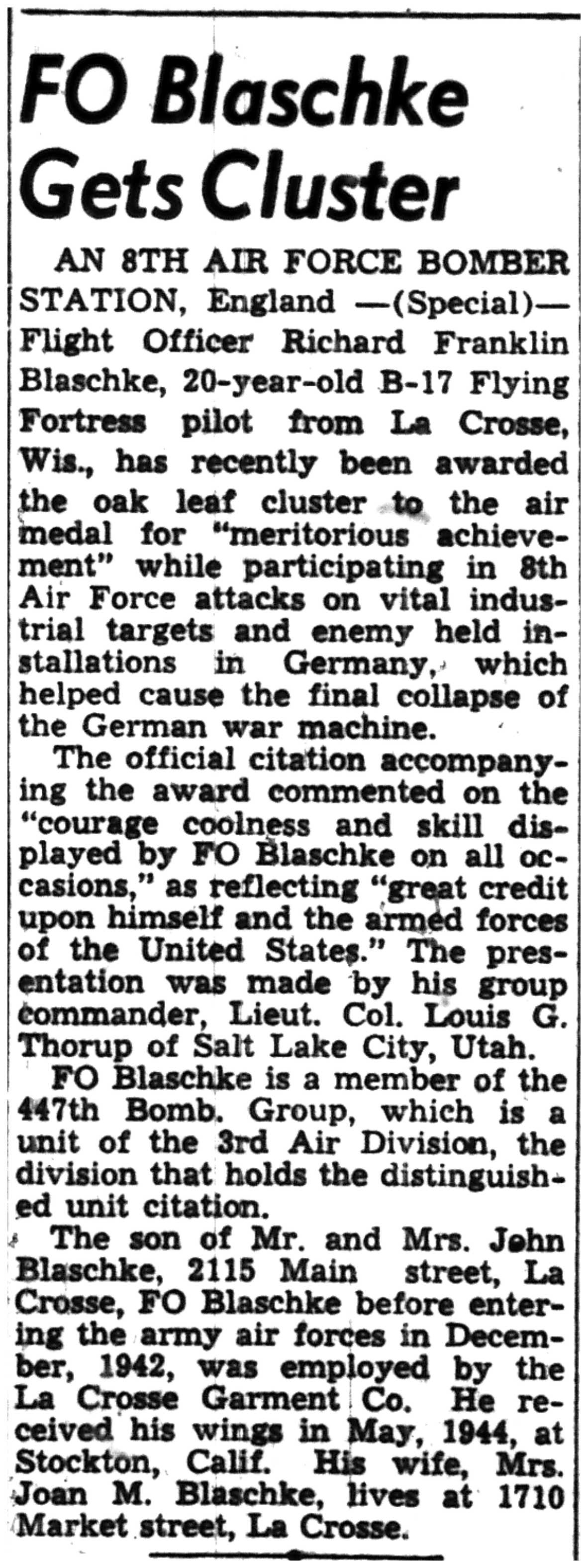 | 1945-6-12 | La Crosse Tribune p8 | |