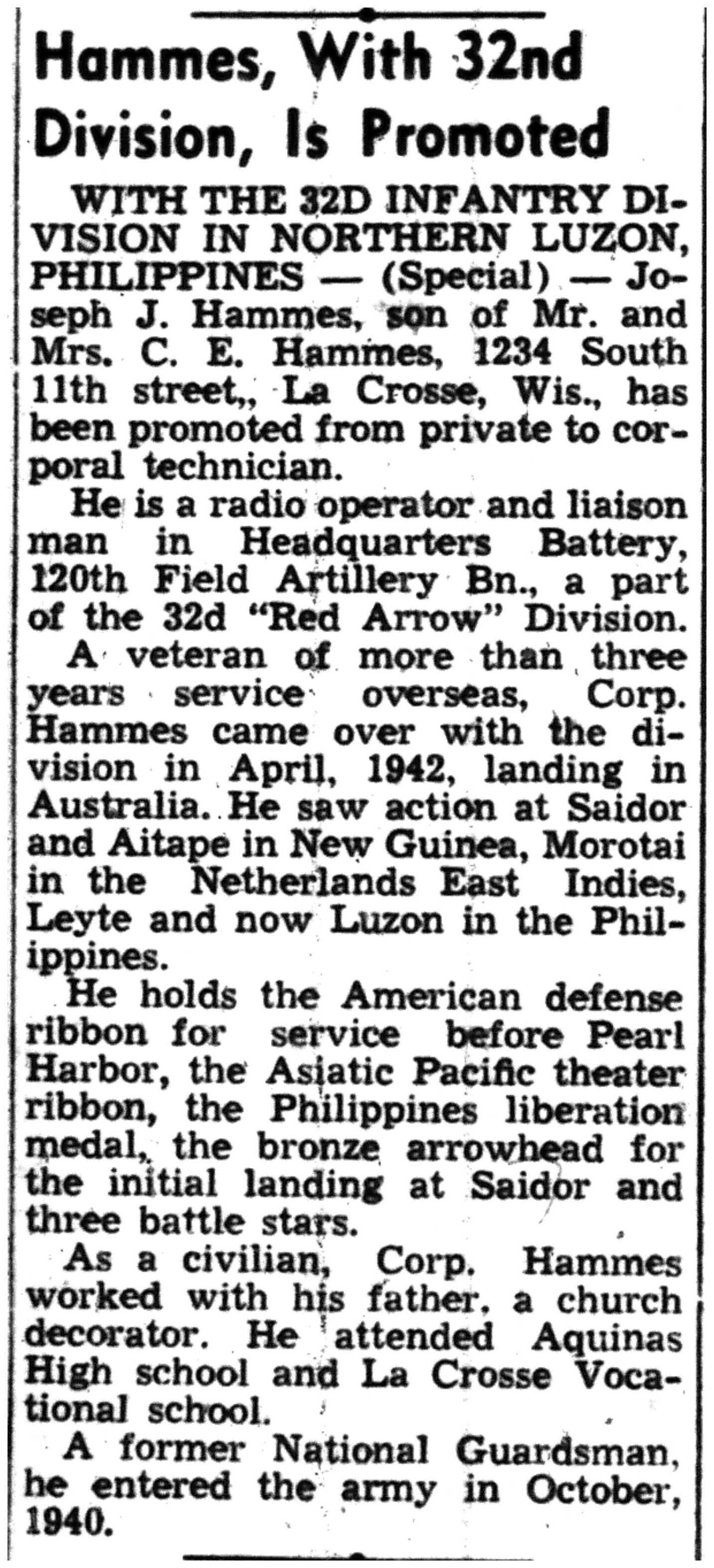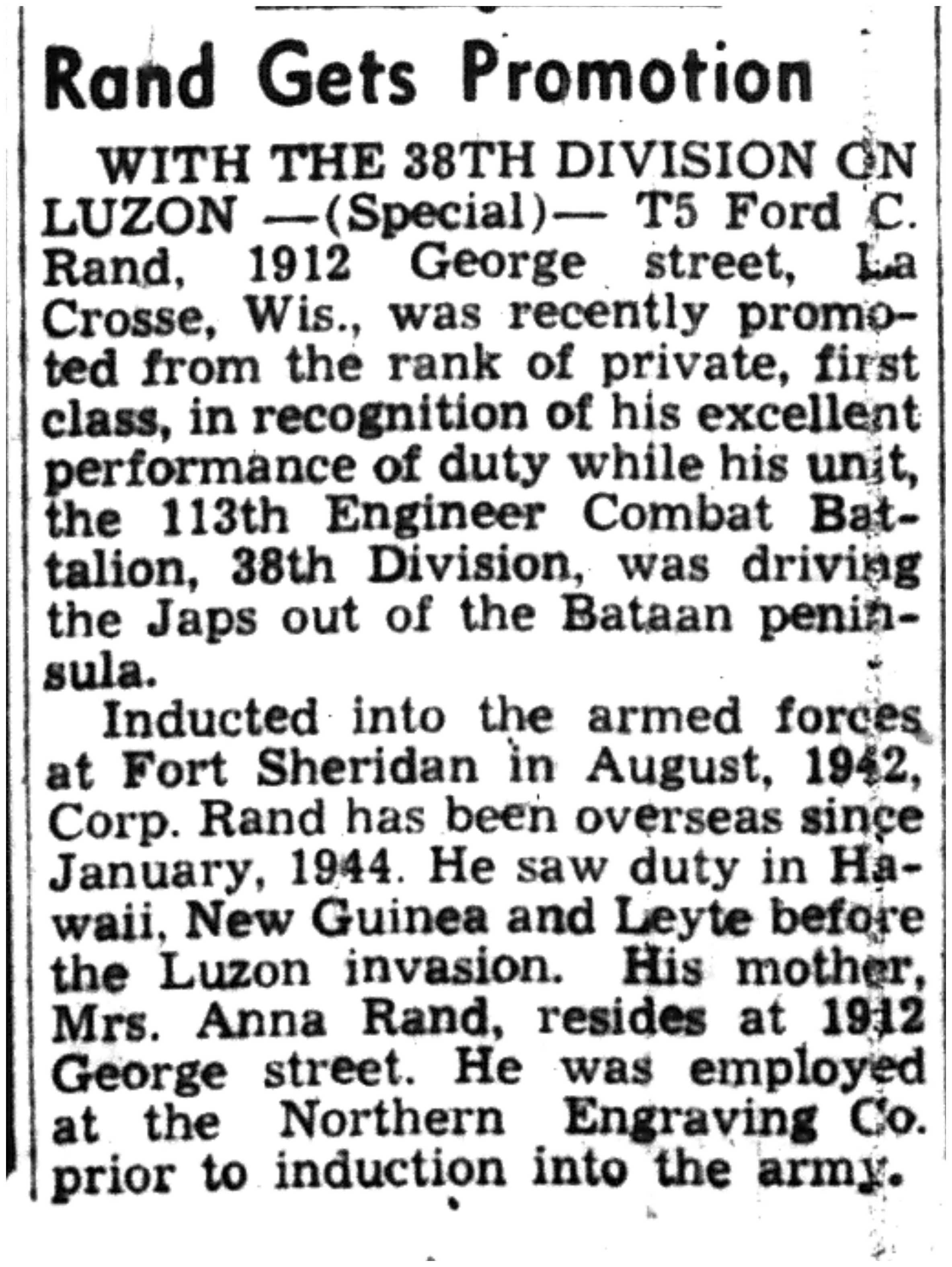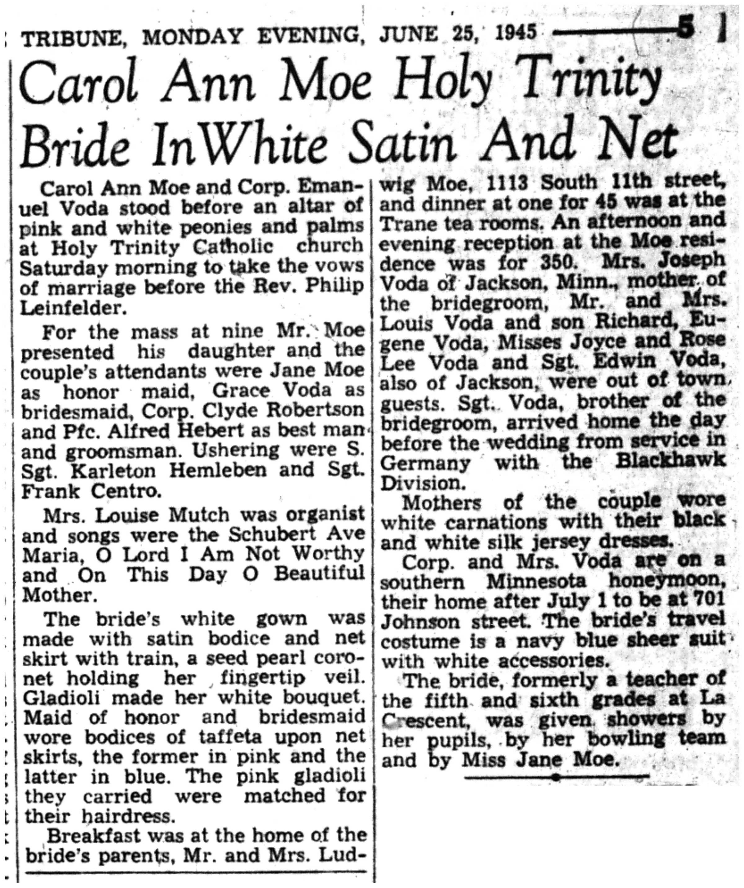| 1945-6-25 | La Crosse Tribune p5 | |