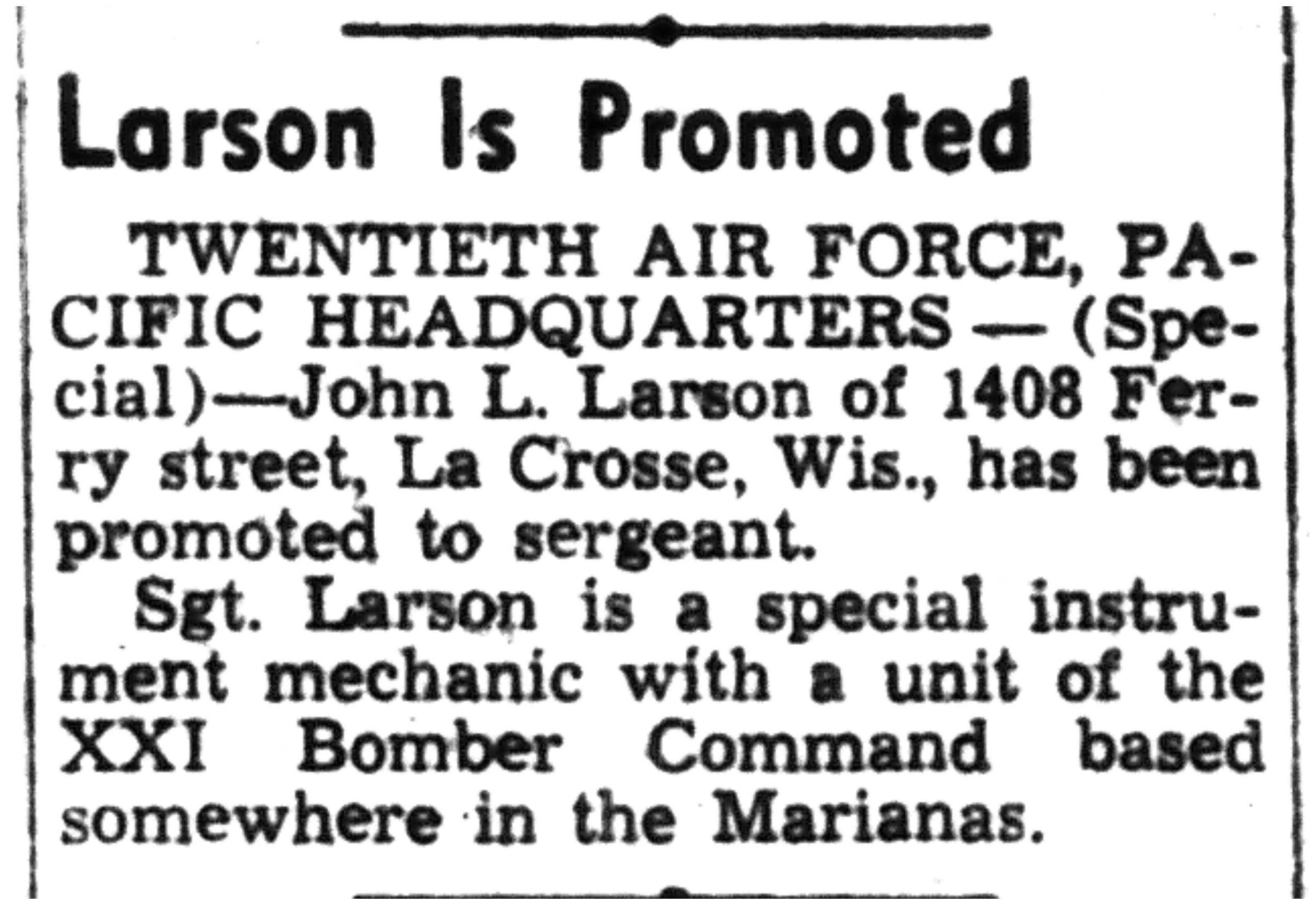 | 1945-6-22 | La Crosse Tribune p8 | |
