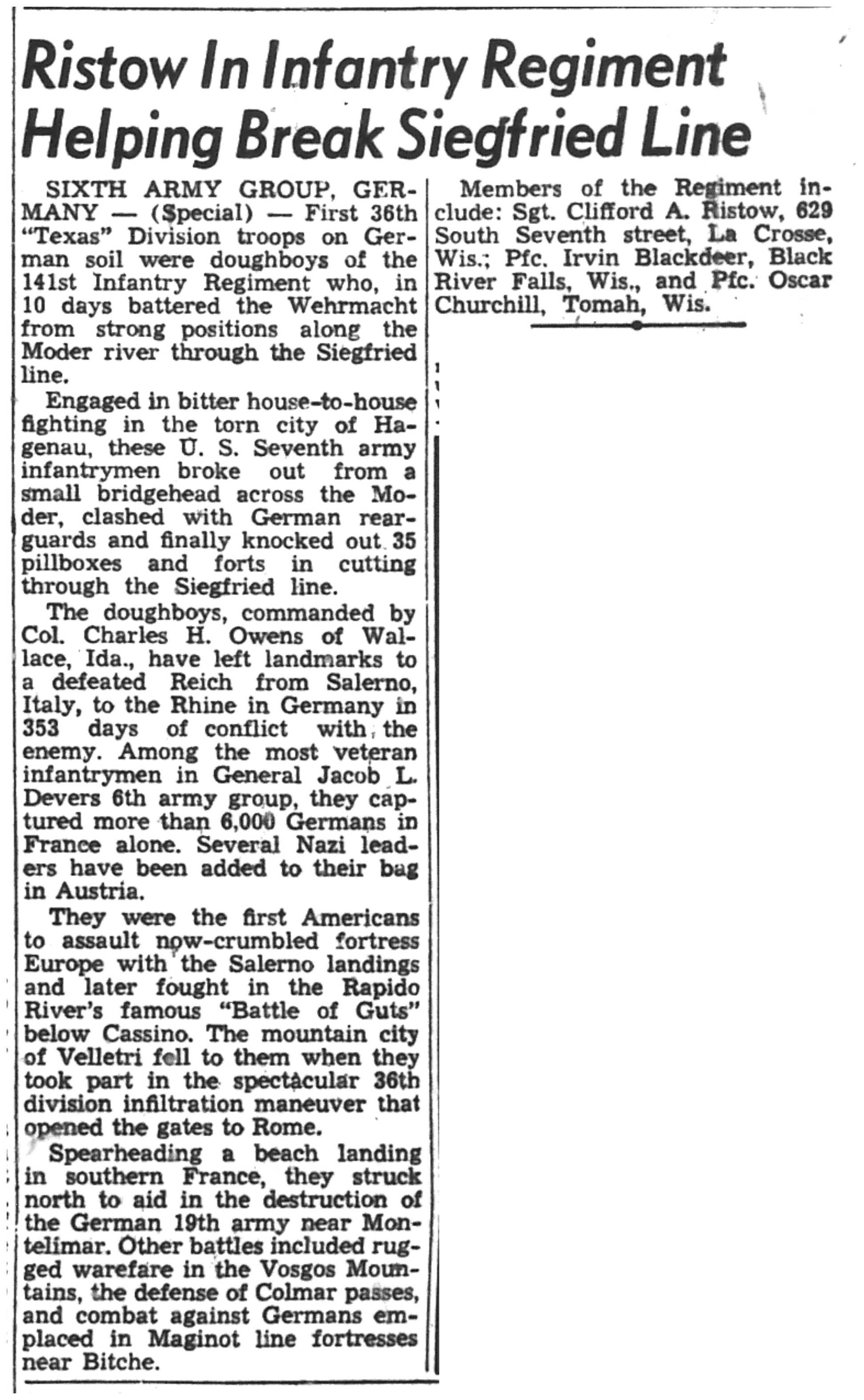 | 1945-6-6 | La Crosse Tribune p4 | |