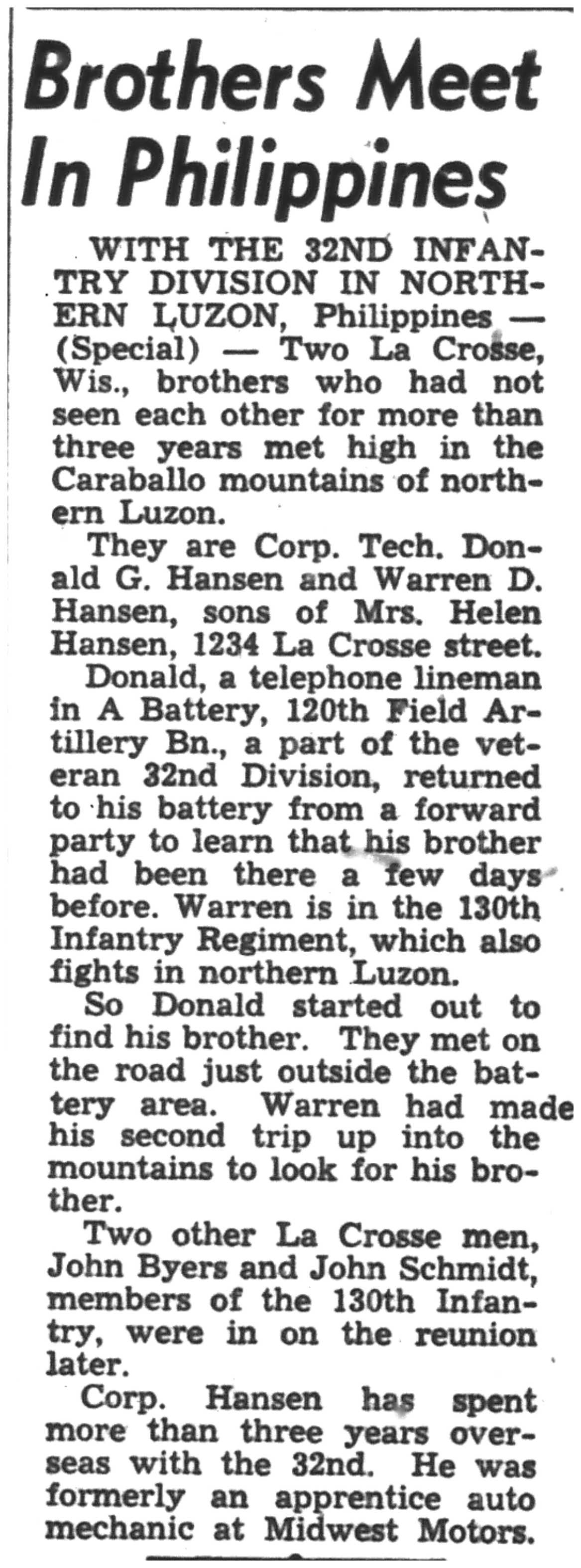 | 1945-6-25 | La Crosse Tribune p2 | |