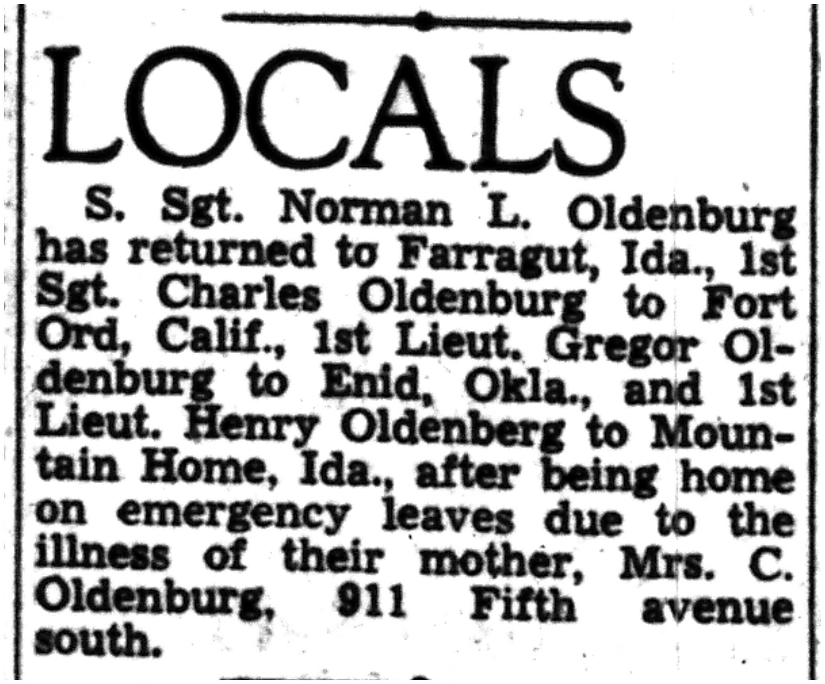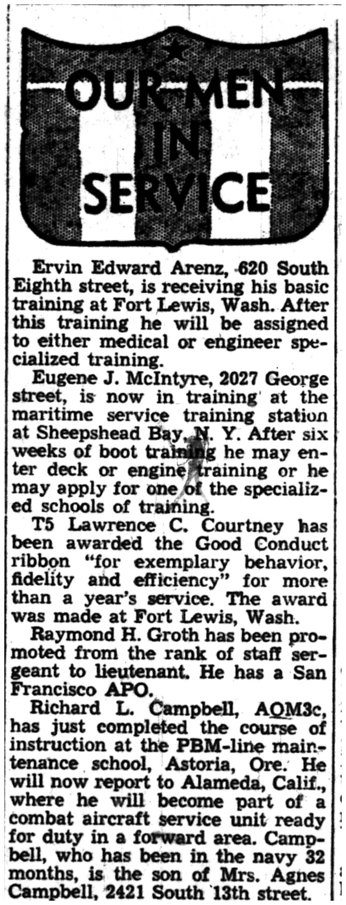 | 1945-6-21 | Non-Pareil Journal p5 | |