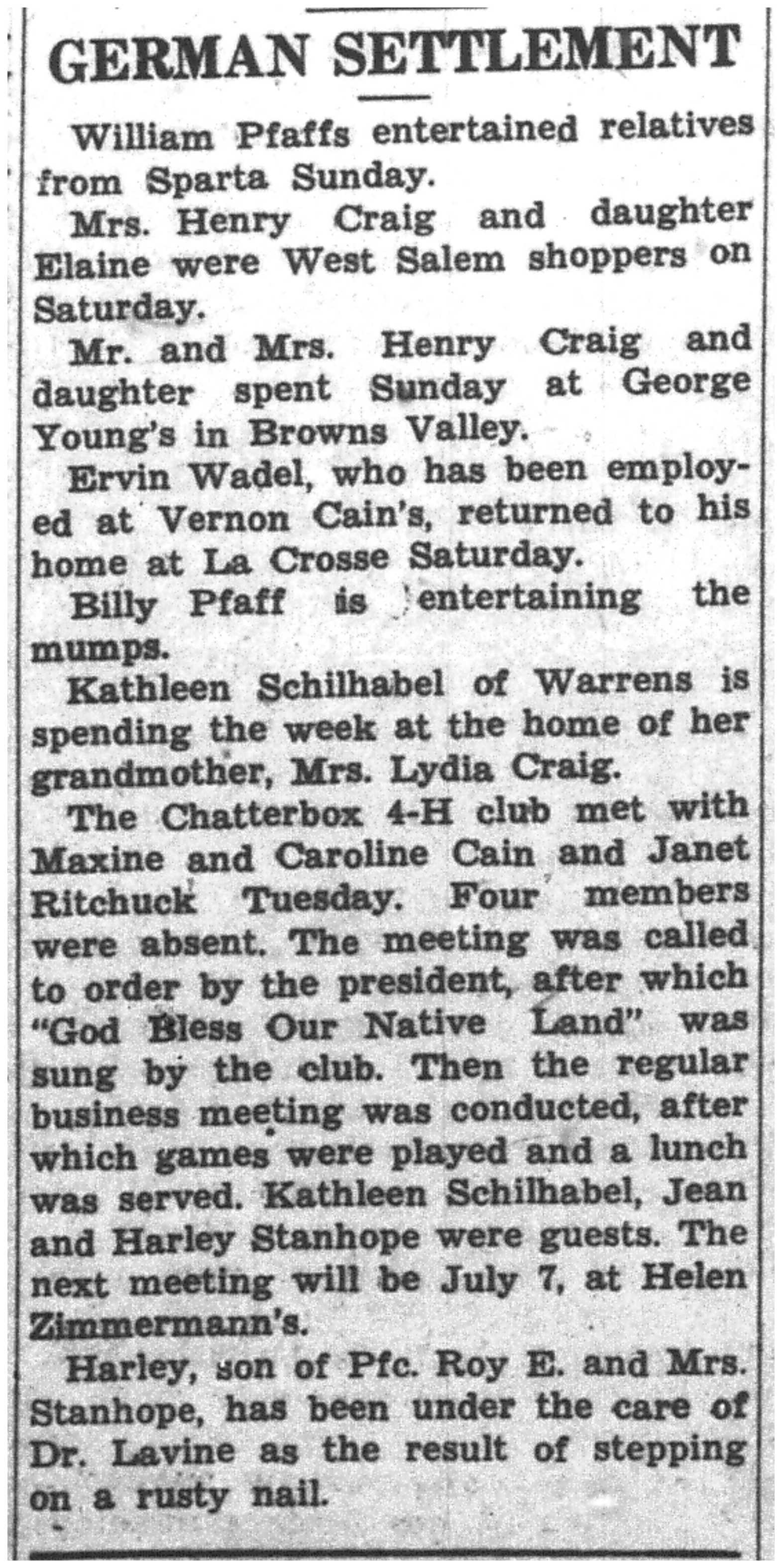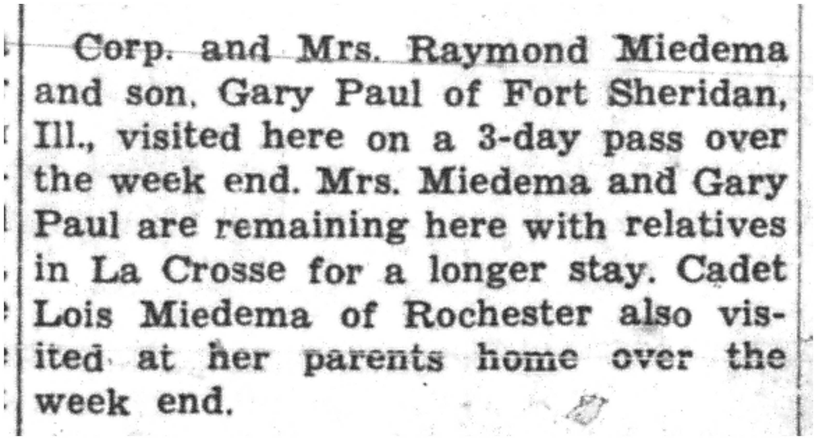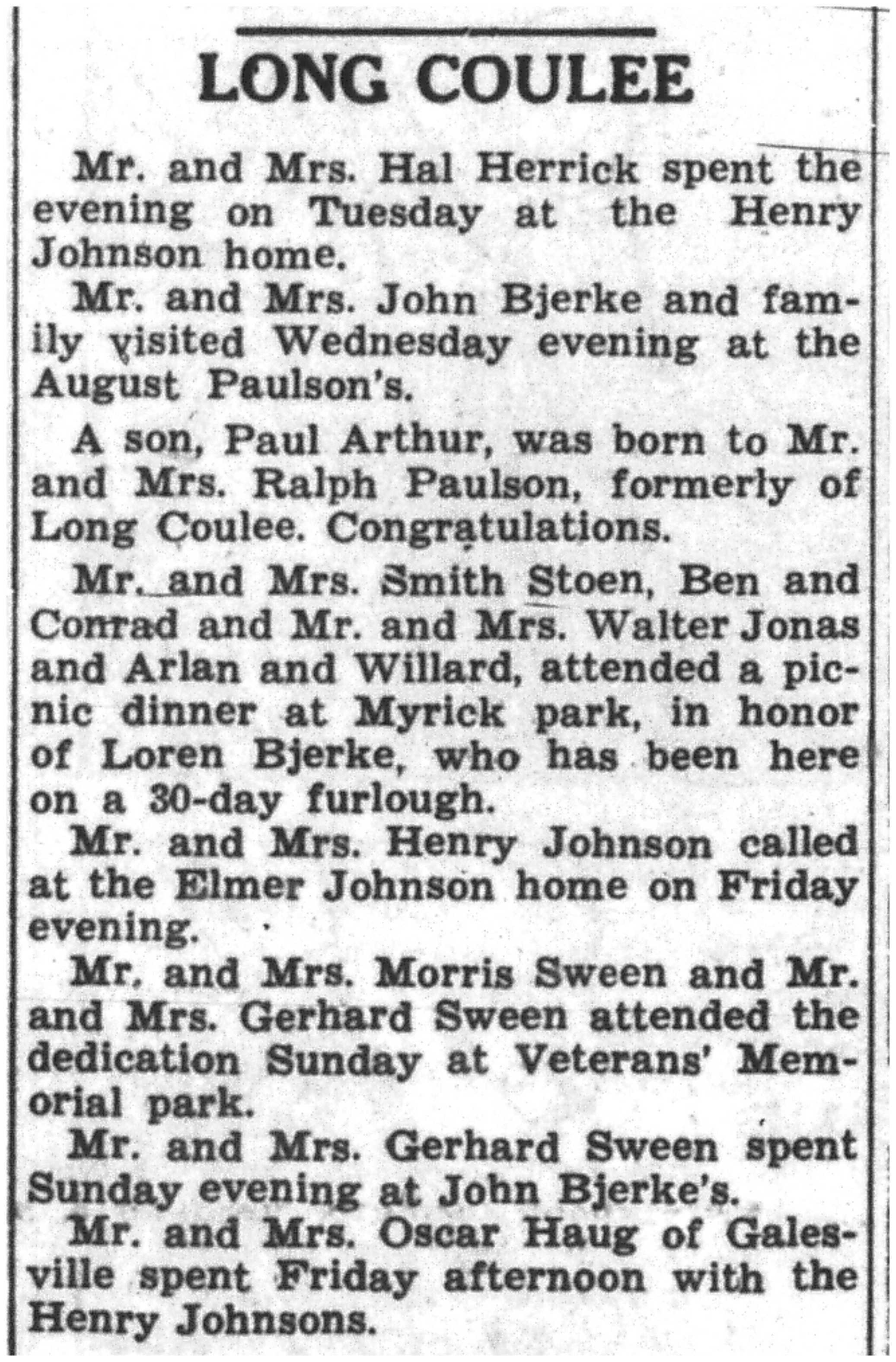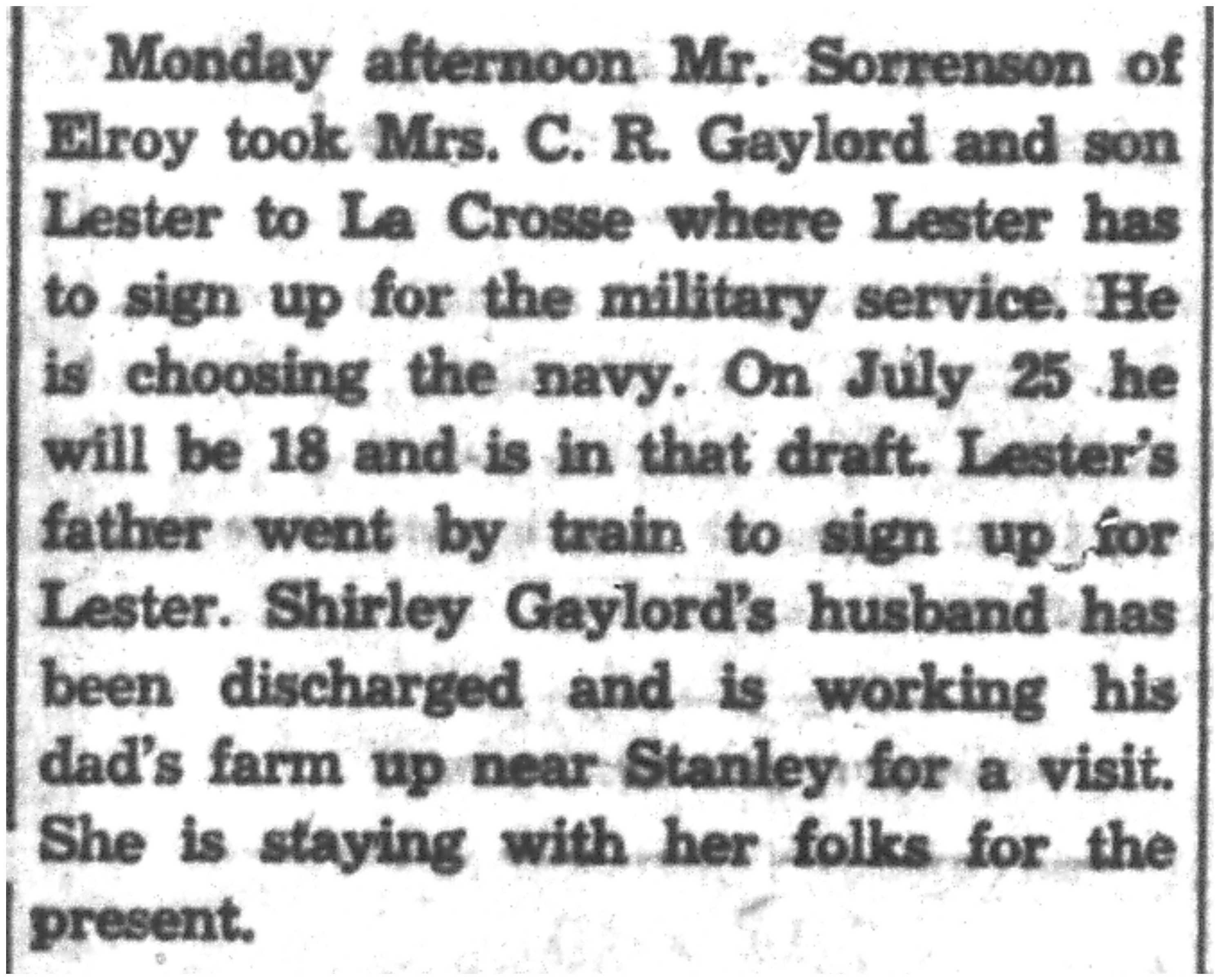 | 1945-6-28 | La Crosse County Record p5 | |