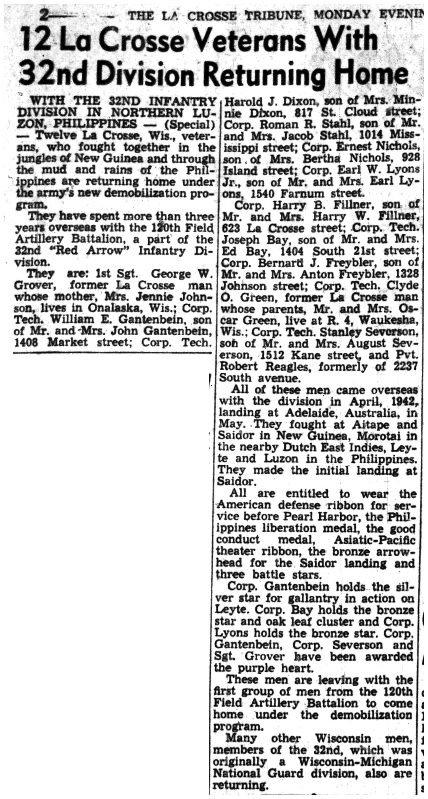 | 1945-6-25 | La Crosse Tribune p2 |