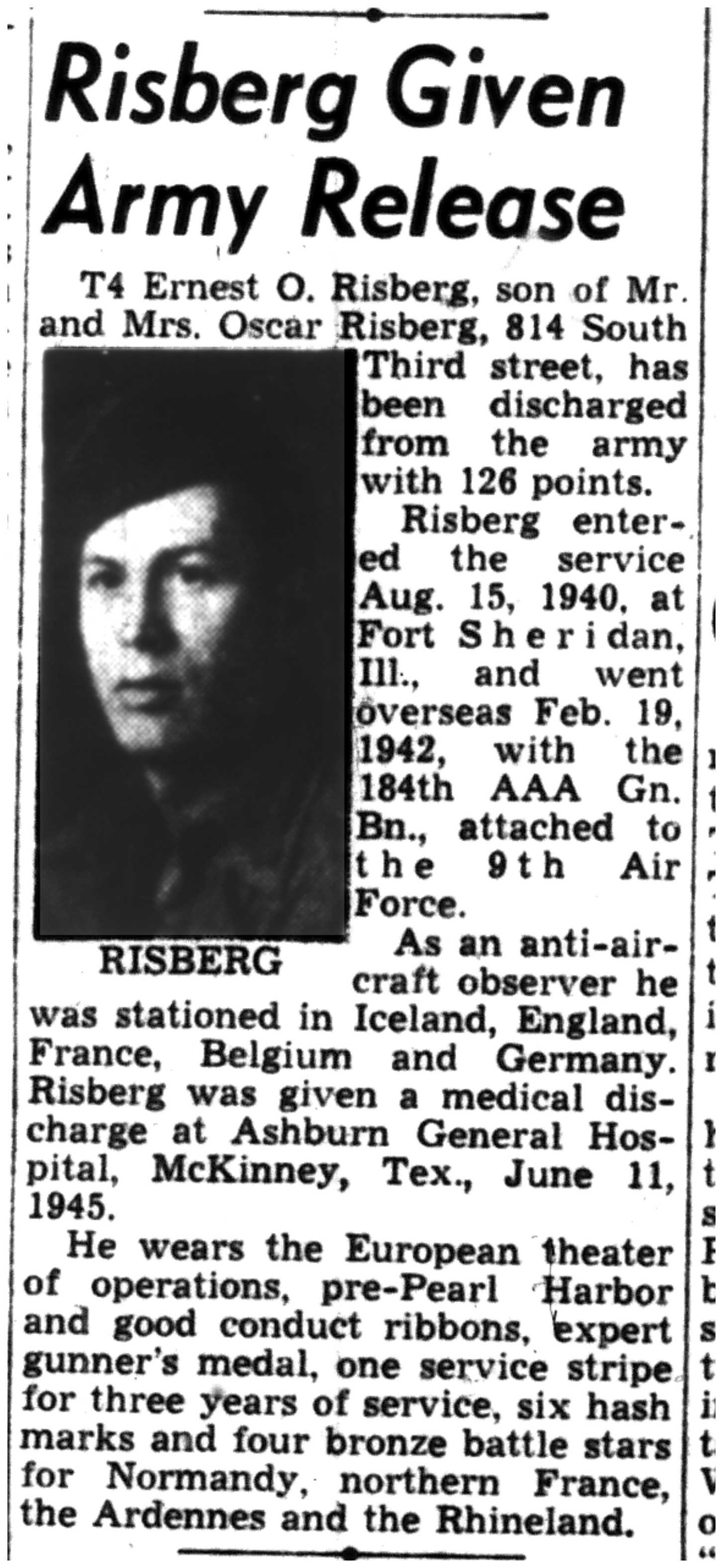 | 1945-6-4 | La Crosse Tribune p5 | |