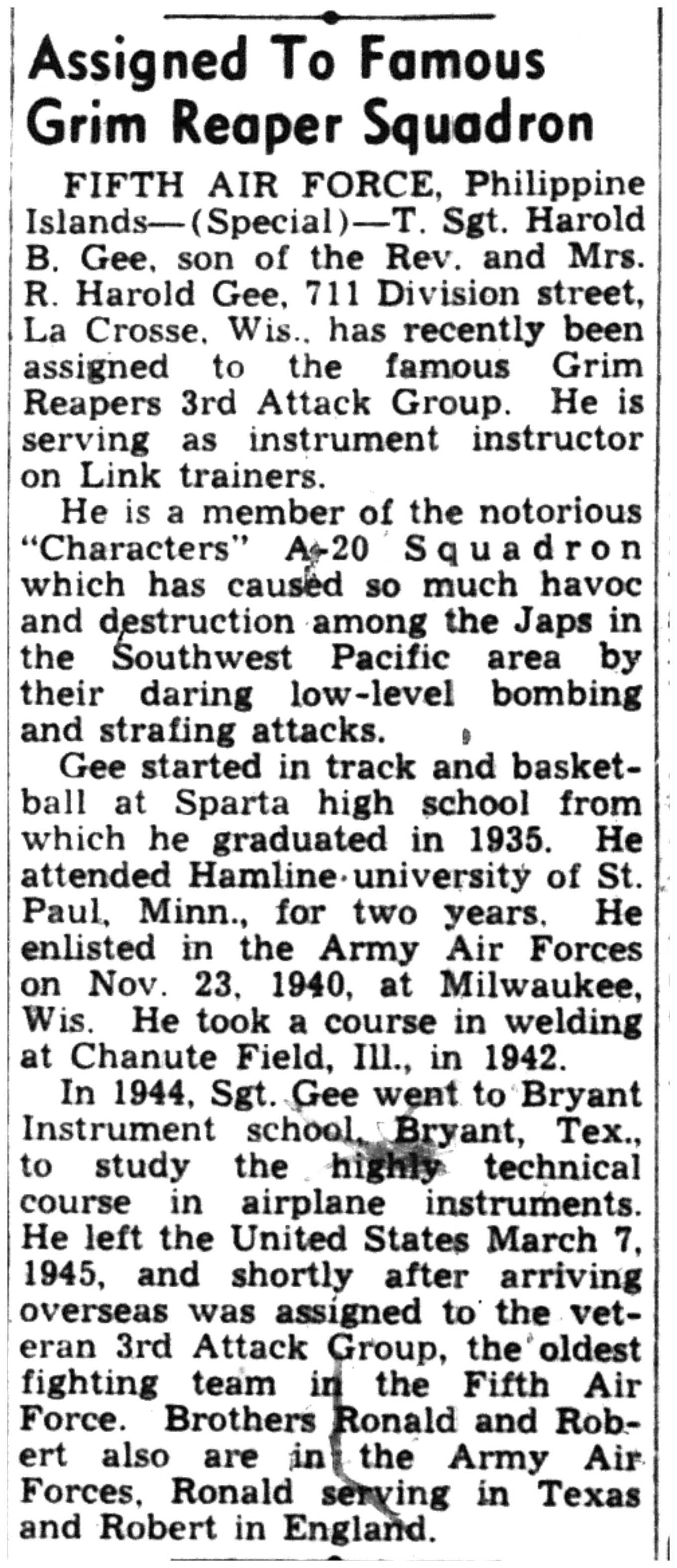 | 1945-6-3 | La Crosse Tribune p12 | |