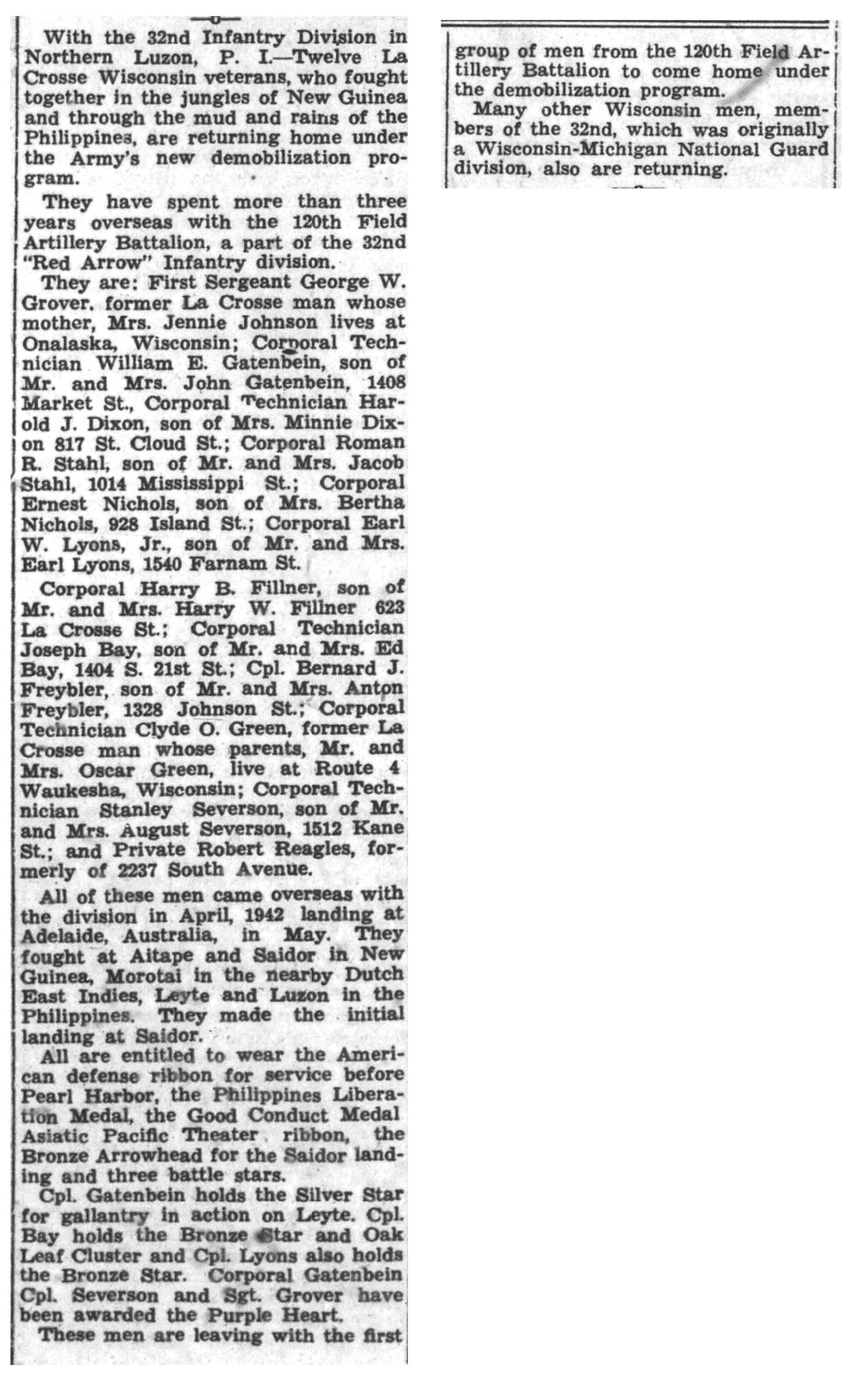 | 1945-6-24 | La Crosse Tribune p4 | |