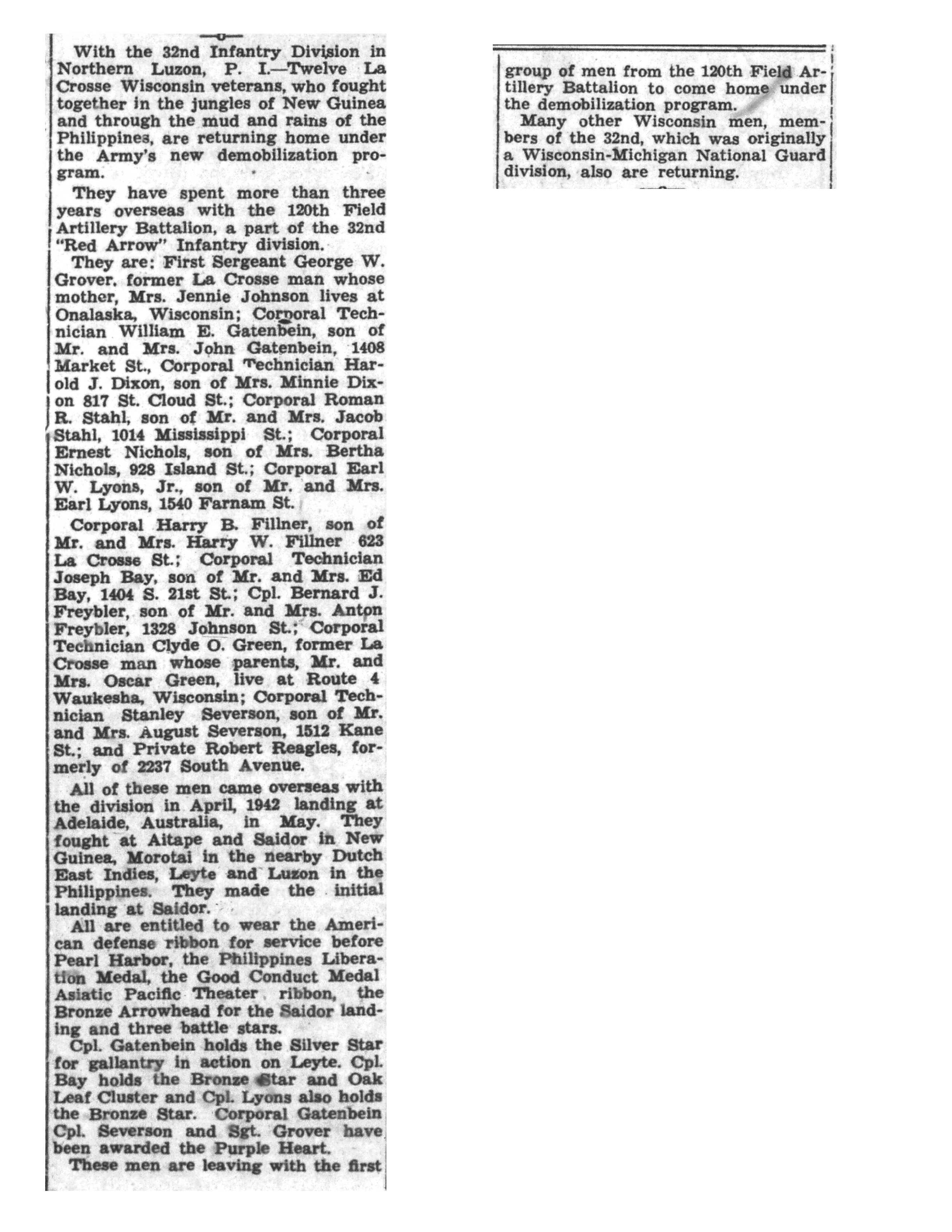 | 1945-6-24 | La Crosse Tribune p3 |