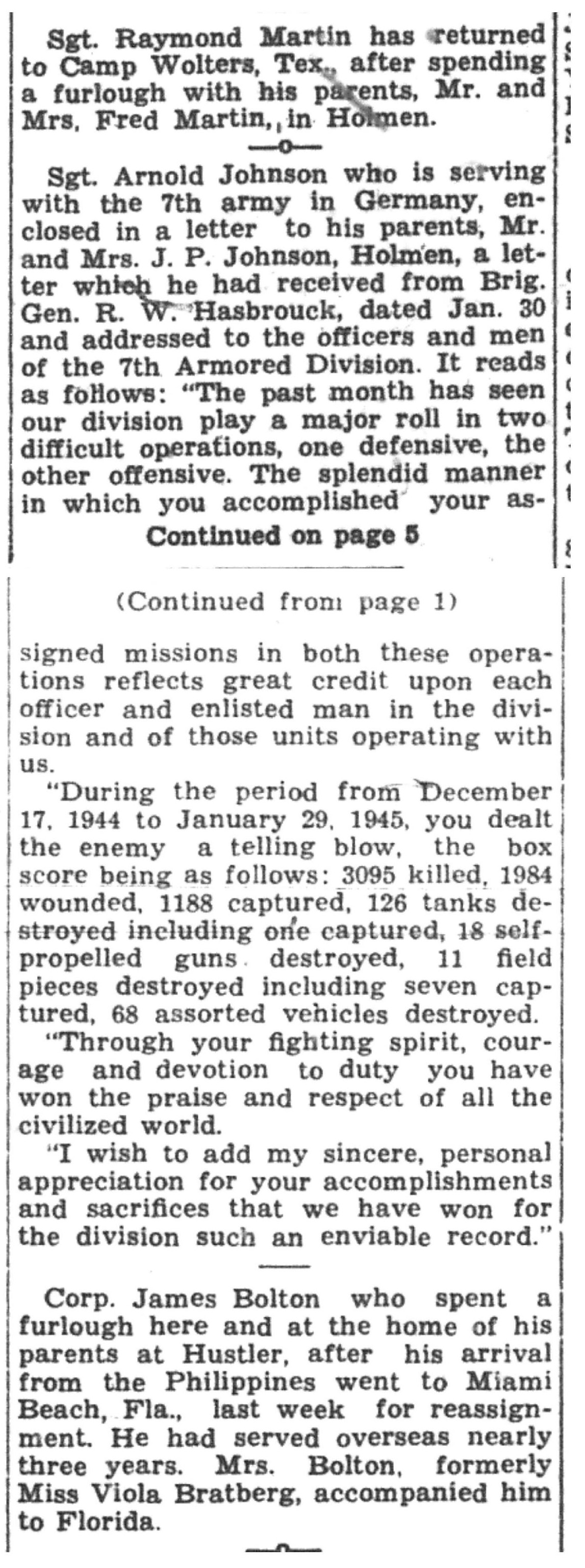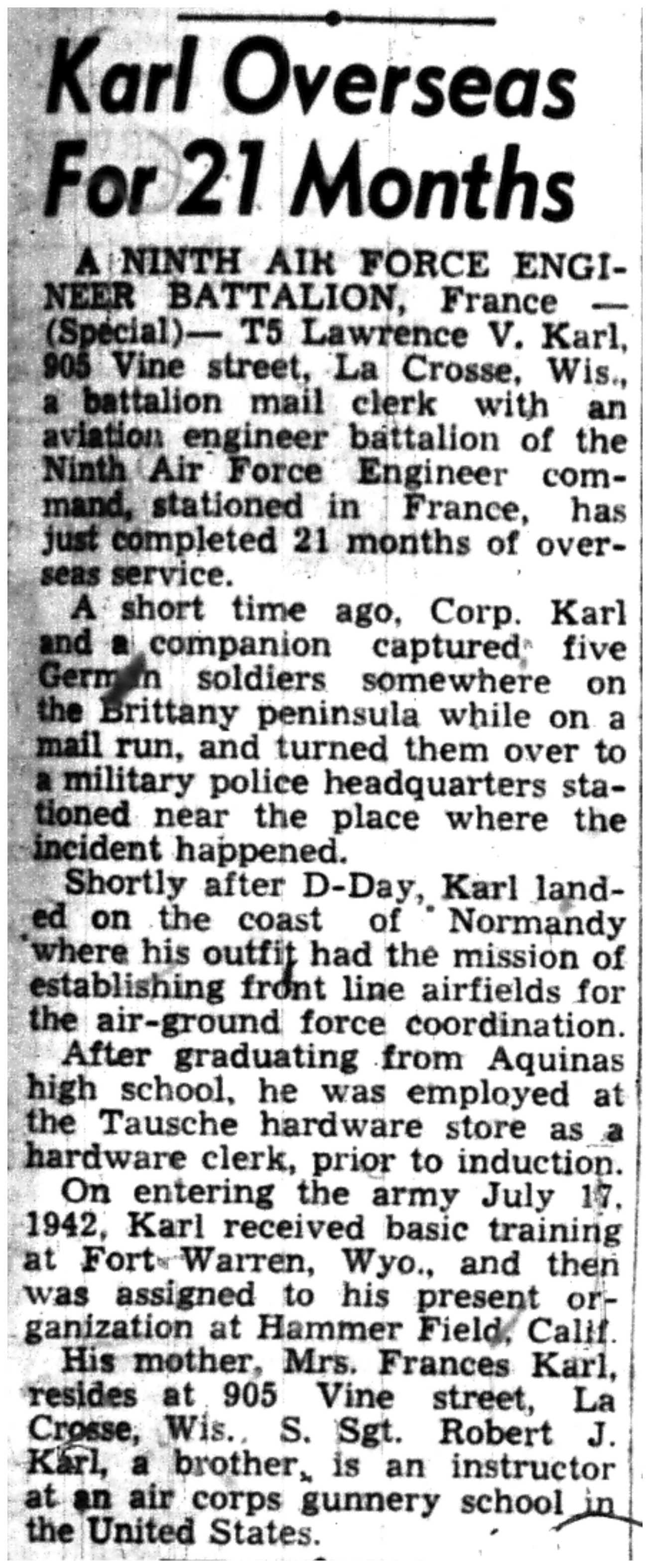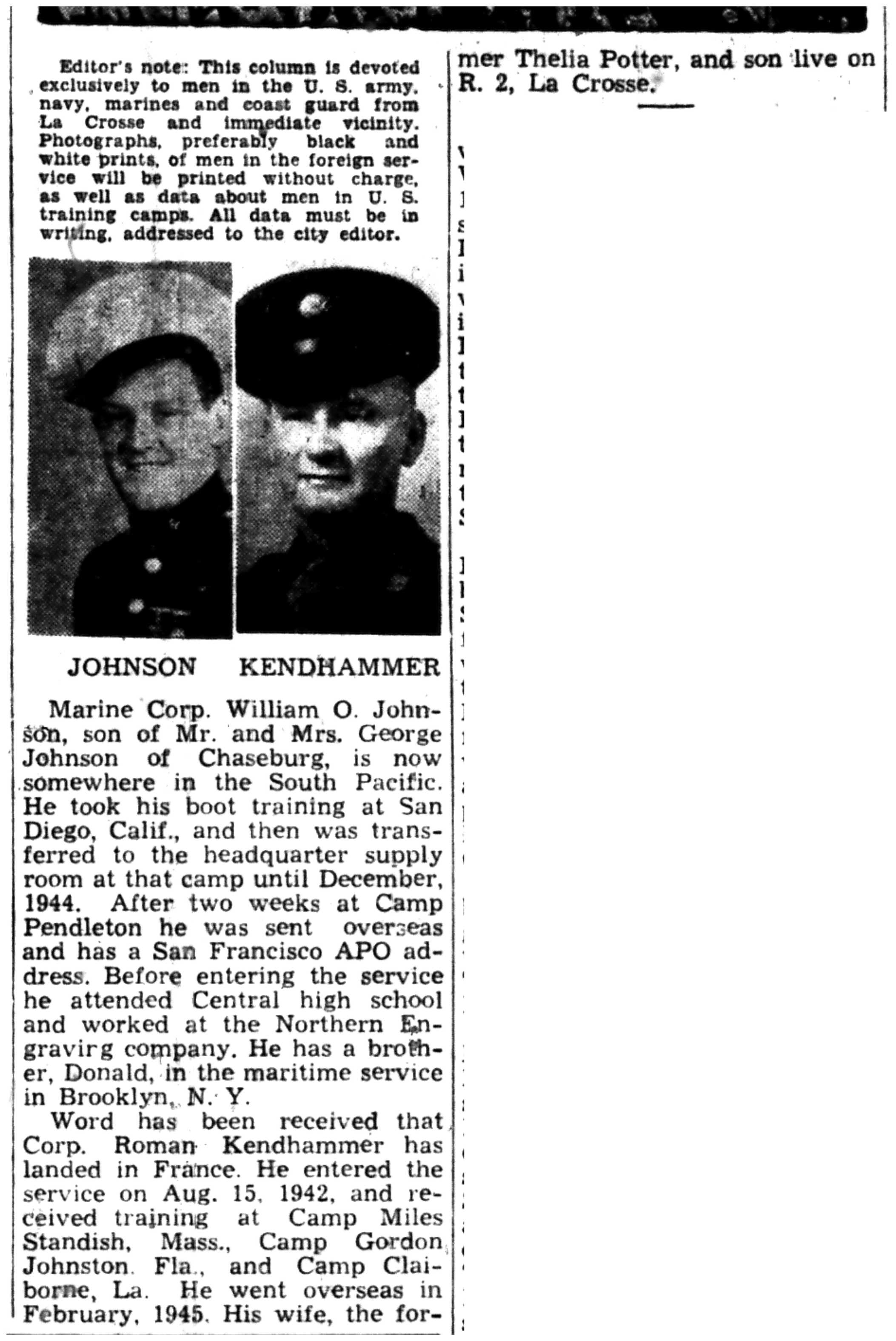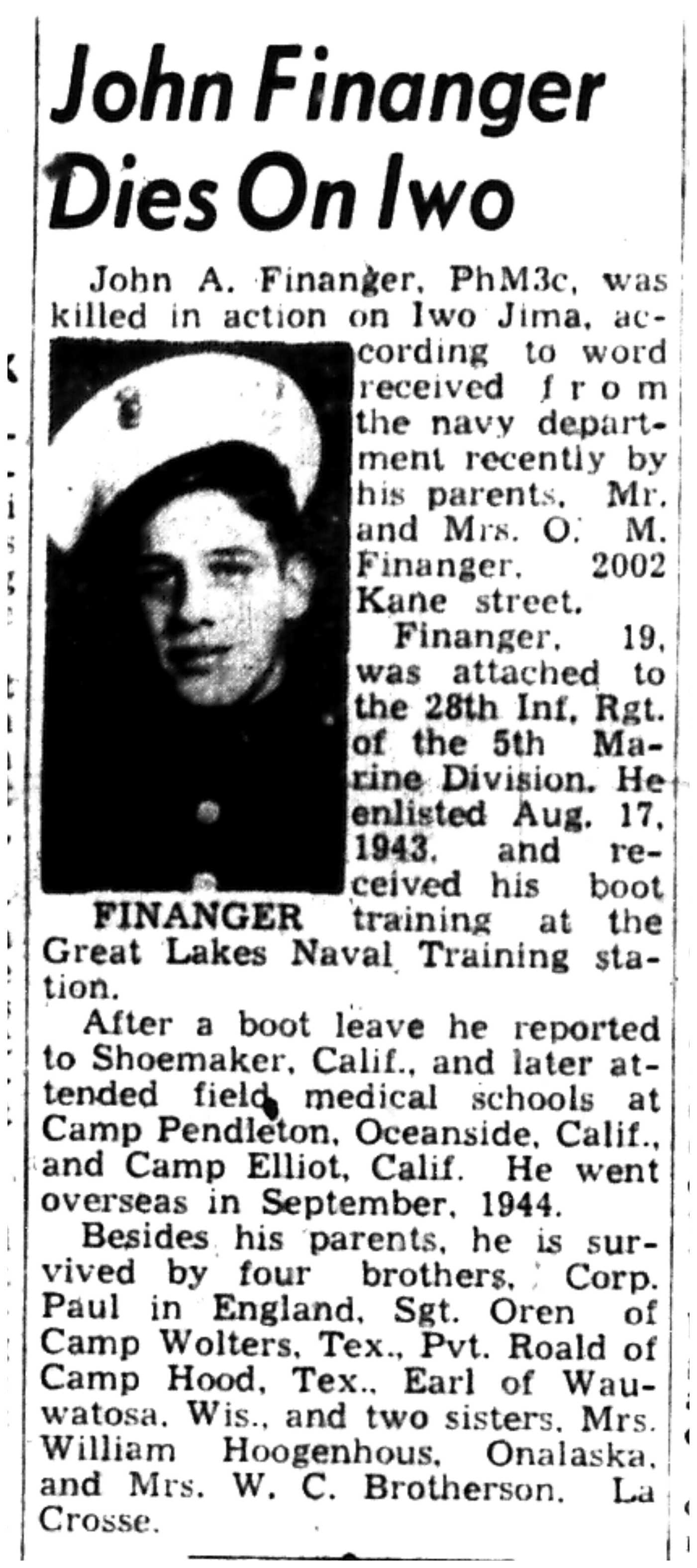 | 1945-3-7 | La Crosse Tribune p5 | |
