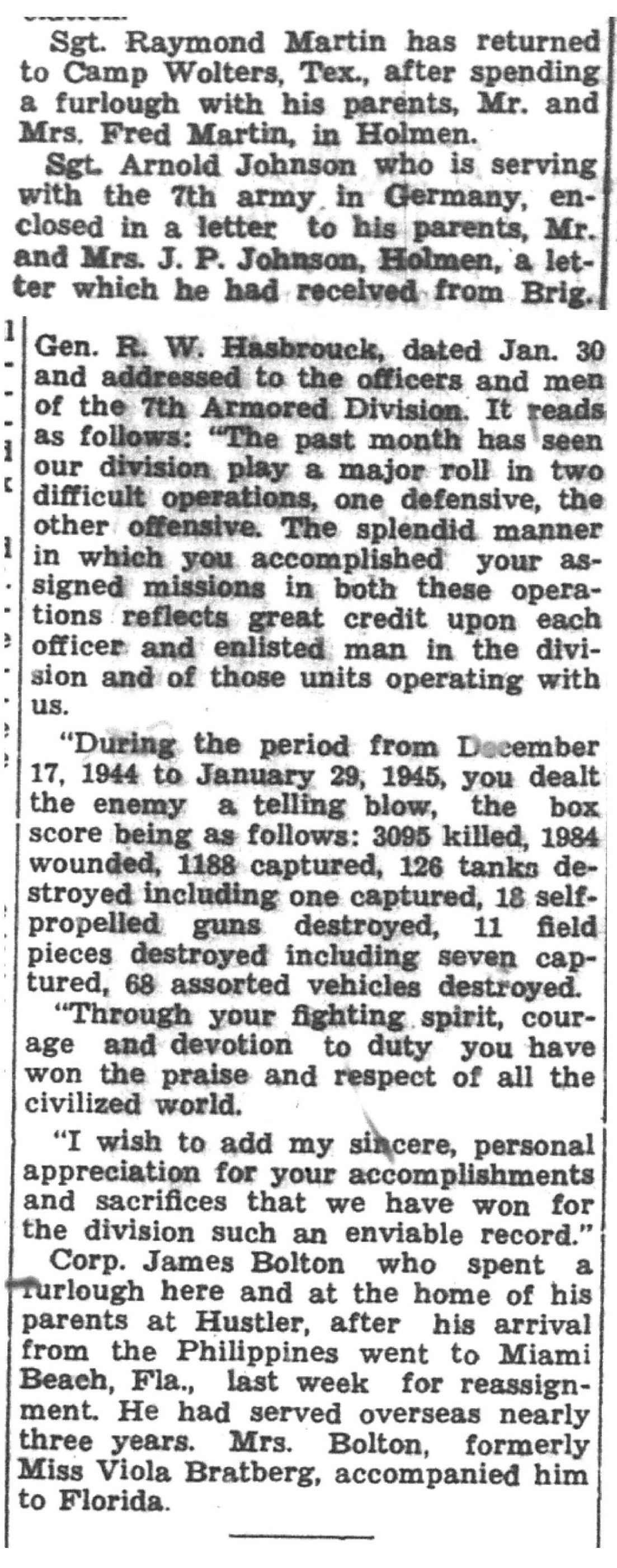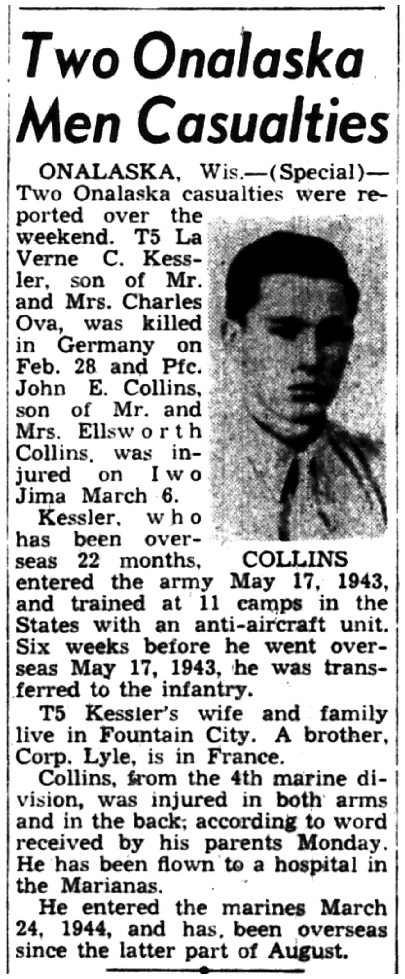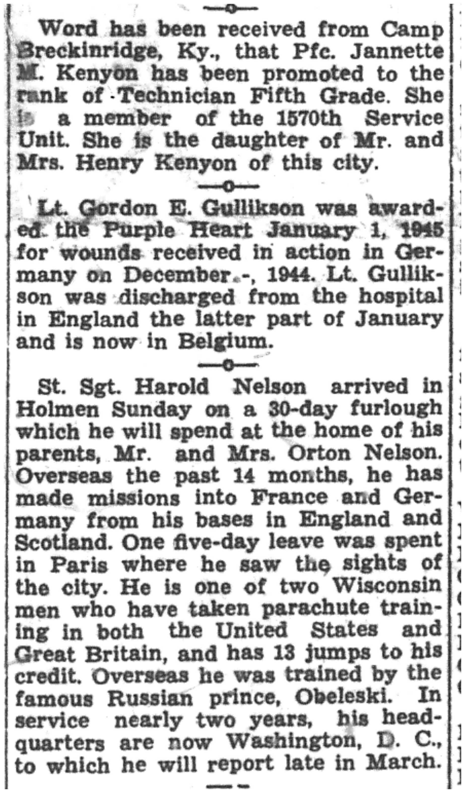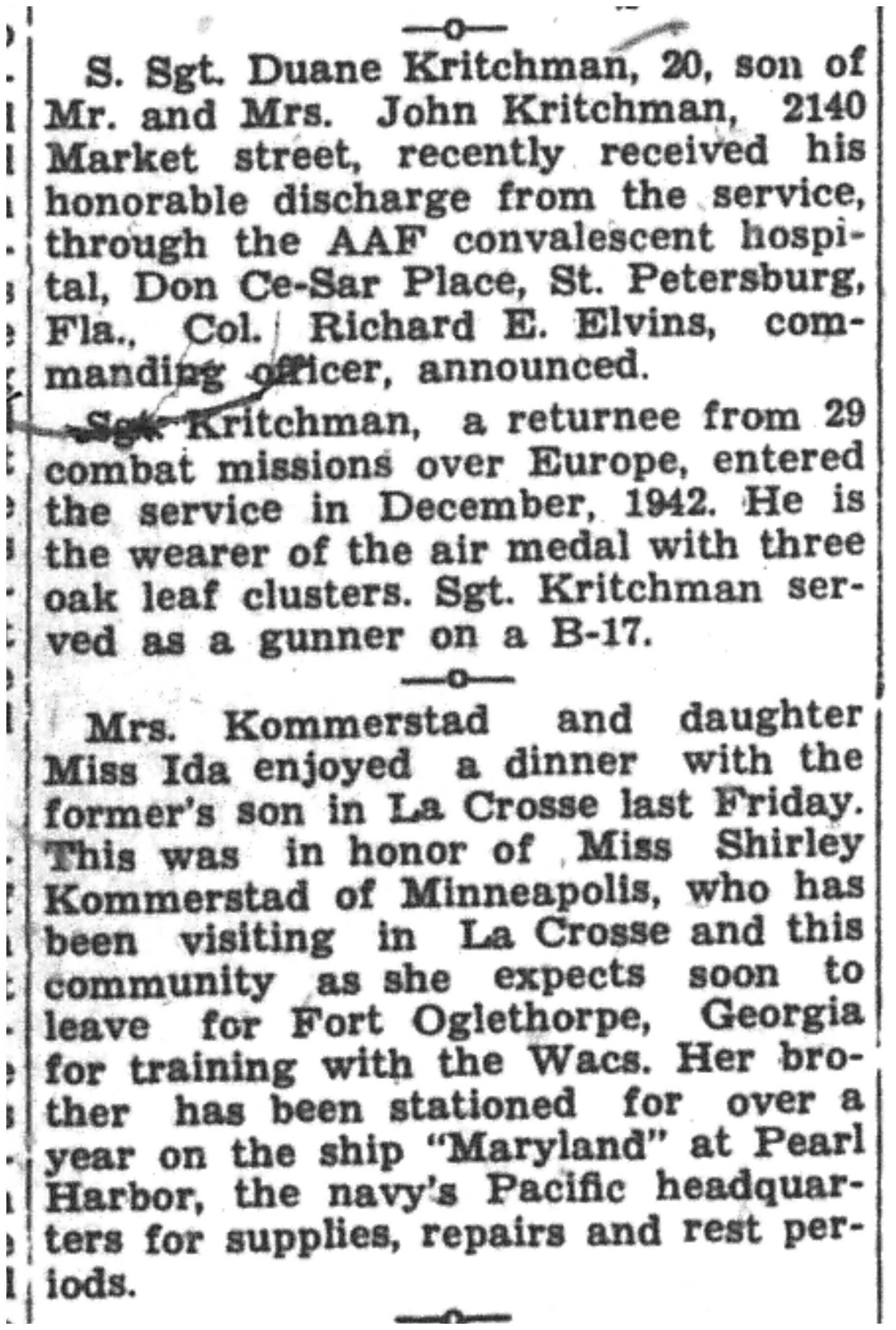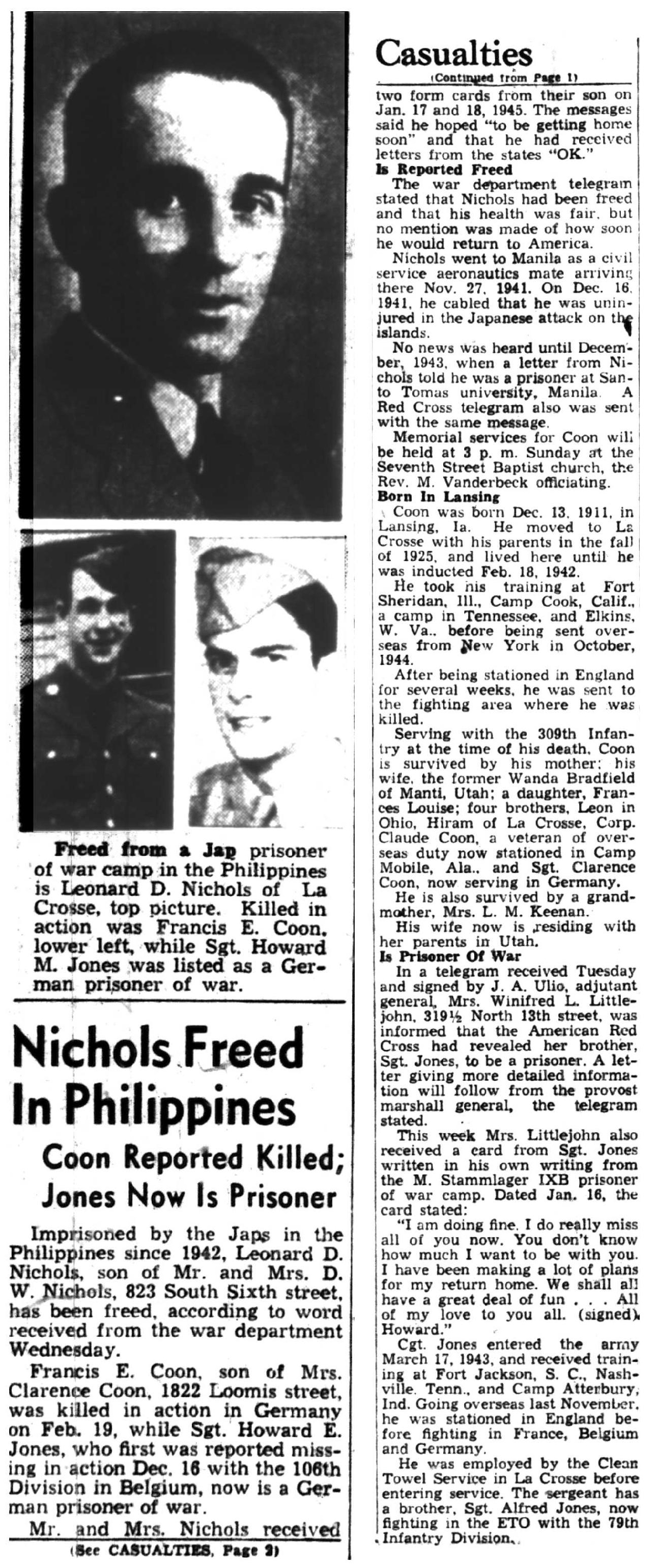 | 1945-3-7 | La Crosse Tribune p5 | |