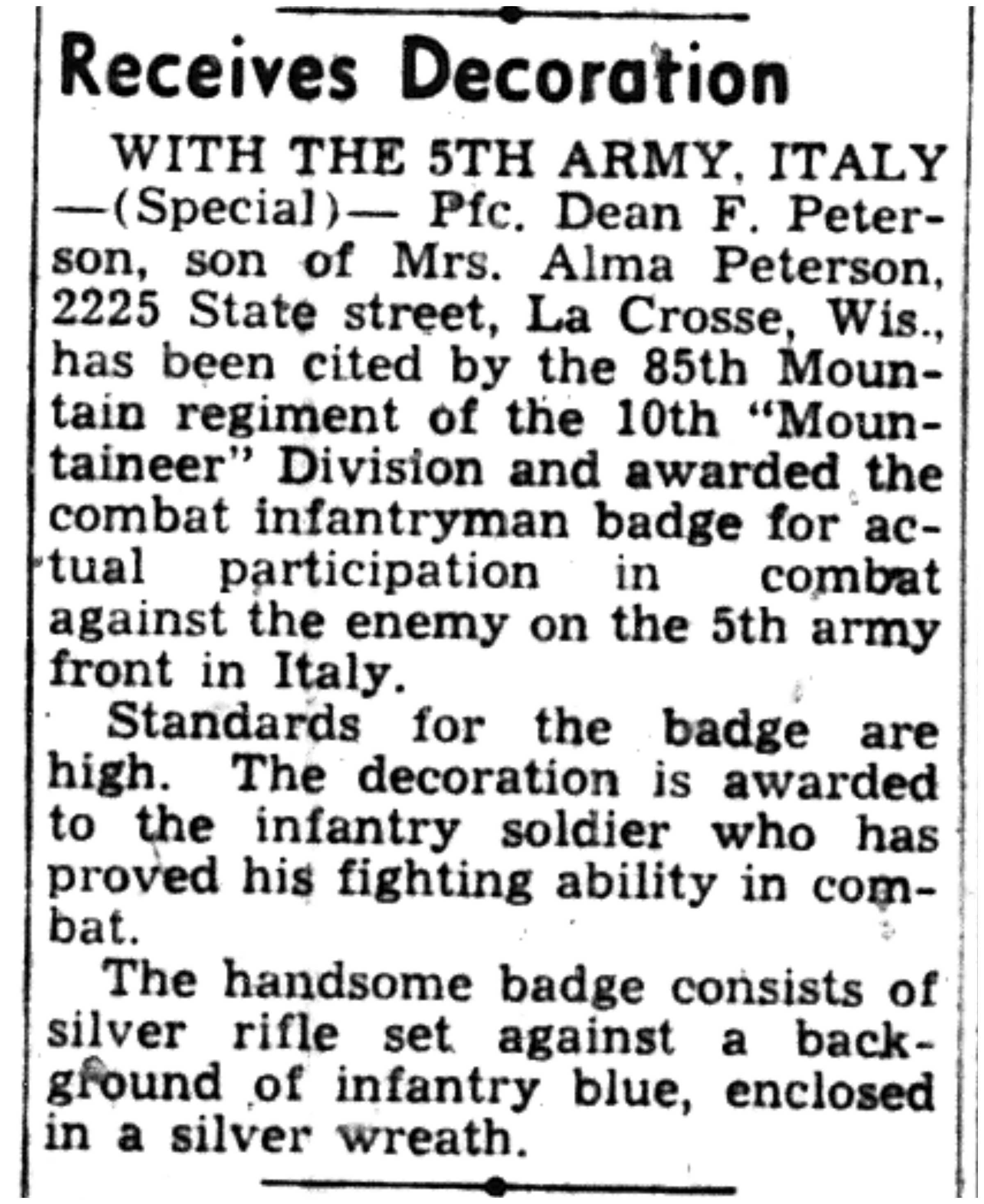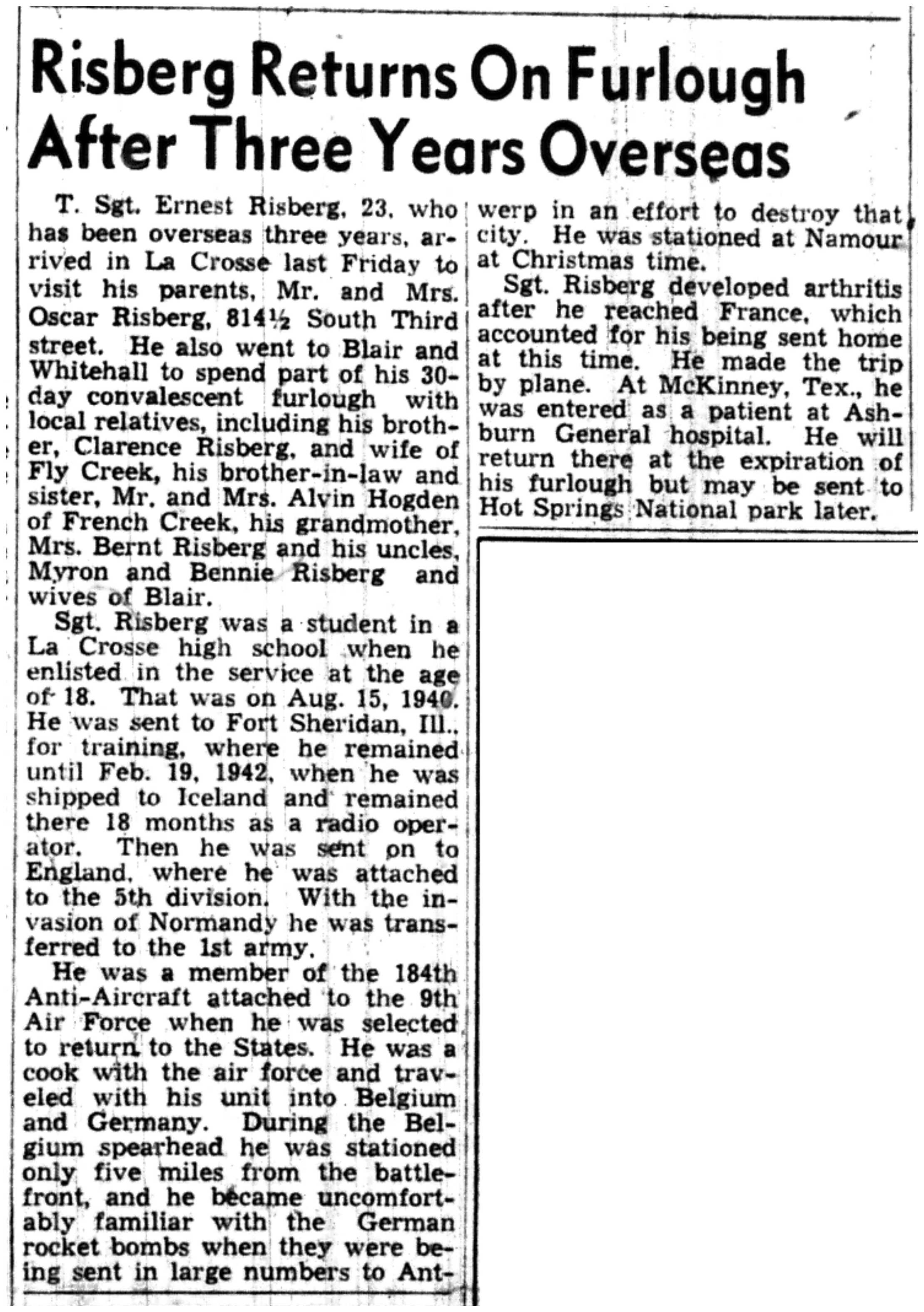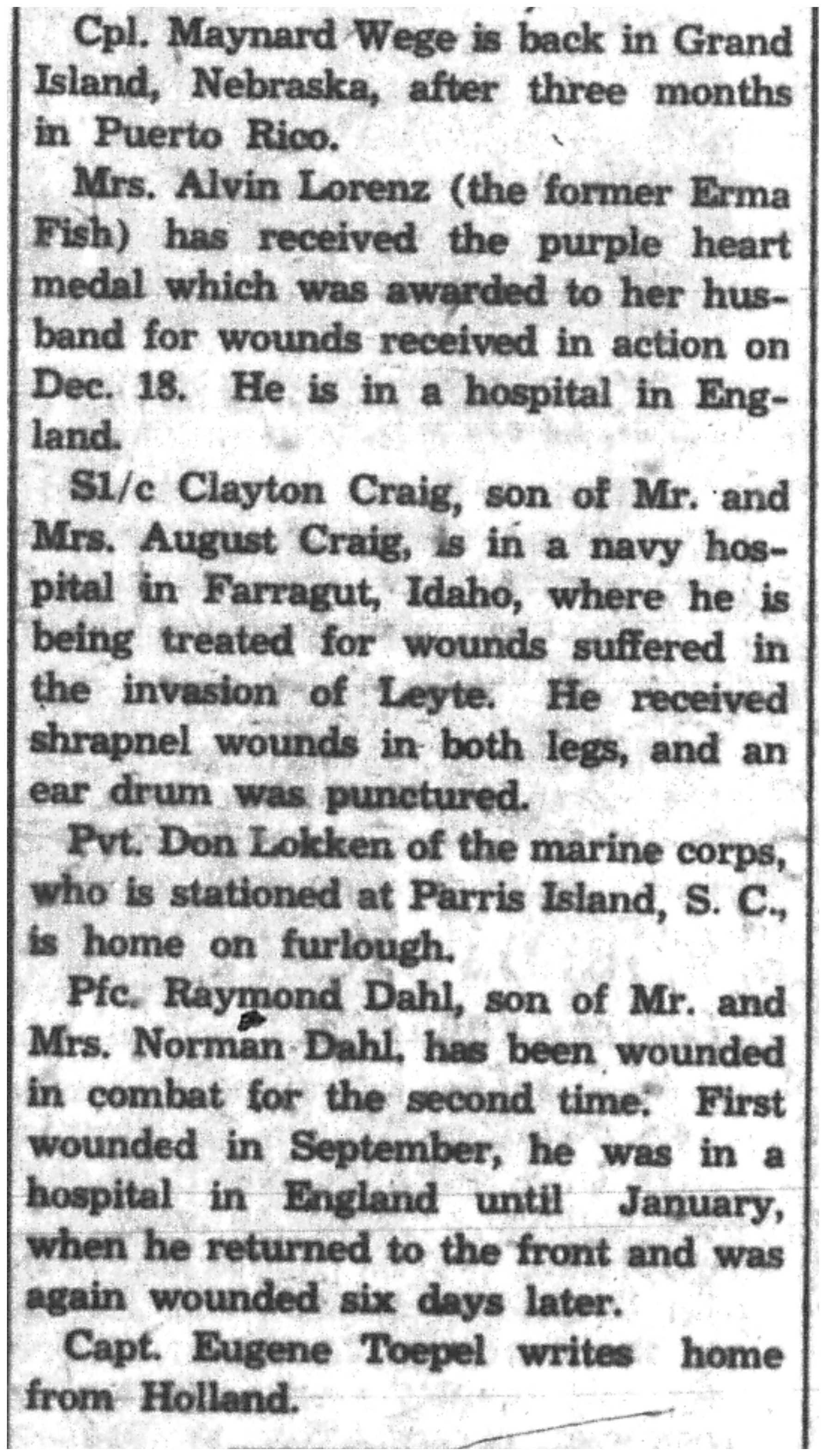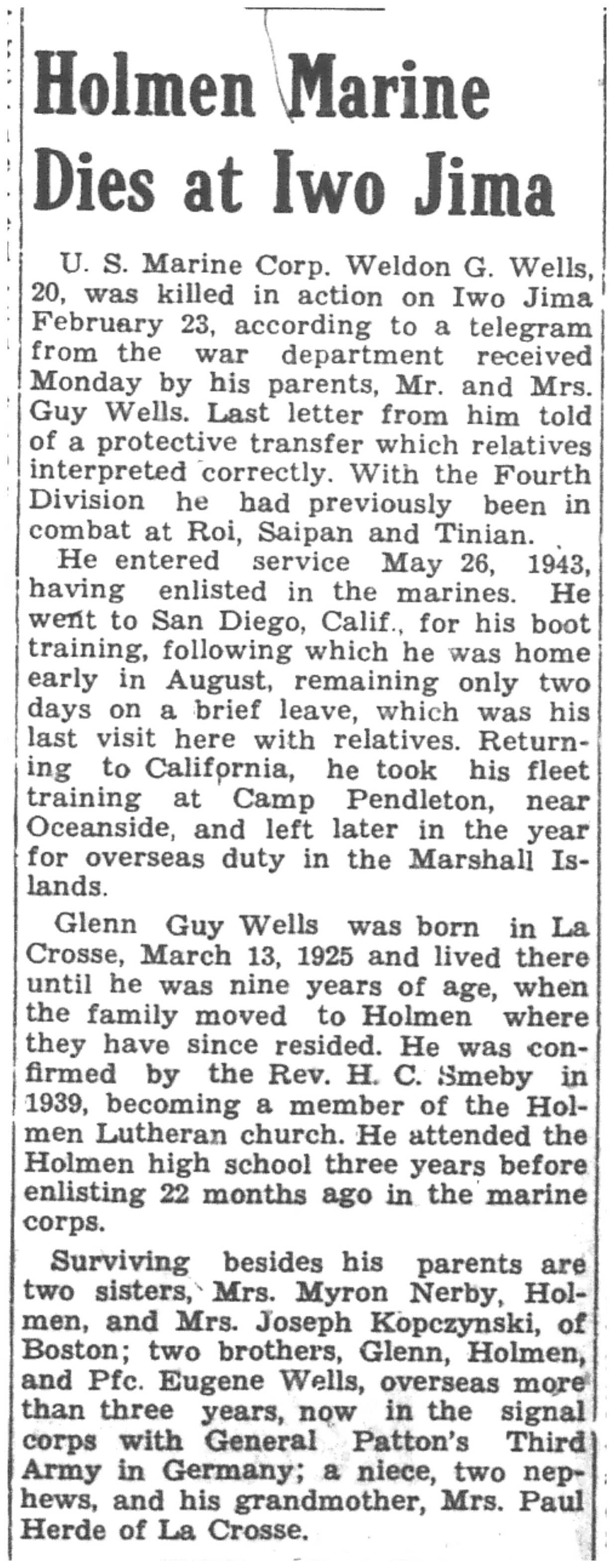 | 1945-3-7 | La Crosse Tribune p5 | |