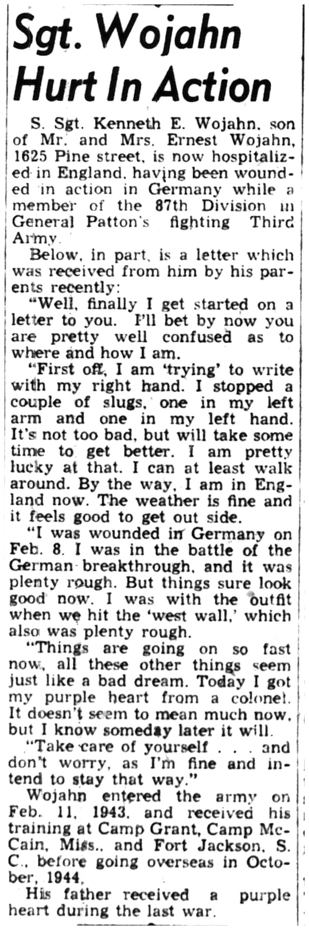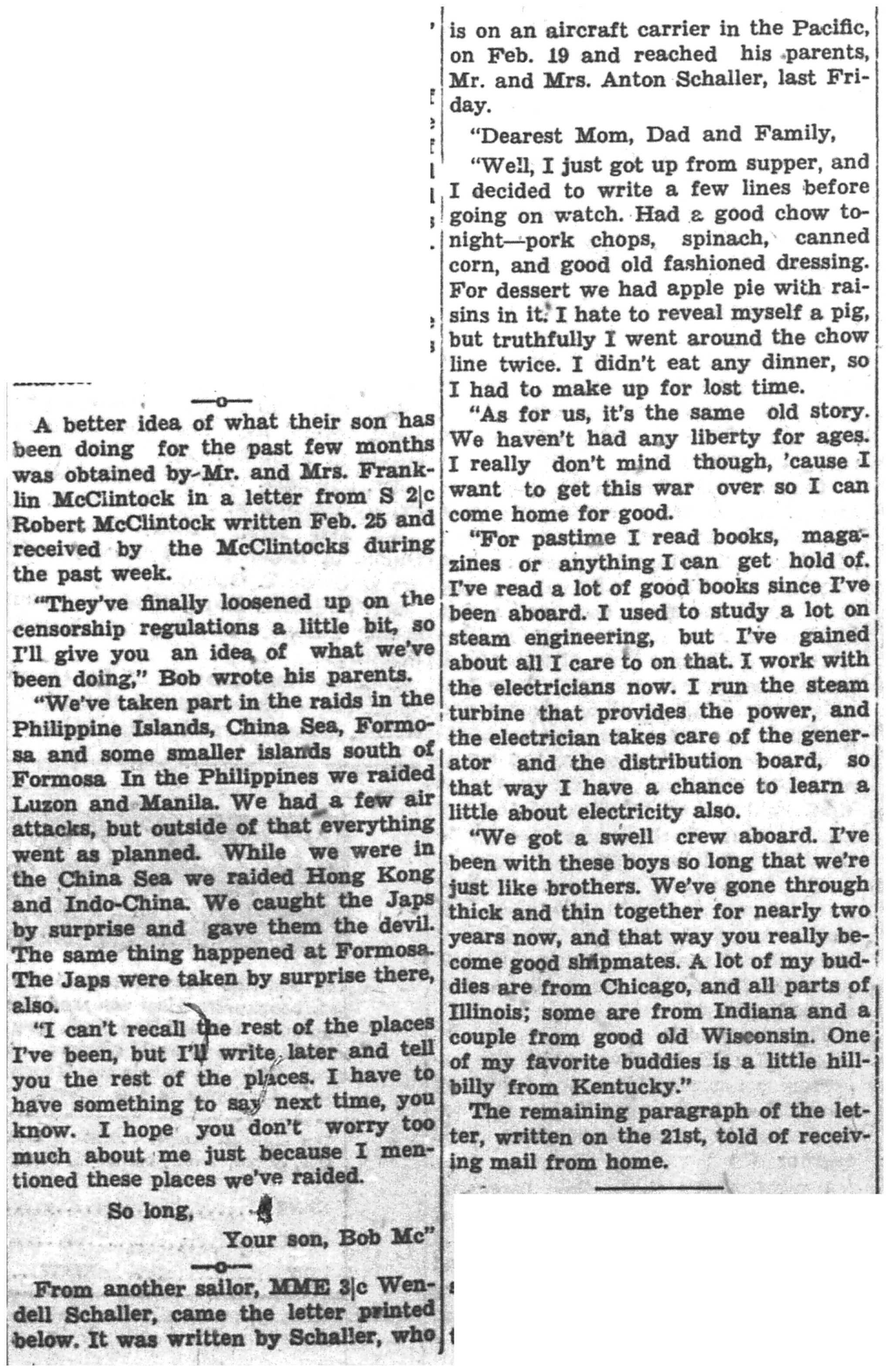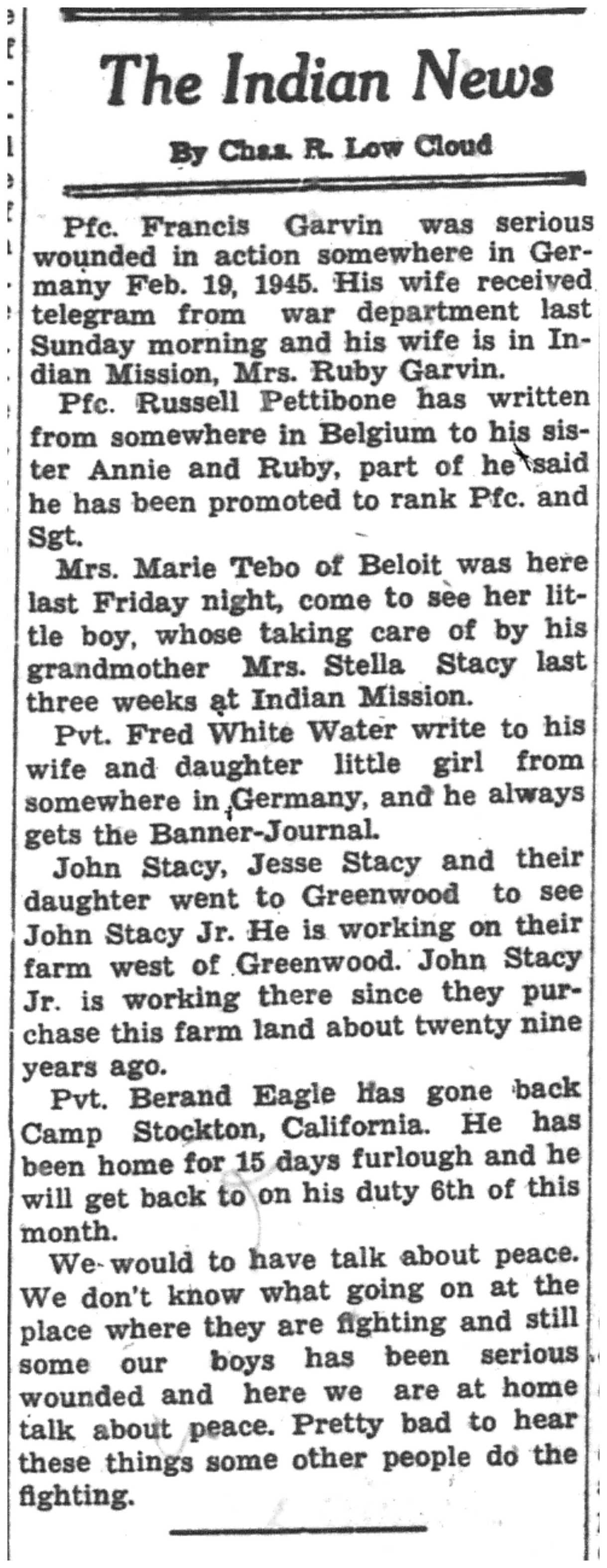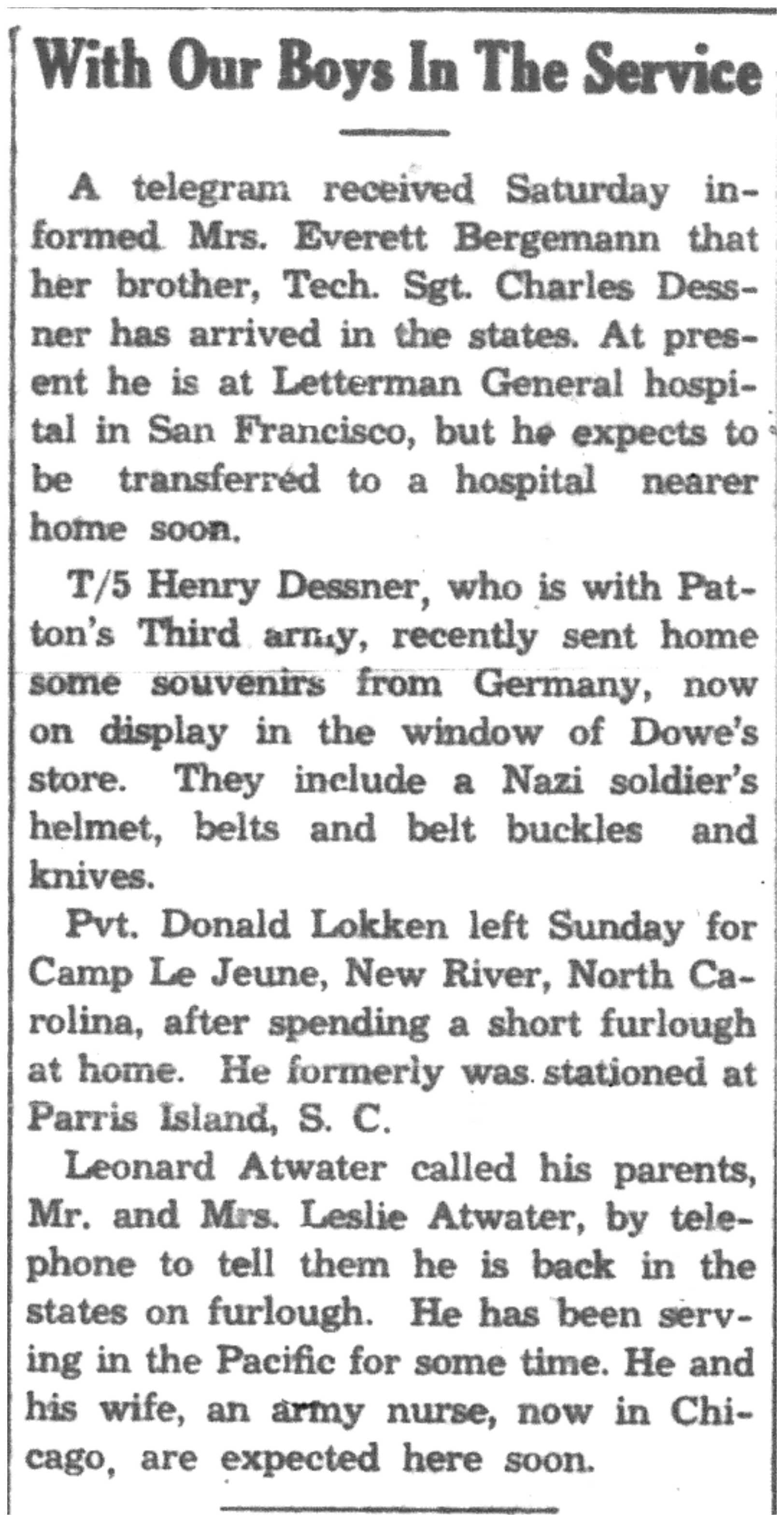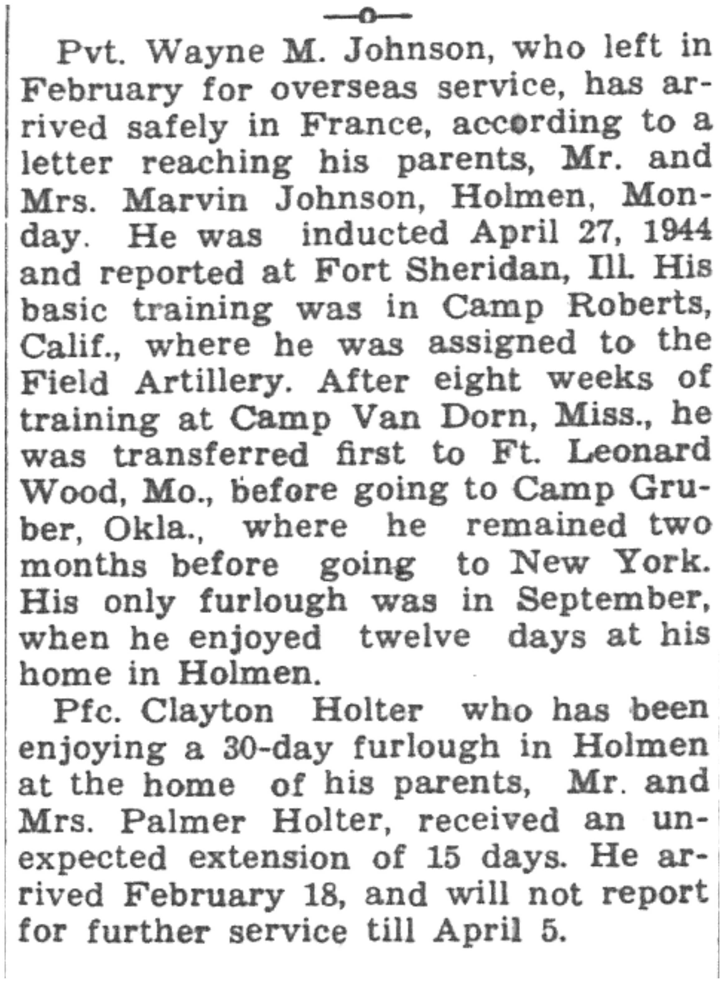 | 1945-3-7 | La Crosse Tribune p5 | |