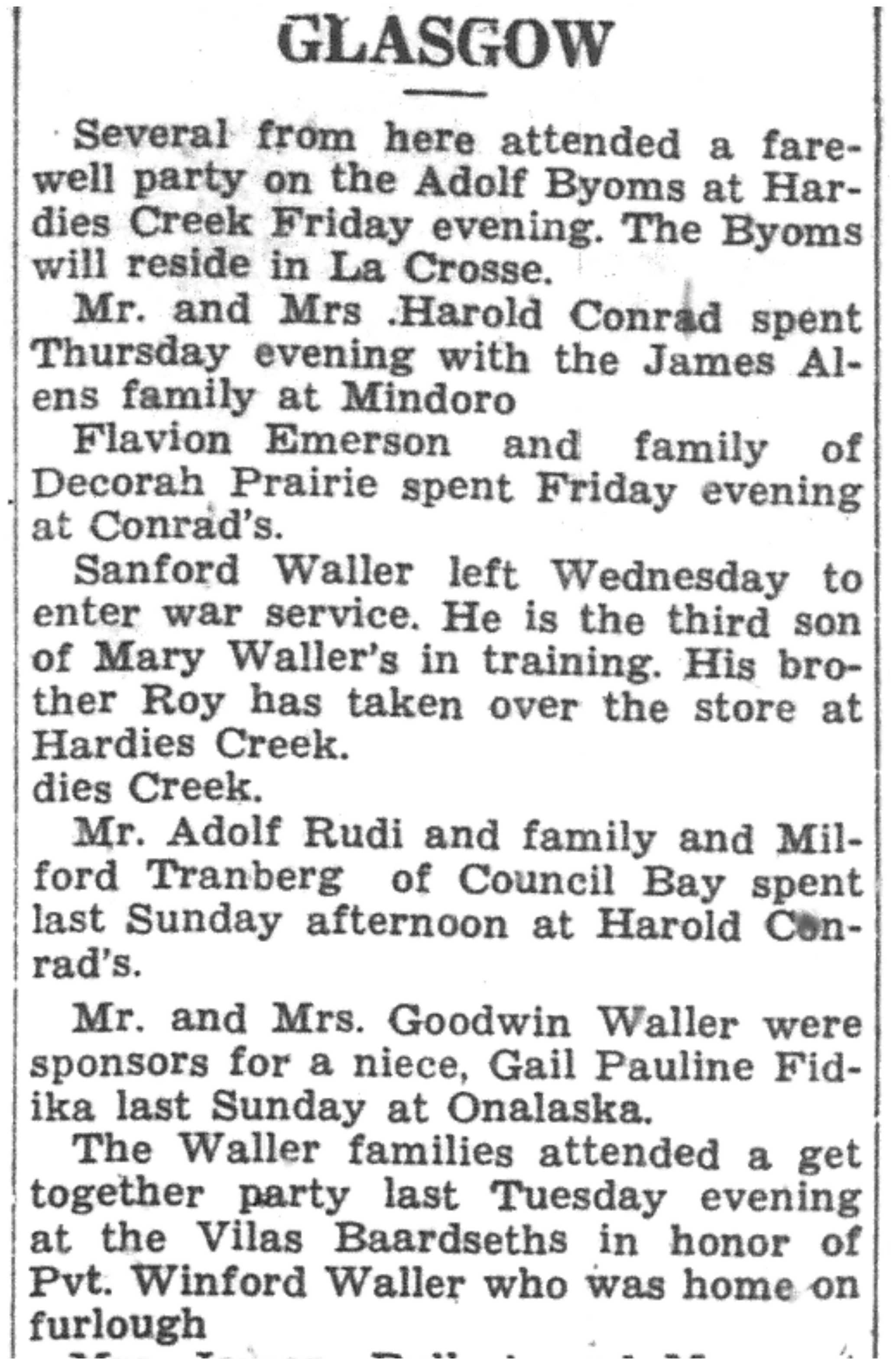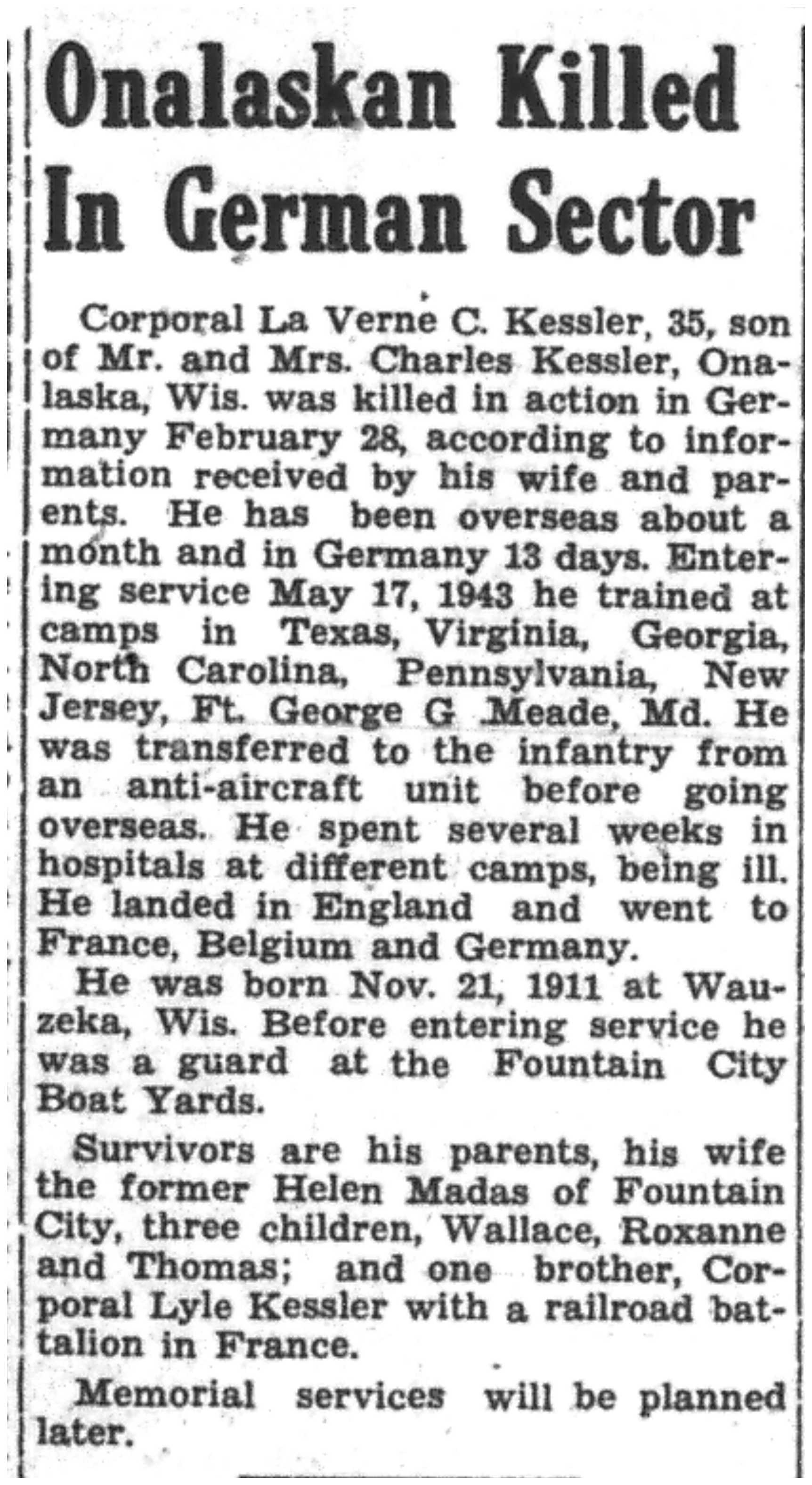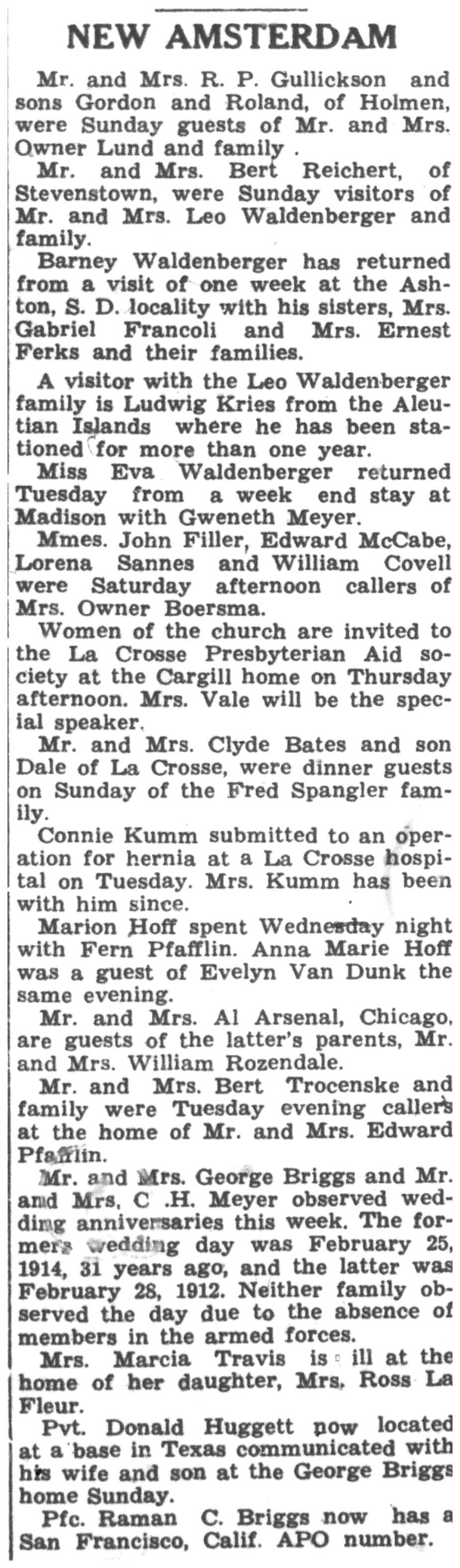 | 1945-3-29 | La Crosse County Record p8 | |