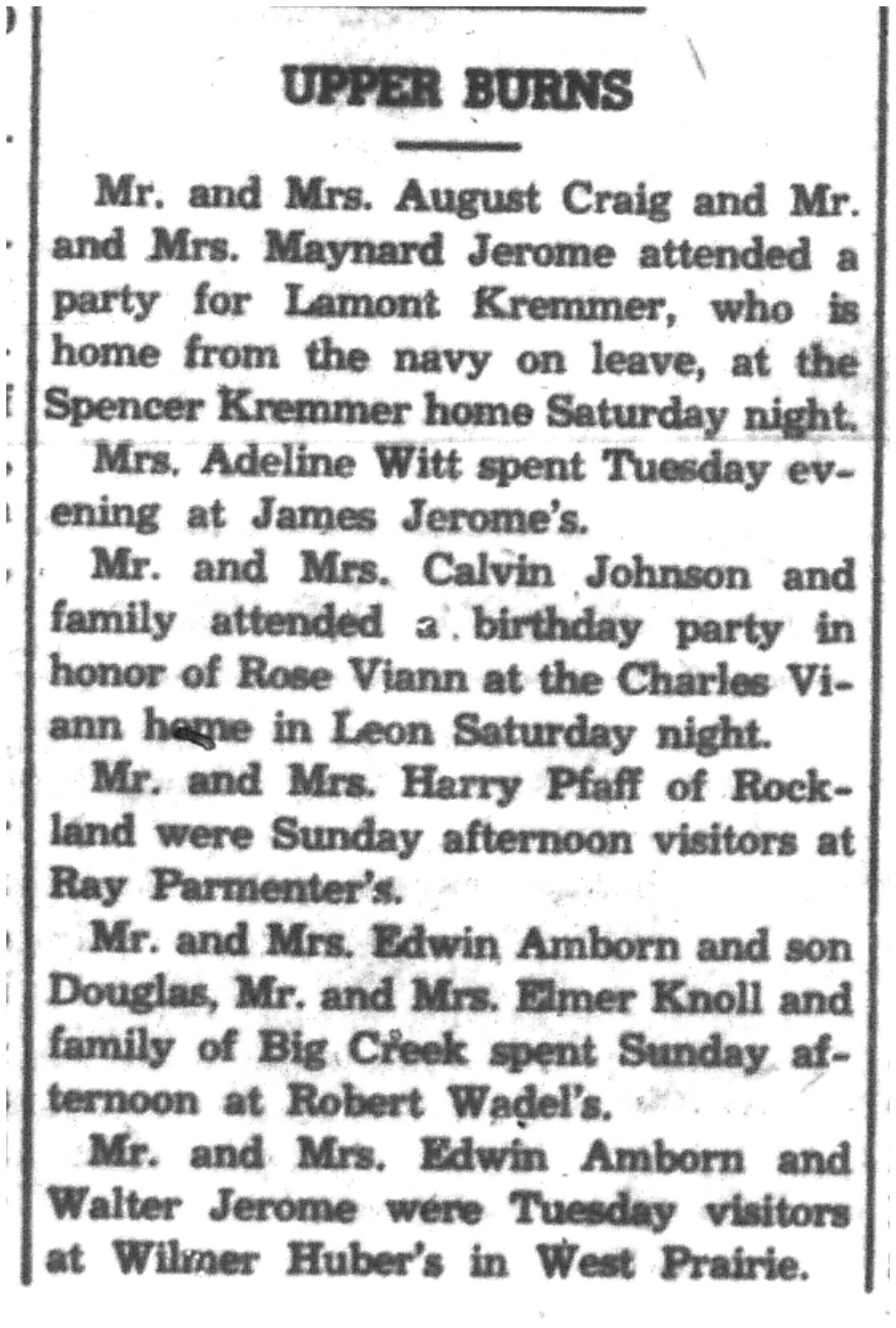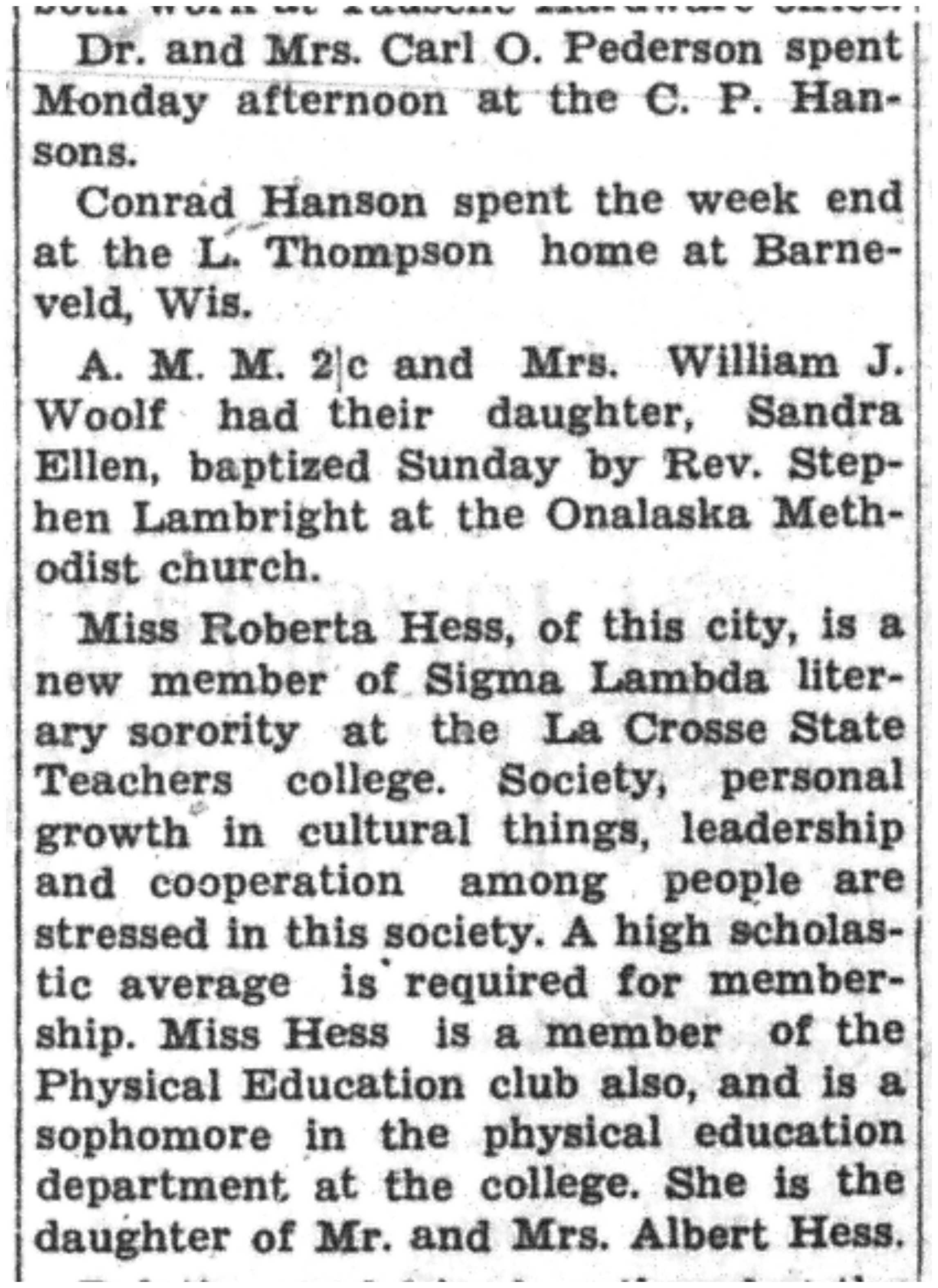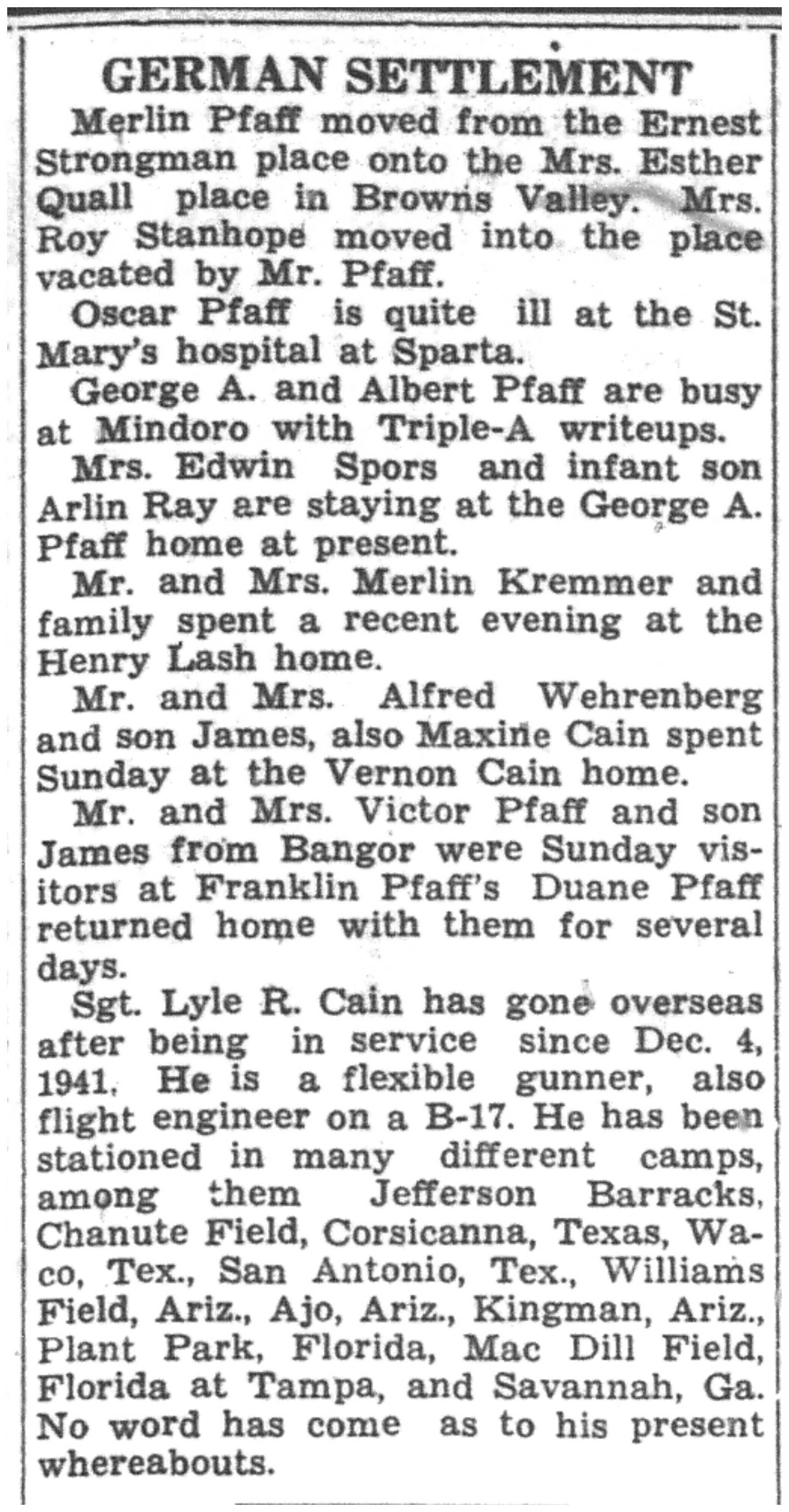 | 1945-3-29 | La Crosse County Record p8 | |
