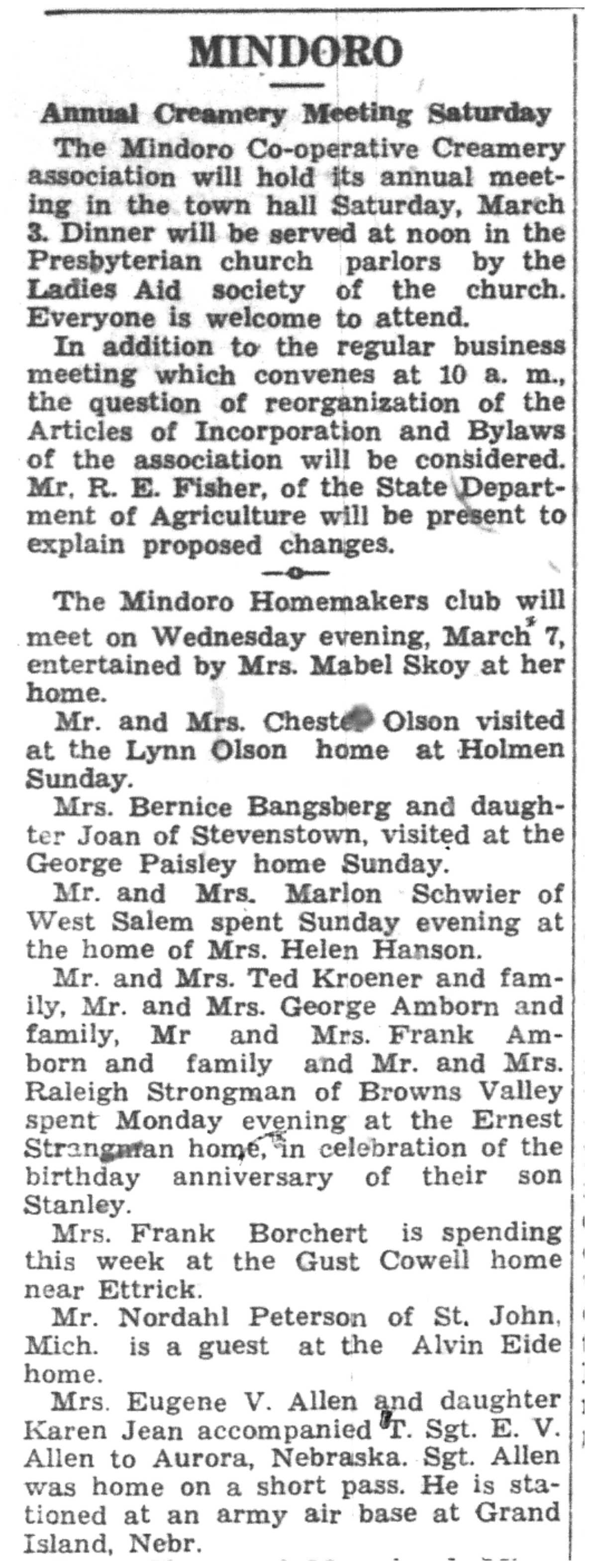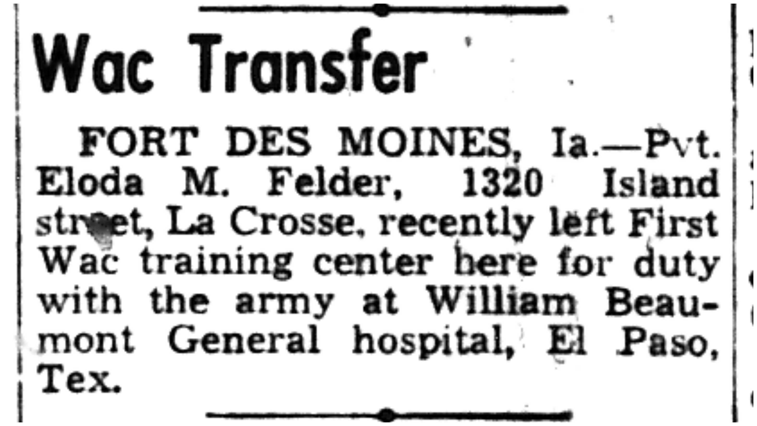 | 1945-3-1 | La Crosse Tribune p8 | |