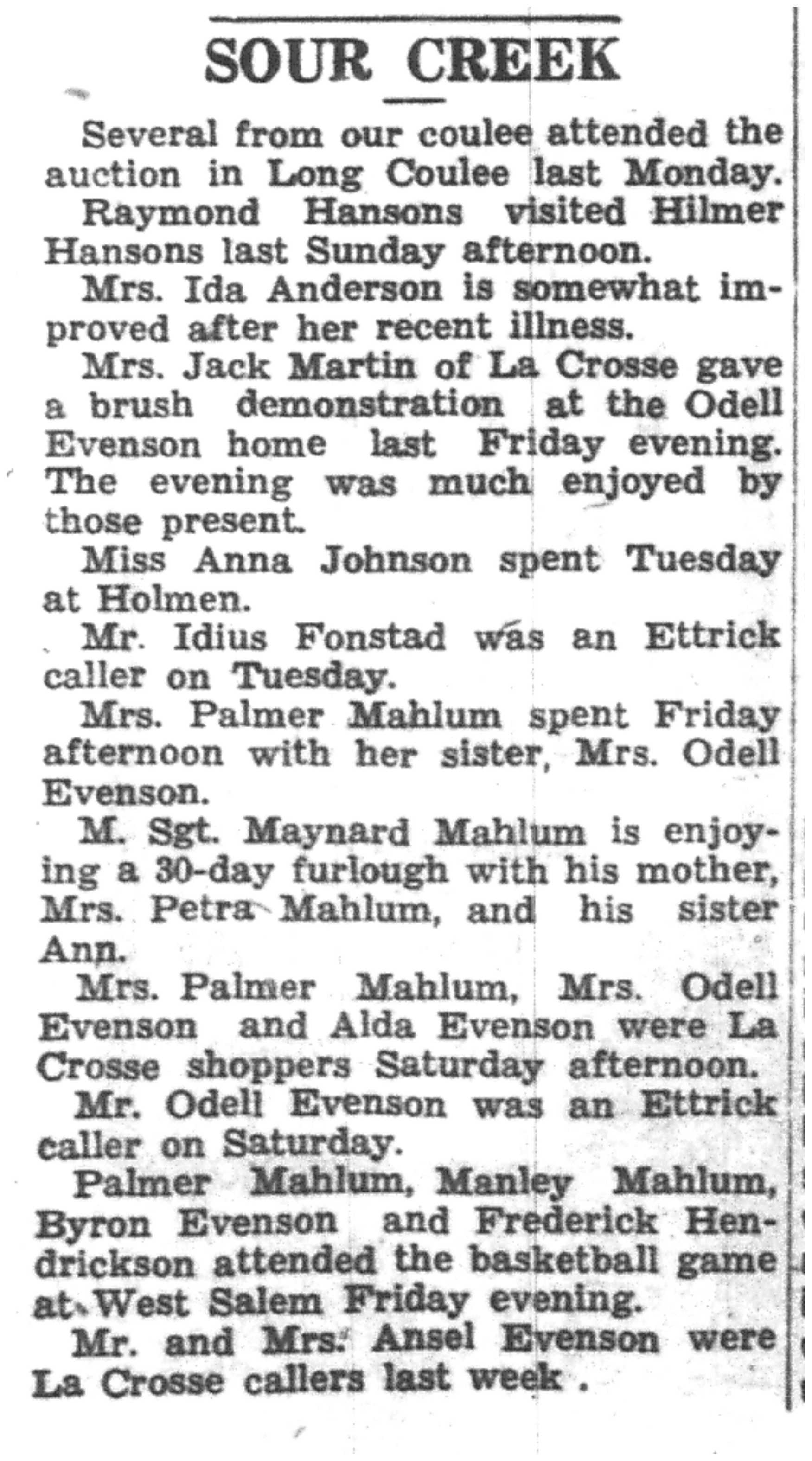 | 1945-3-1 | La Crosse County Record p8 | |
