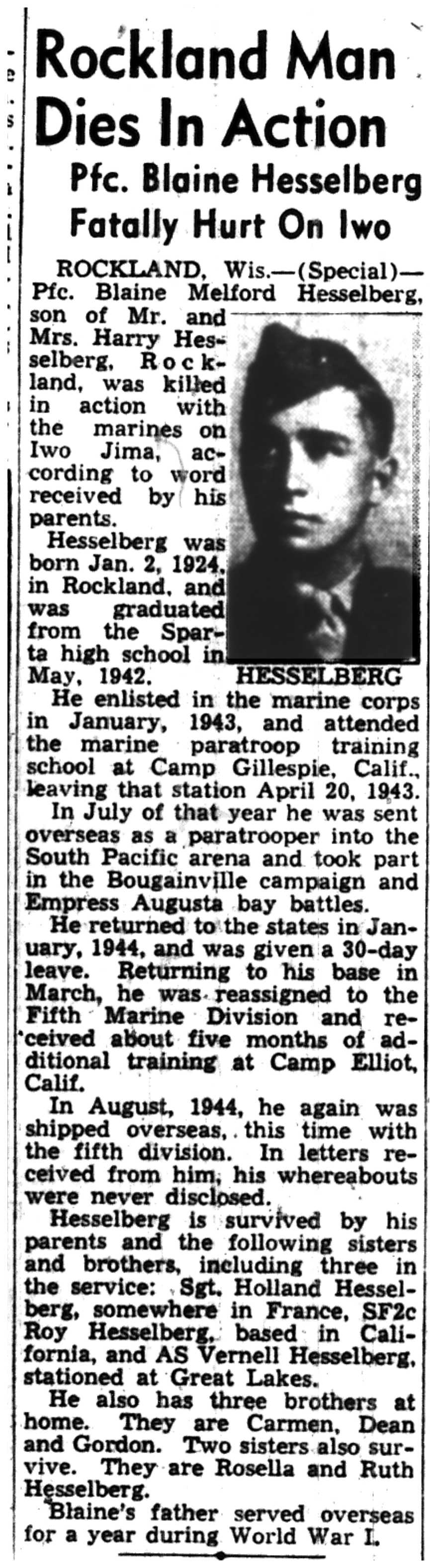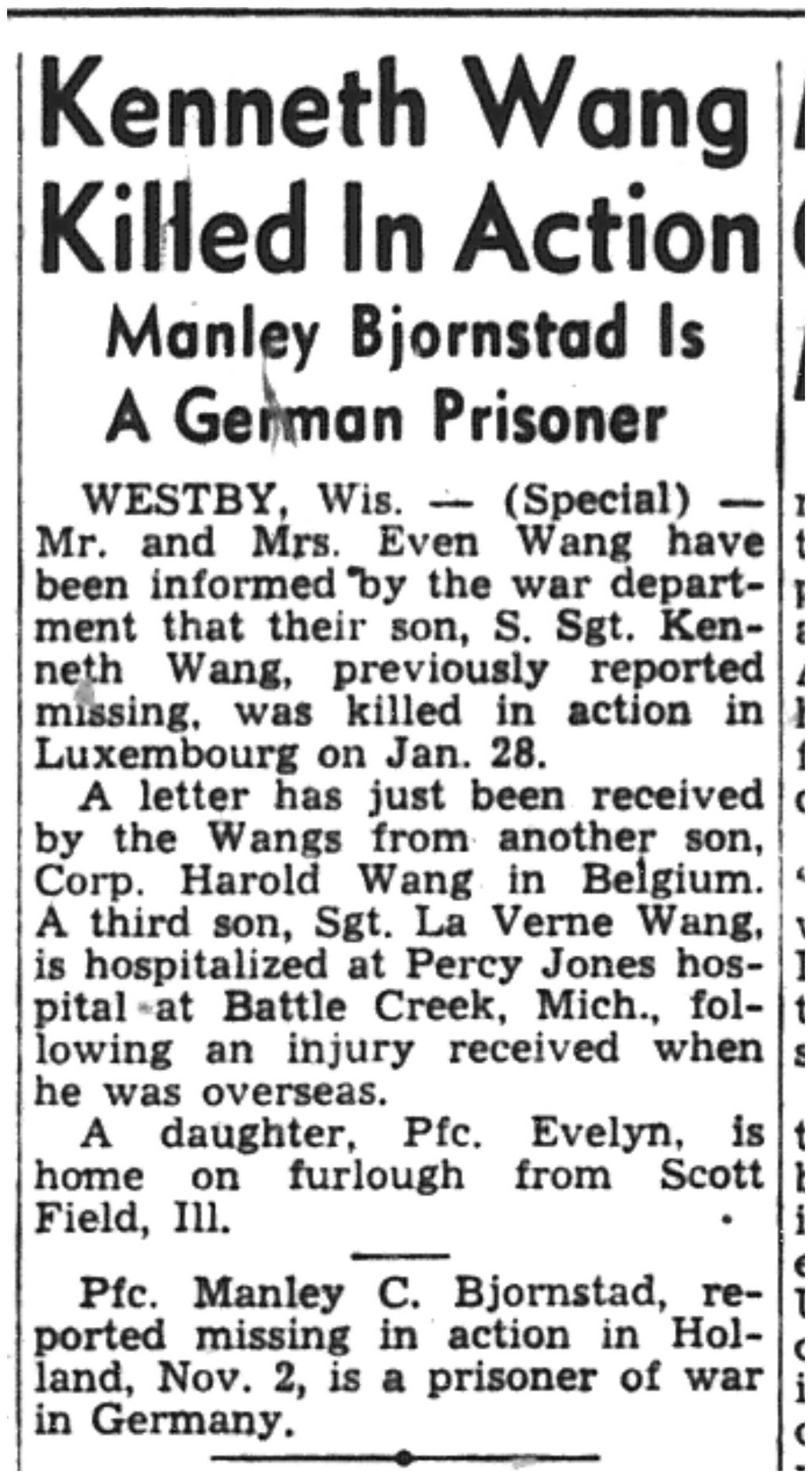 | 1945-3-4 | La Crosse Tribune p3 | |