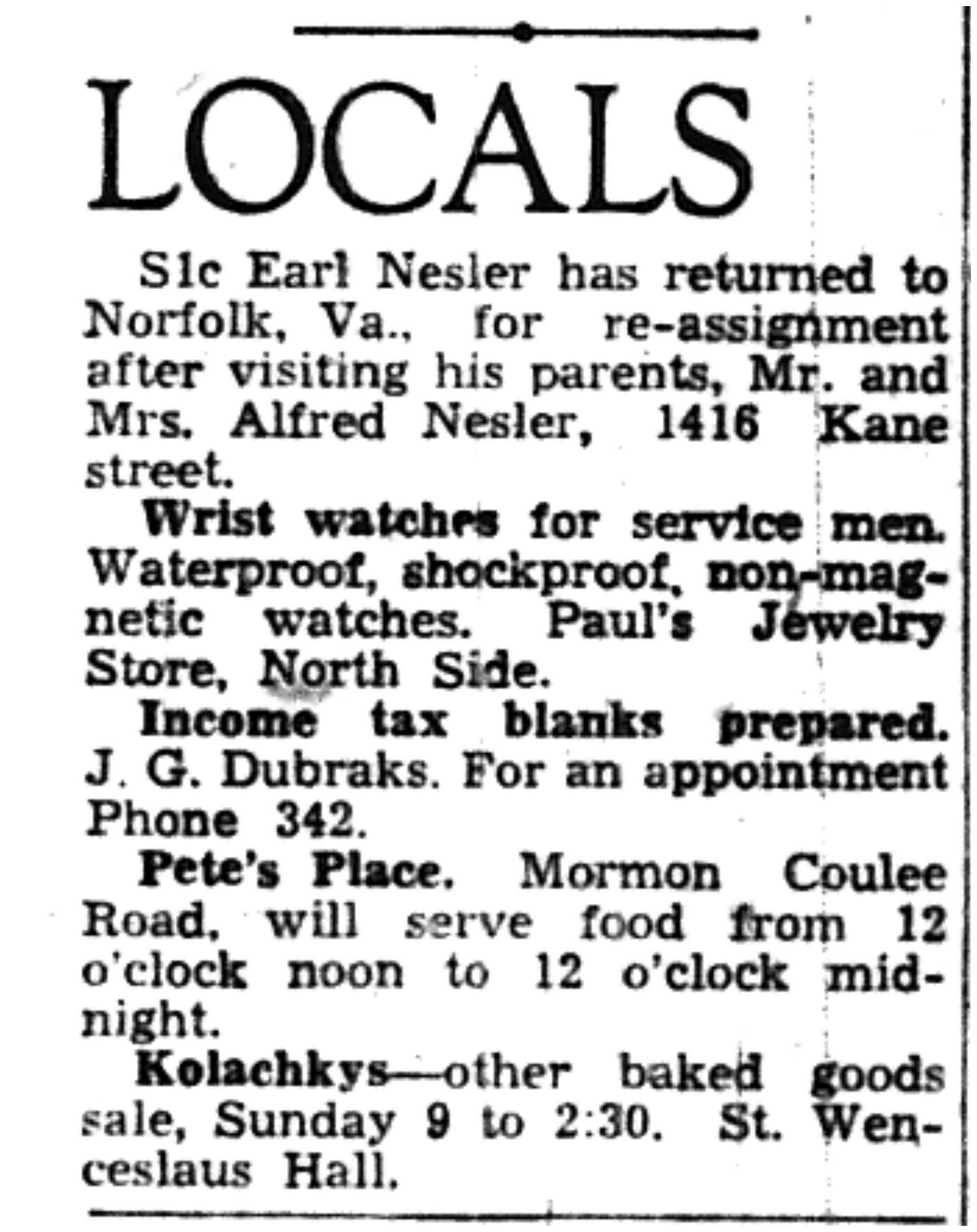 | 1945-3-29 | Non-Pareil Journal p8 | |