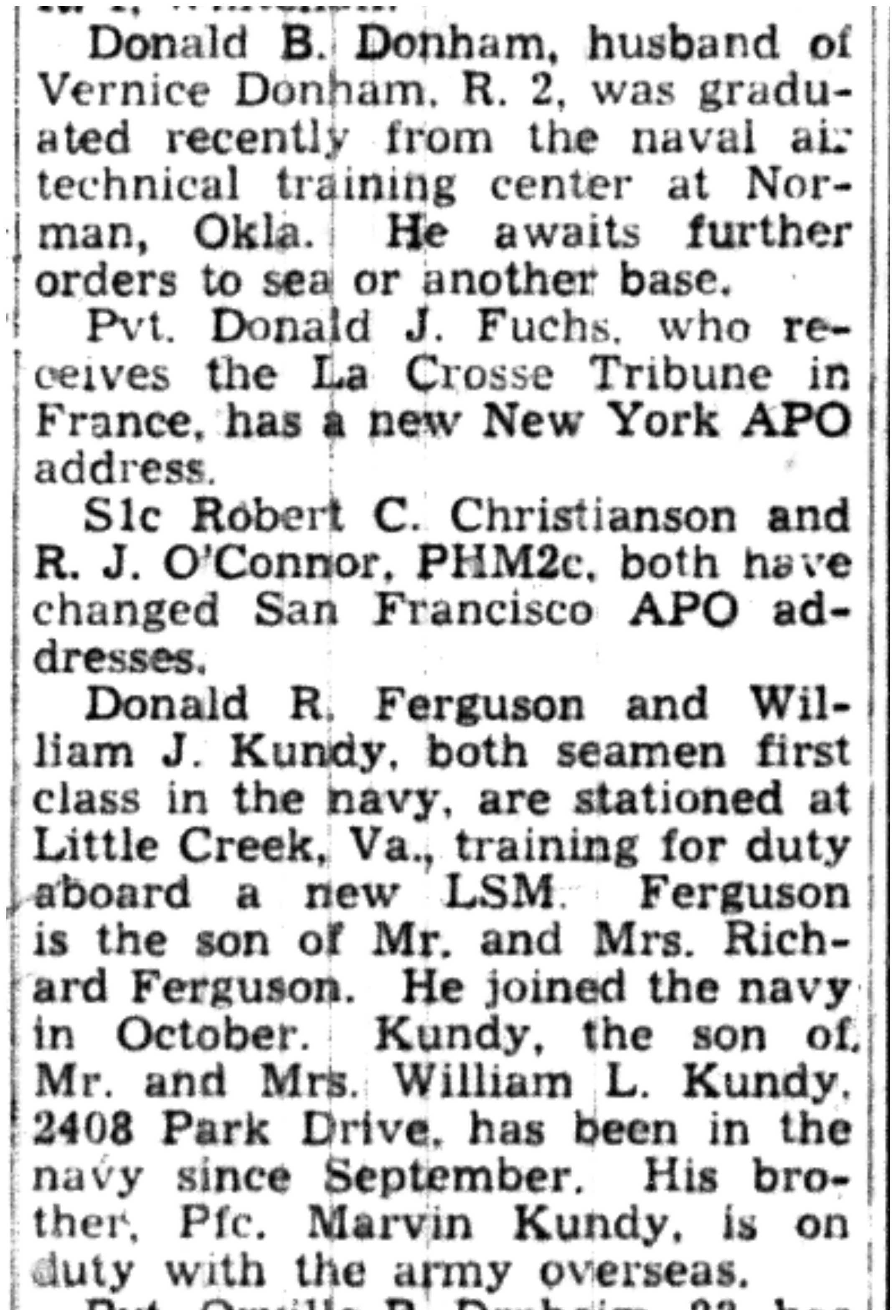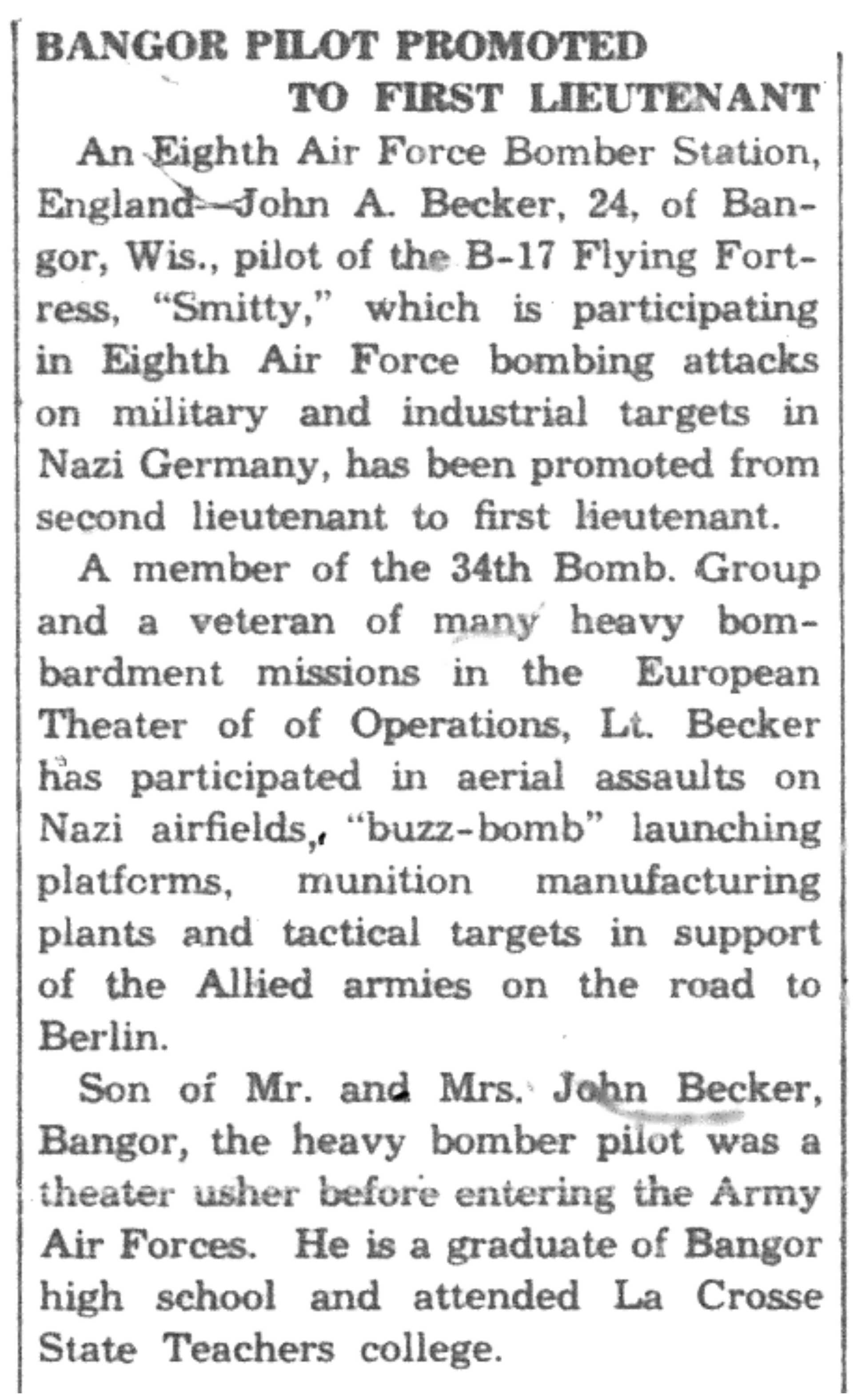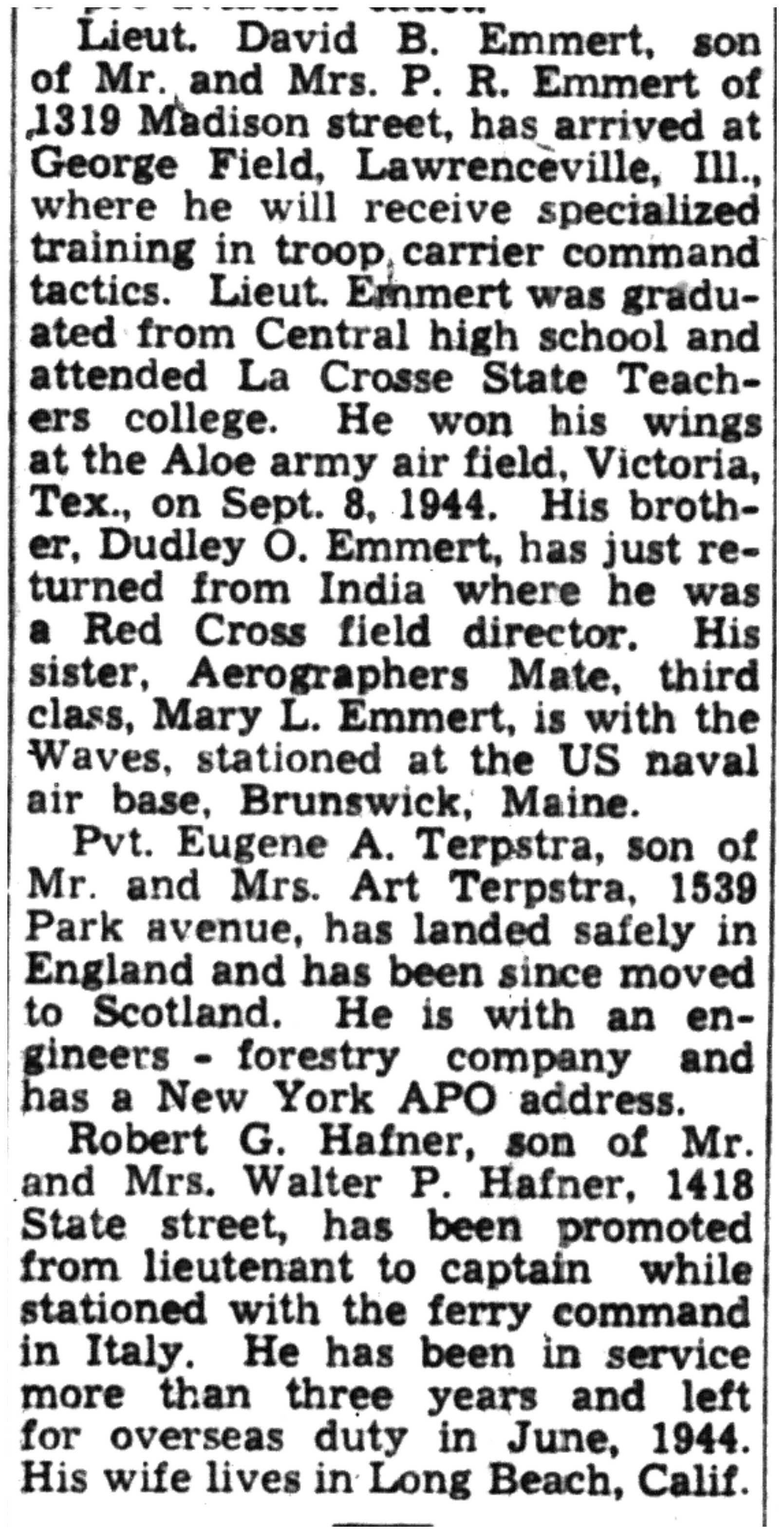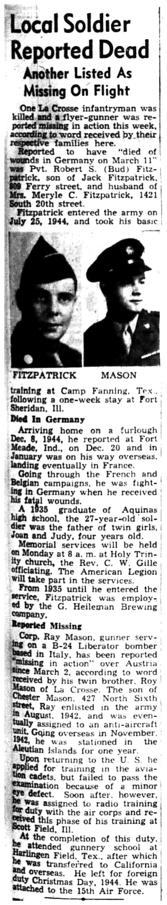 | 1945-3-25 | La Crosse Tribune p8 | |