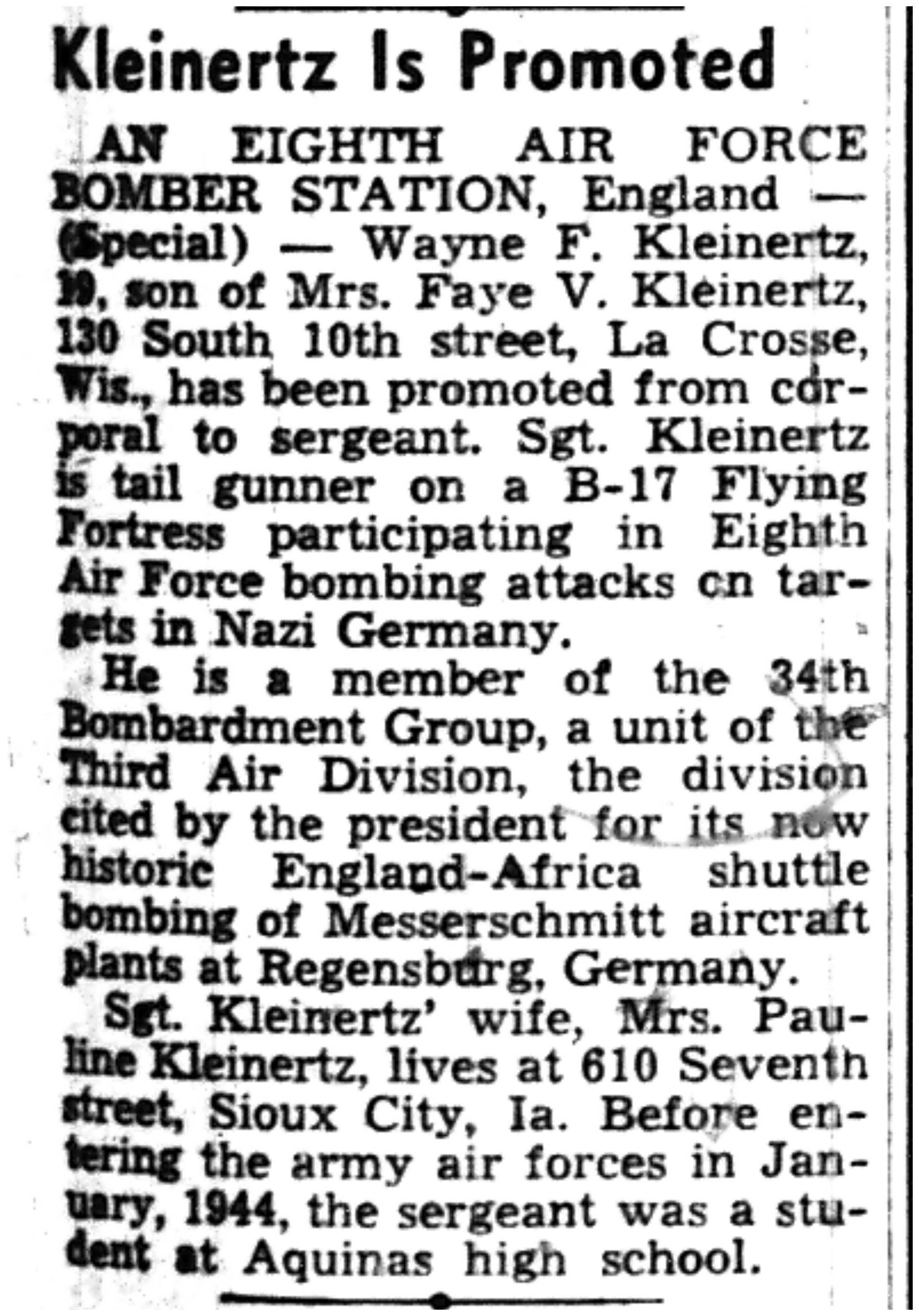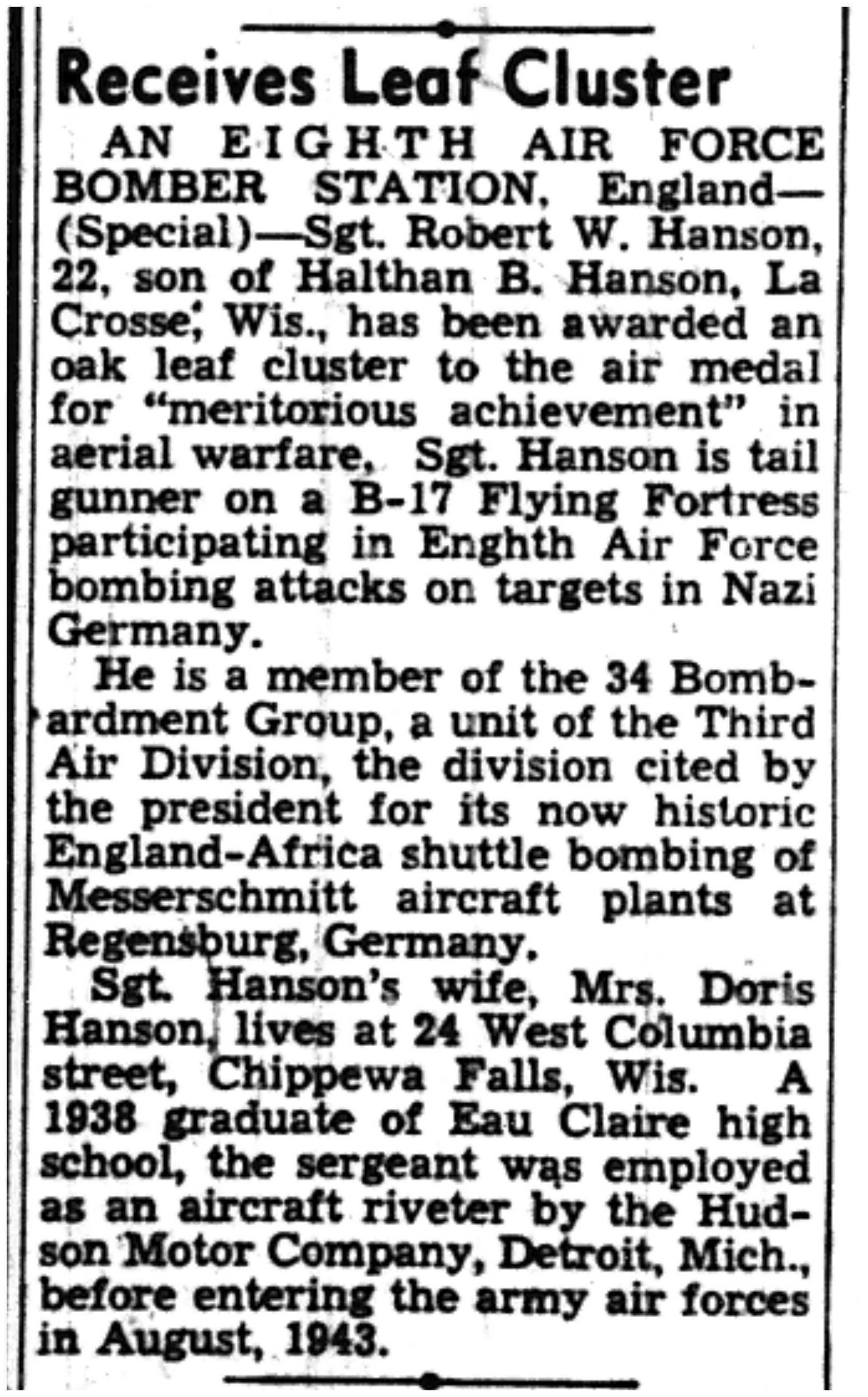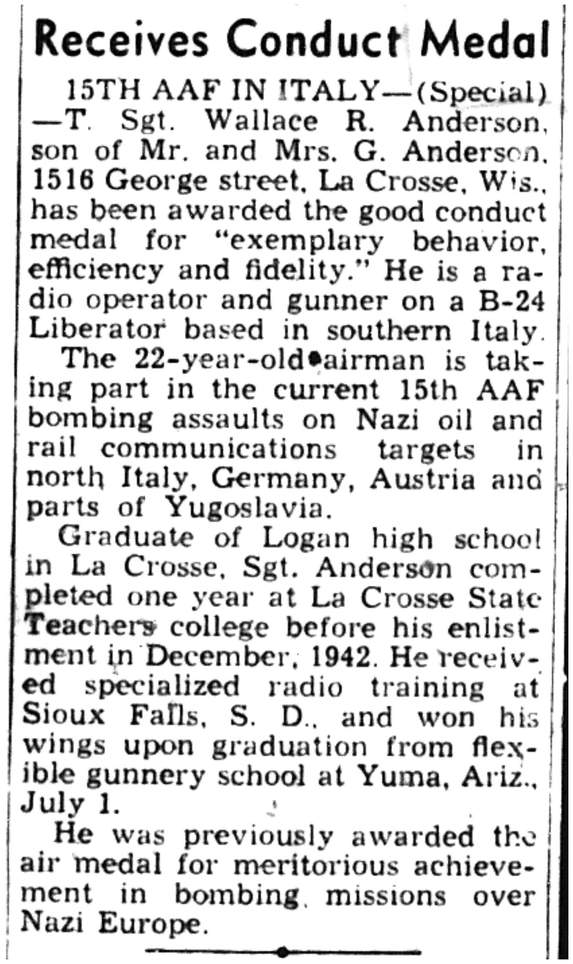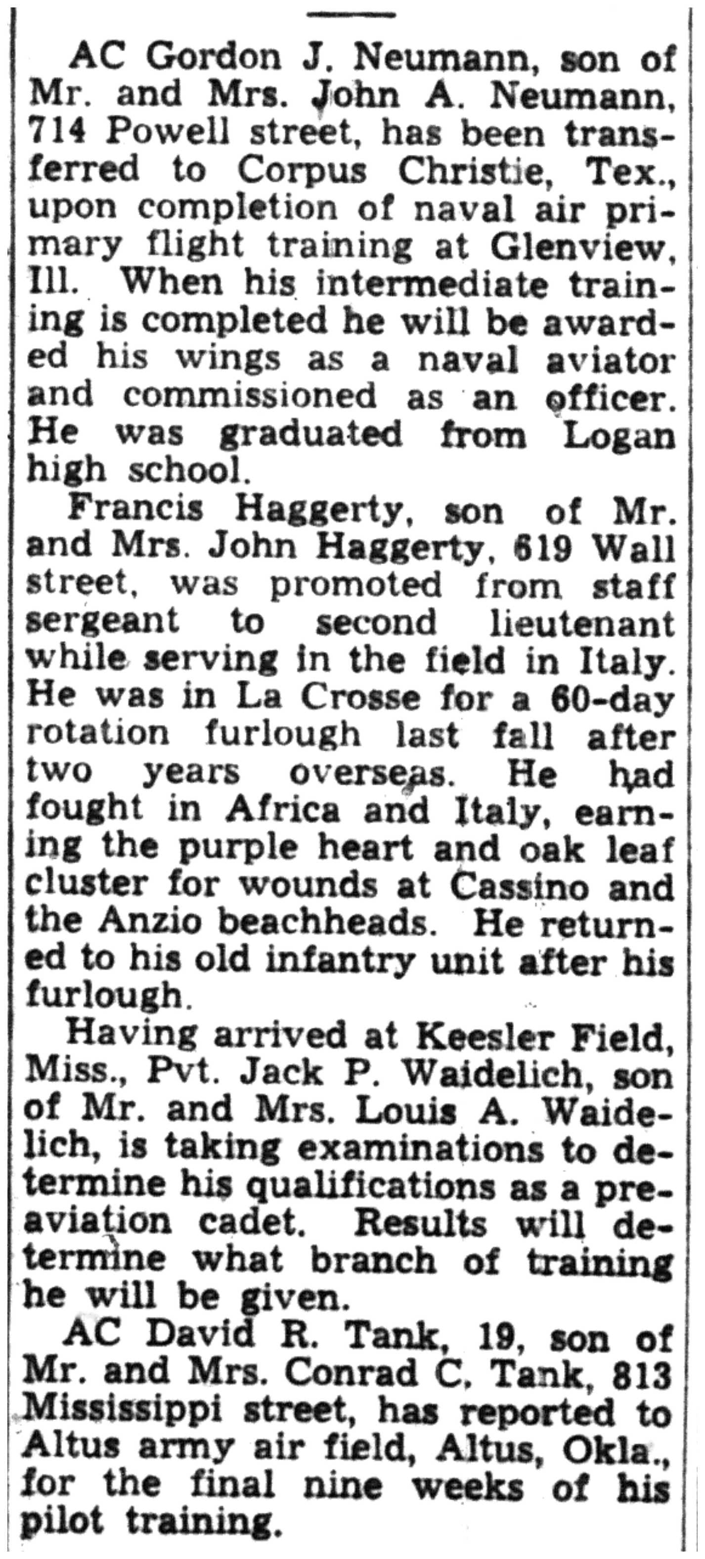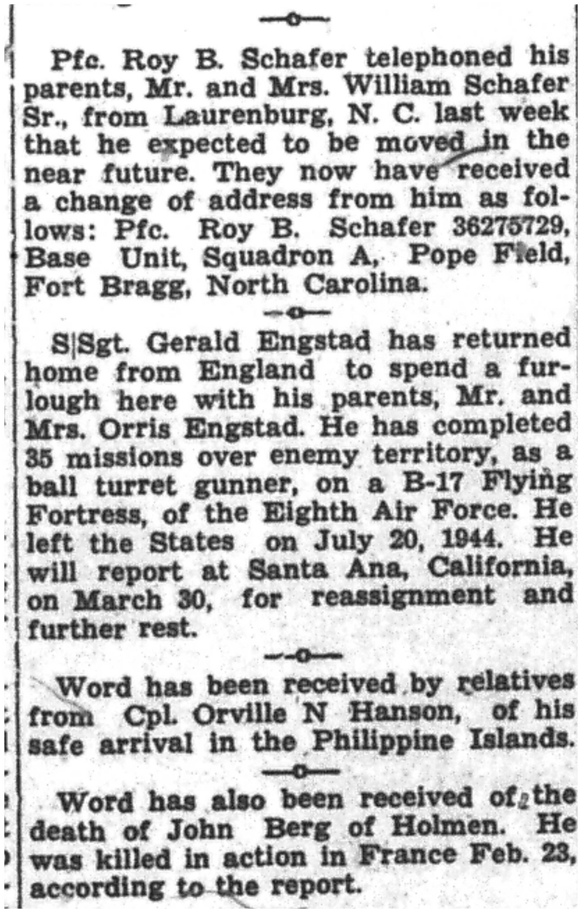 | 1945-3-25 | La Crosse Tribune p8 | |