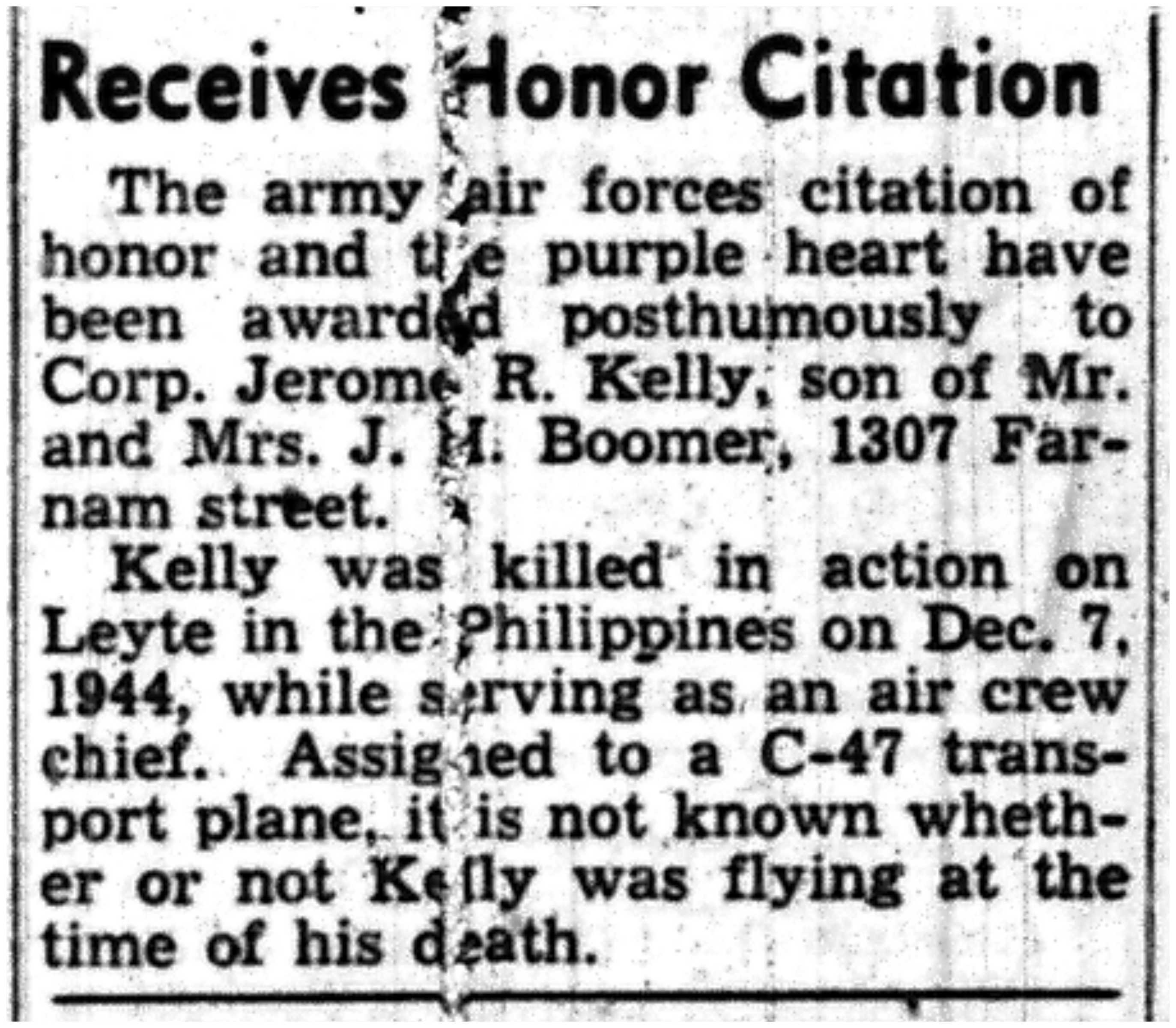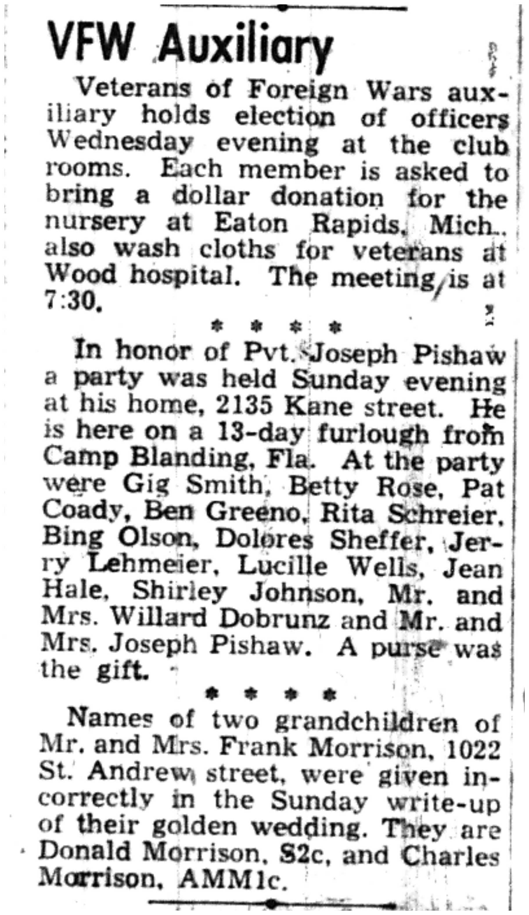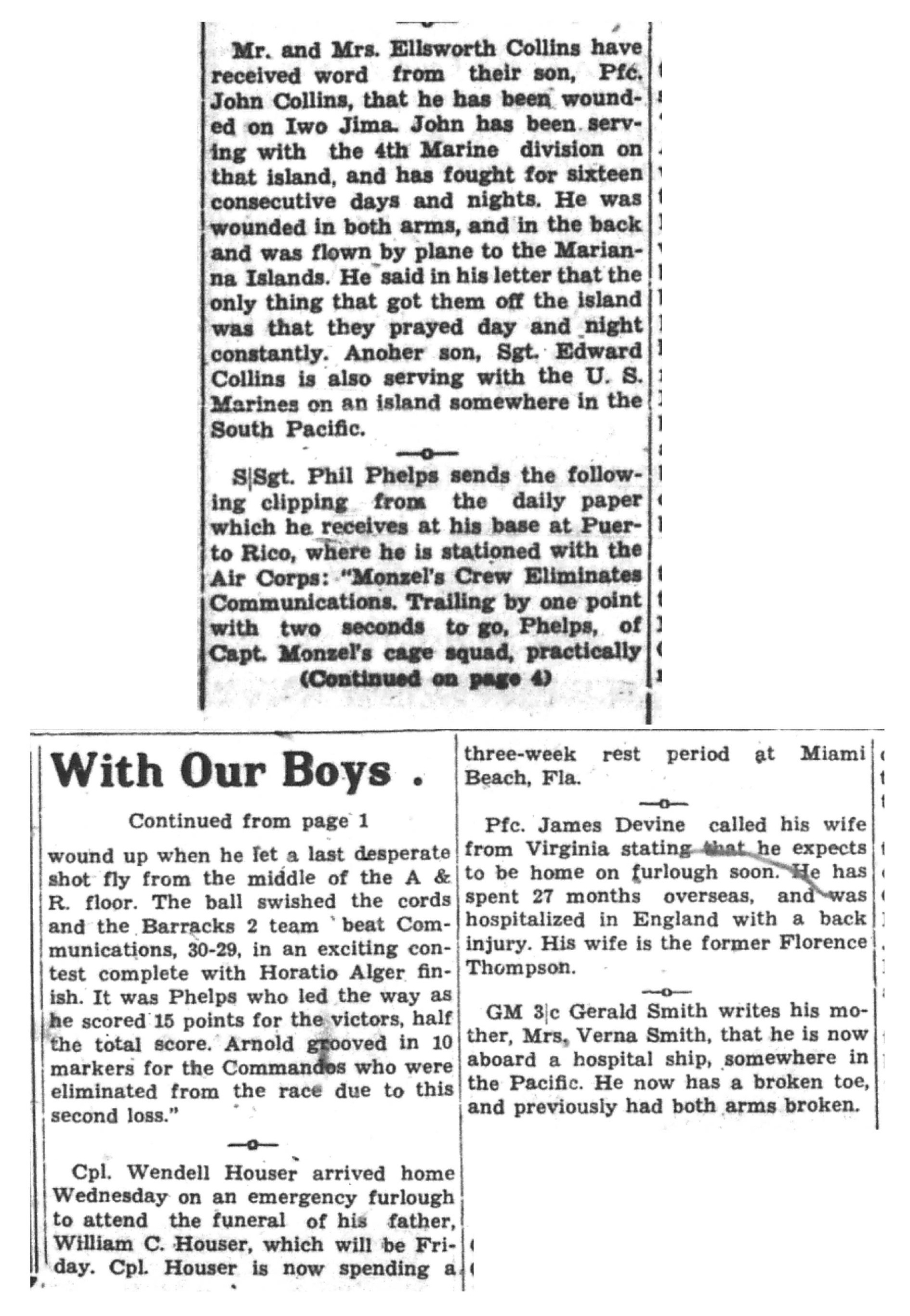 | 1945-3-29 | Non-Pareil Journal p4 | |