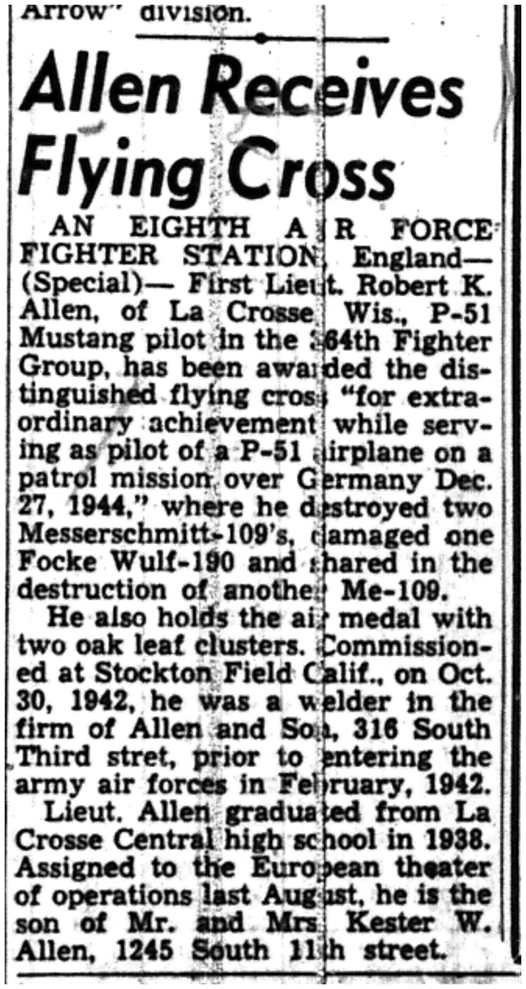 | 1945-3-27 | La Crosse Tribune p8 | |