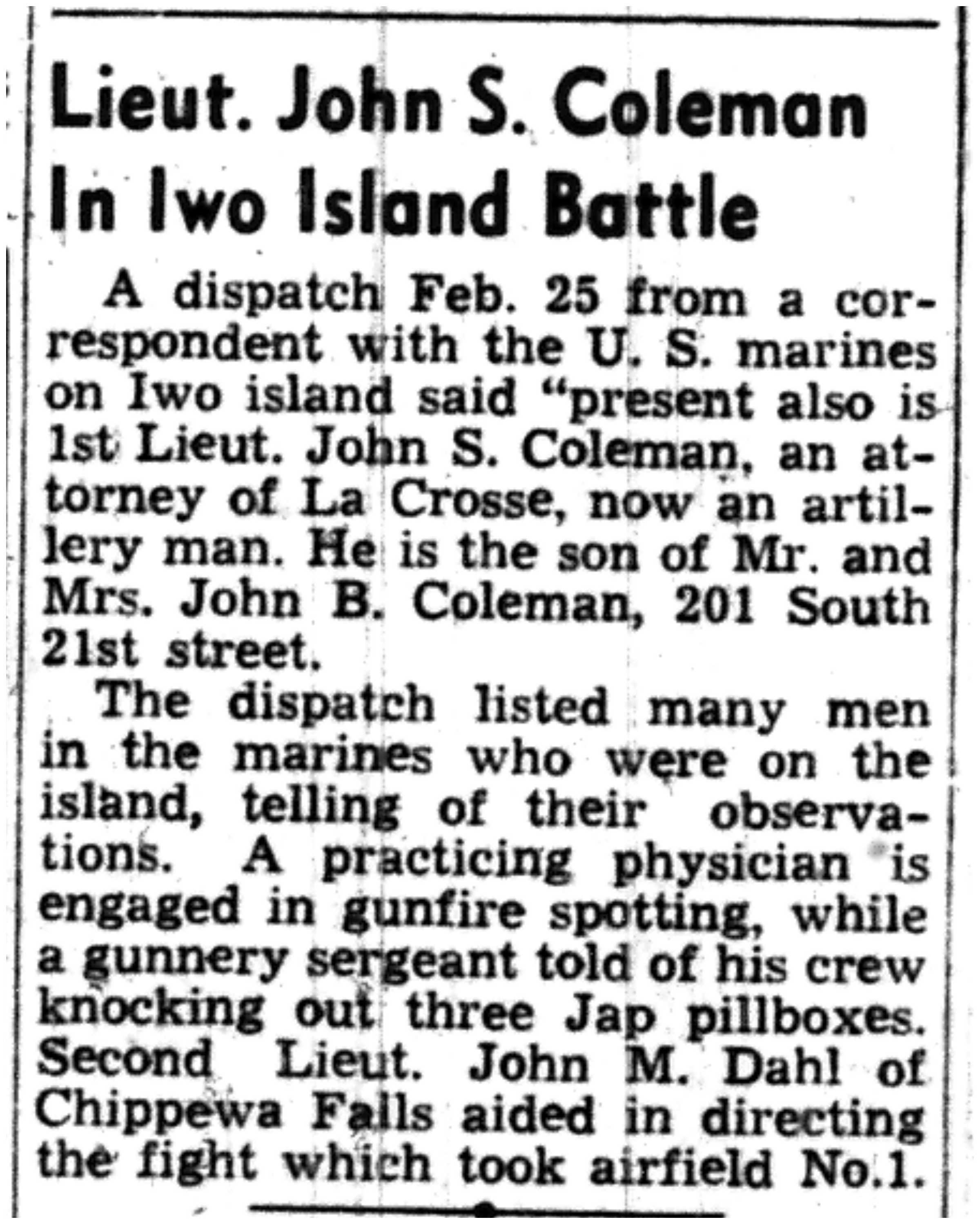 | 1945-3-19 | La Crosse Tribune p1 | |