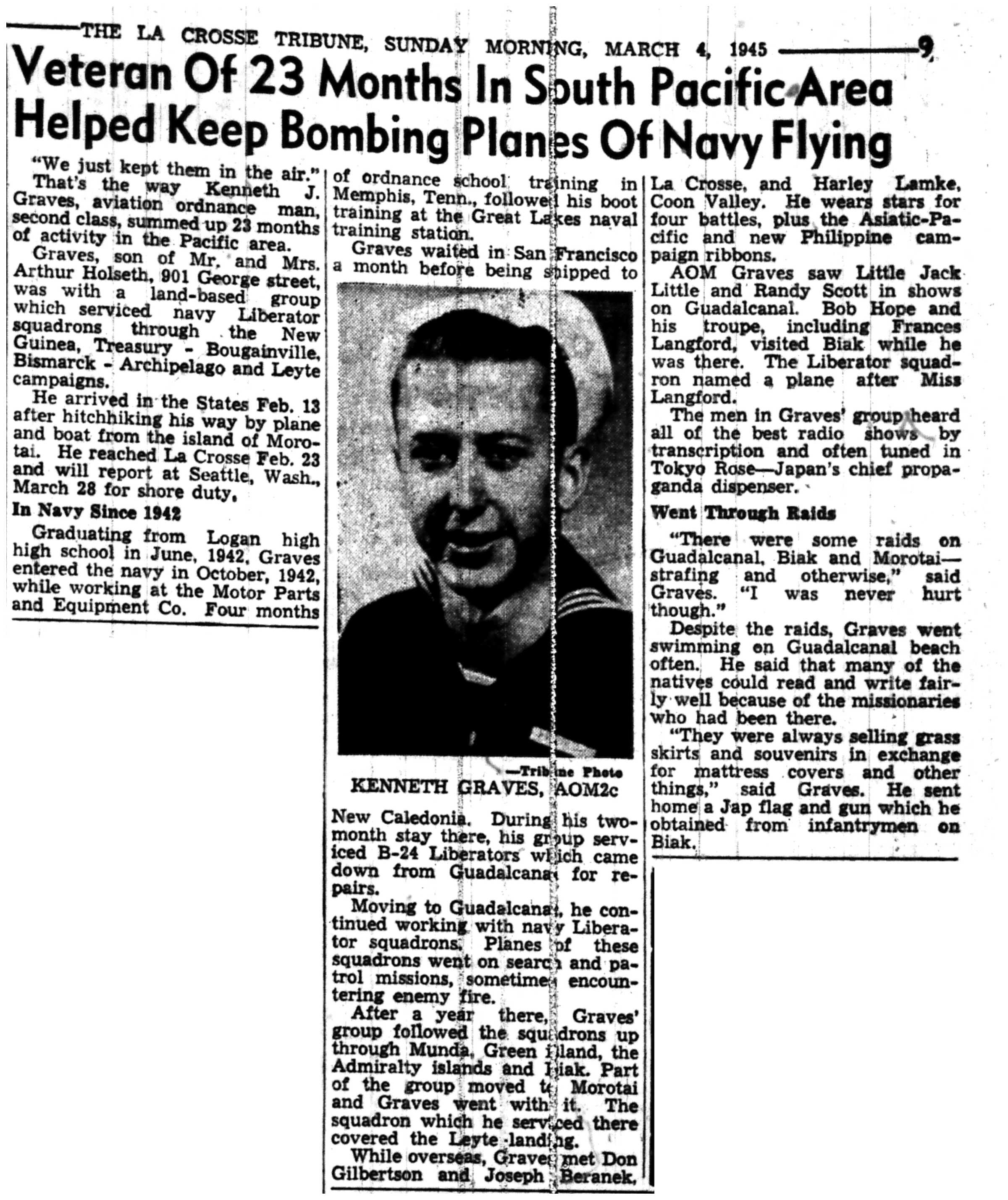 | 1945-3-6 | La Crosse Tribune p2 |