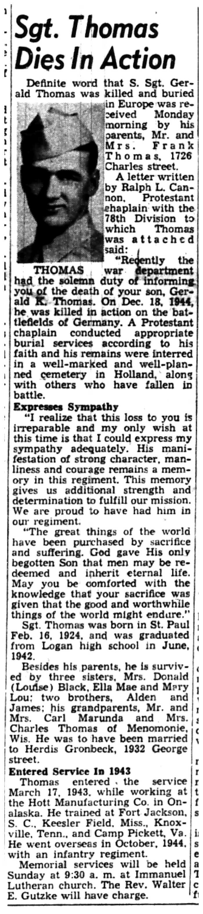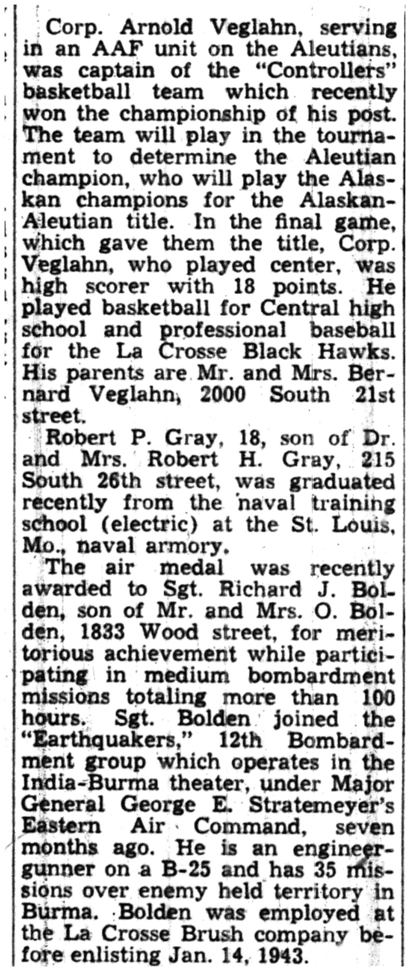 | 1945-3-25 | La Crosse Tribune p14 | |