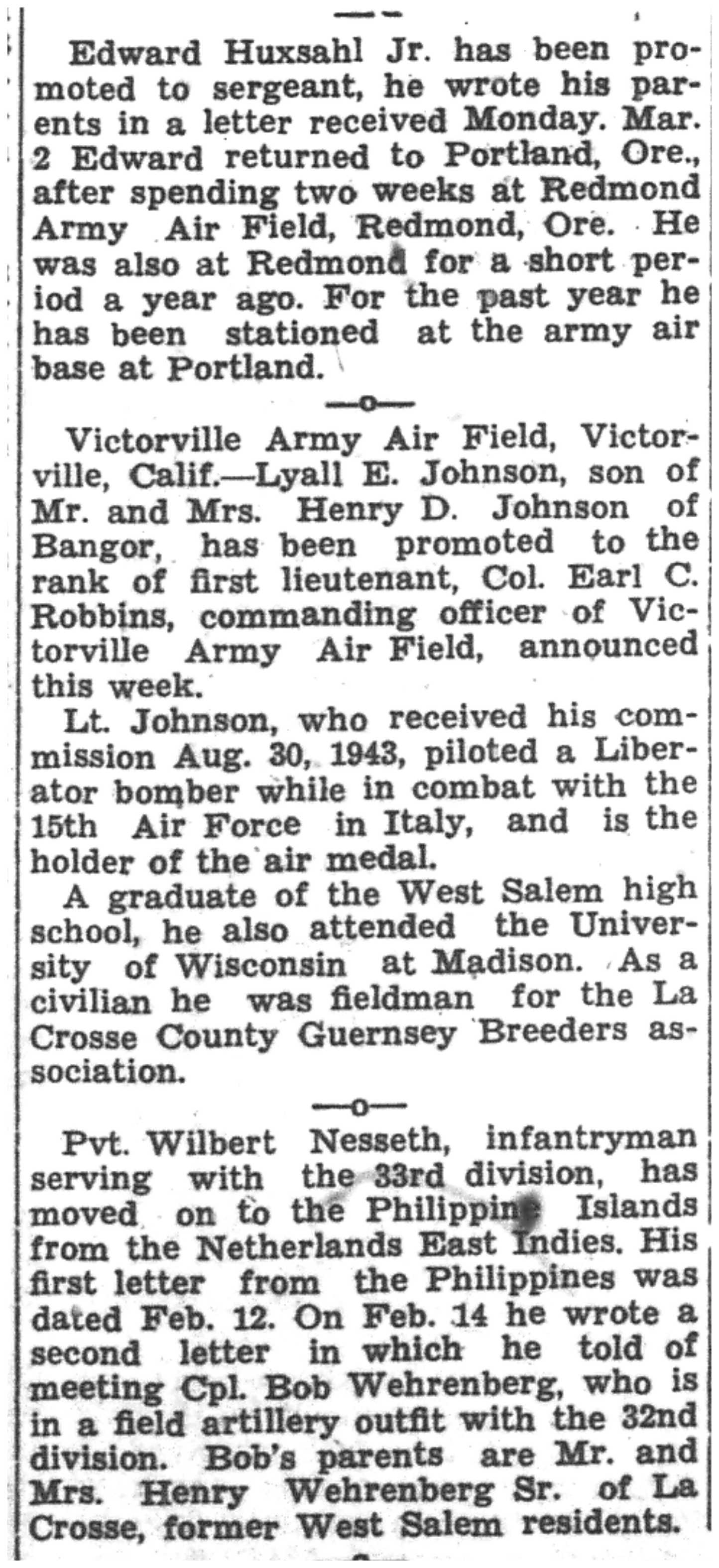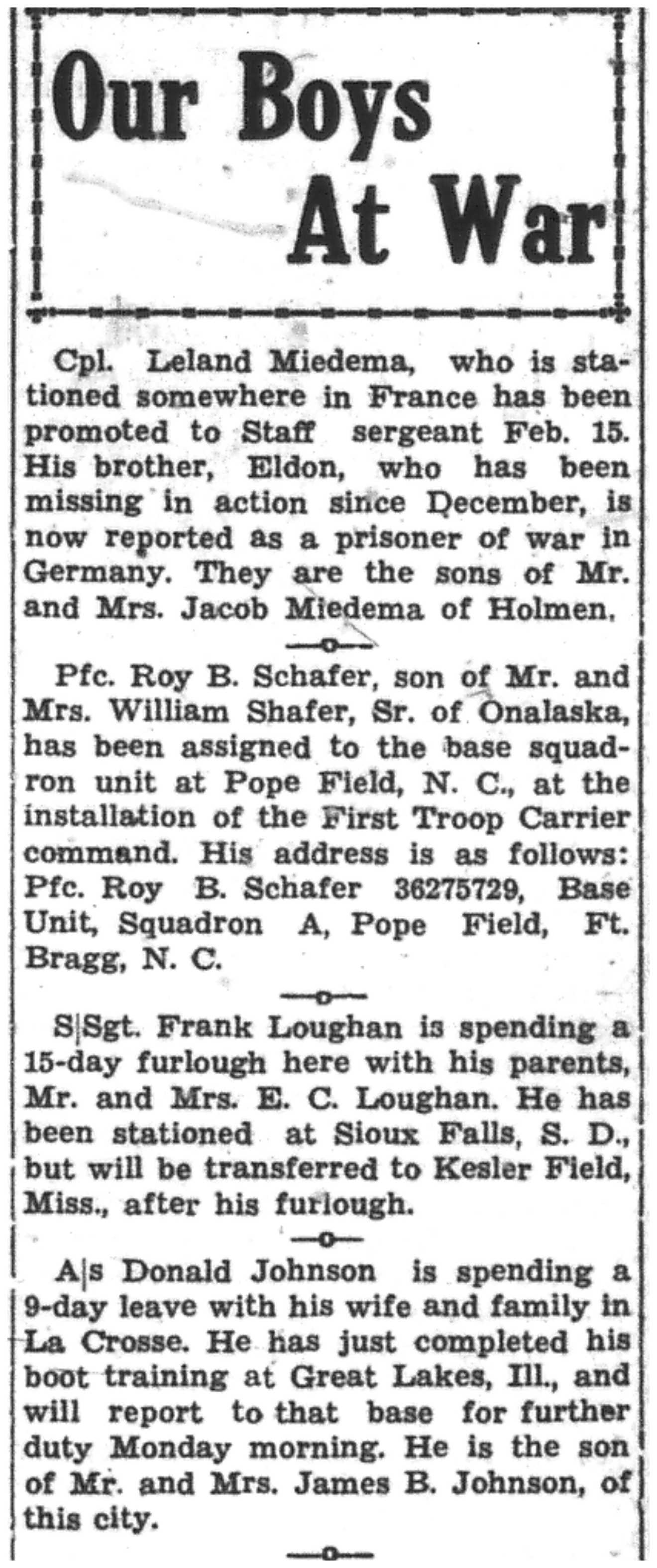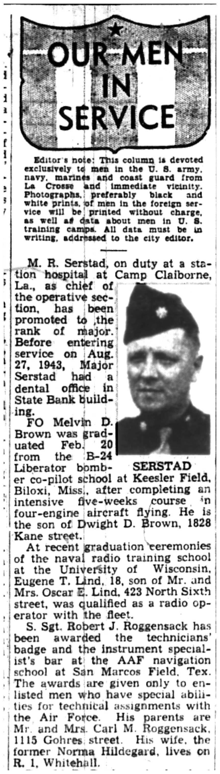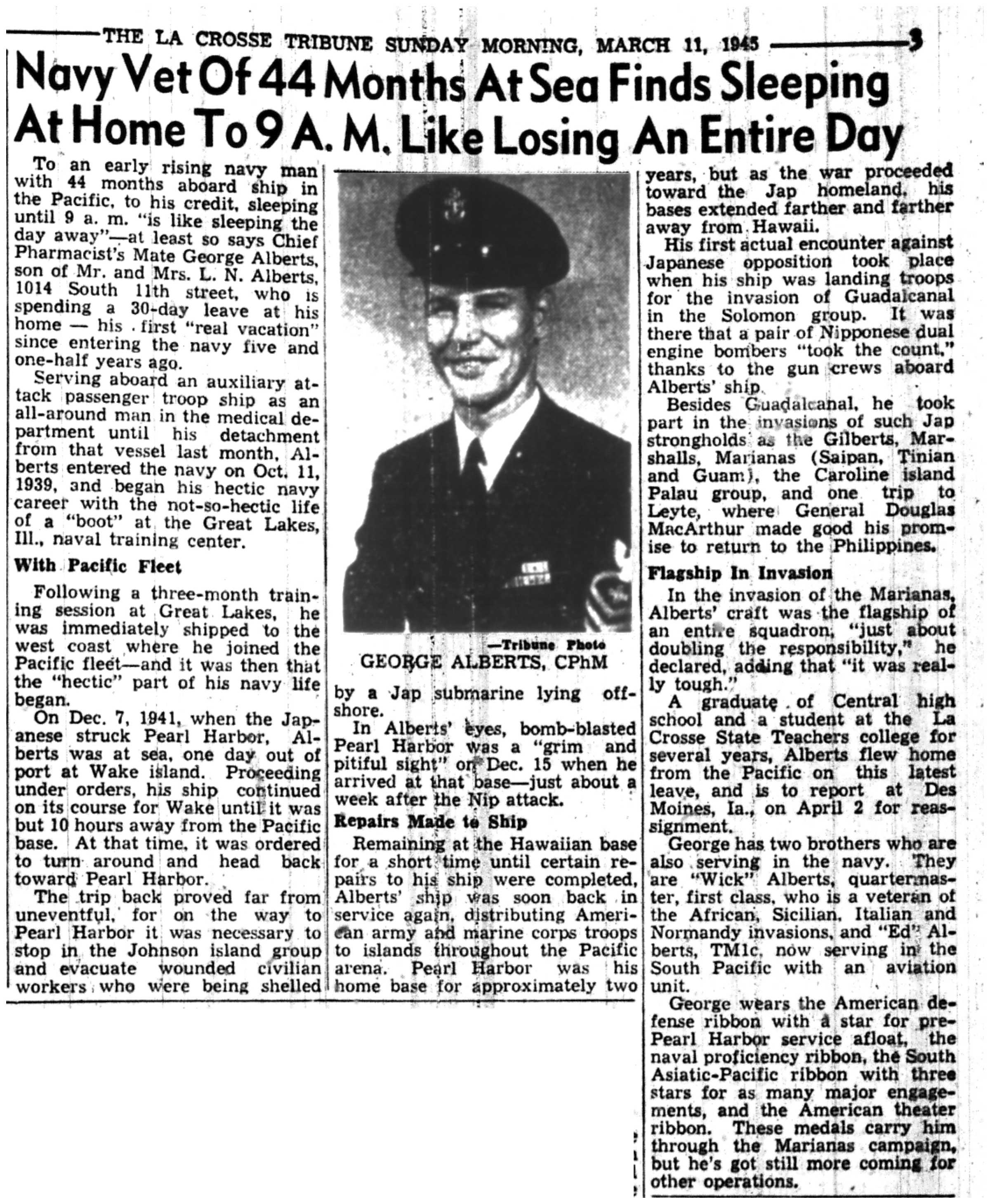 | 1945-3-3 | La Crosse Tribune p6 | |