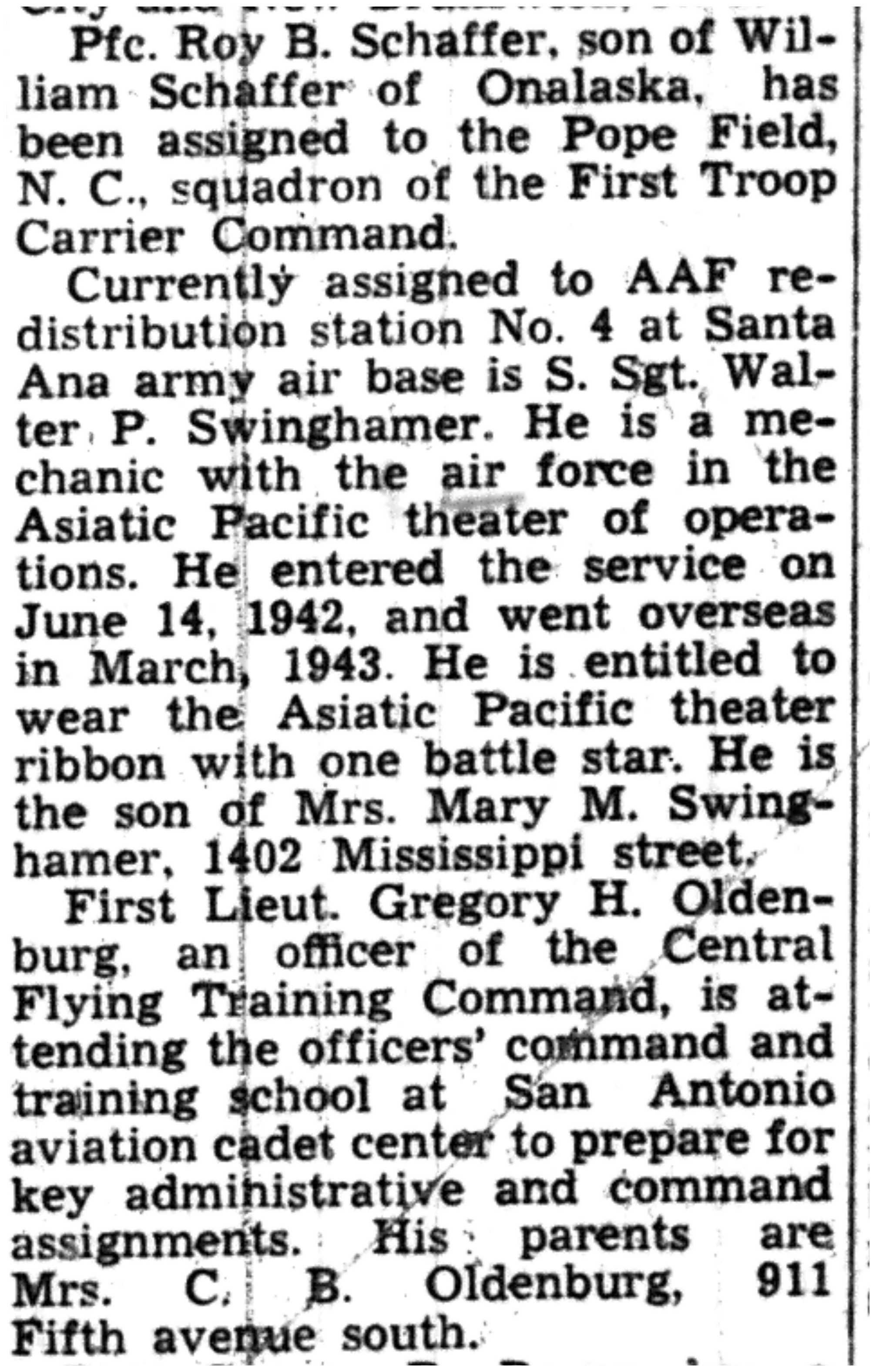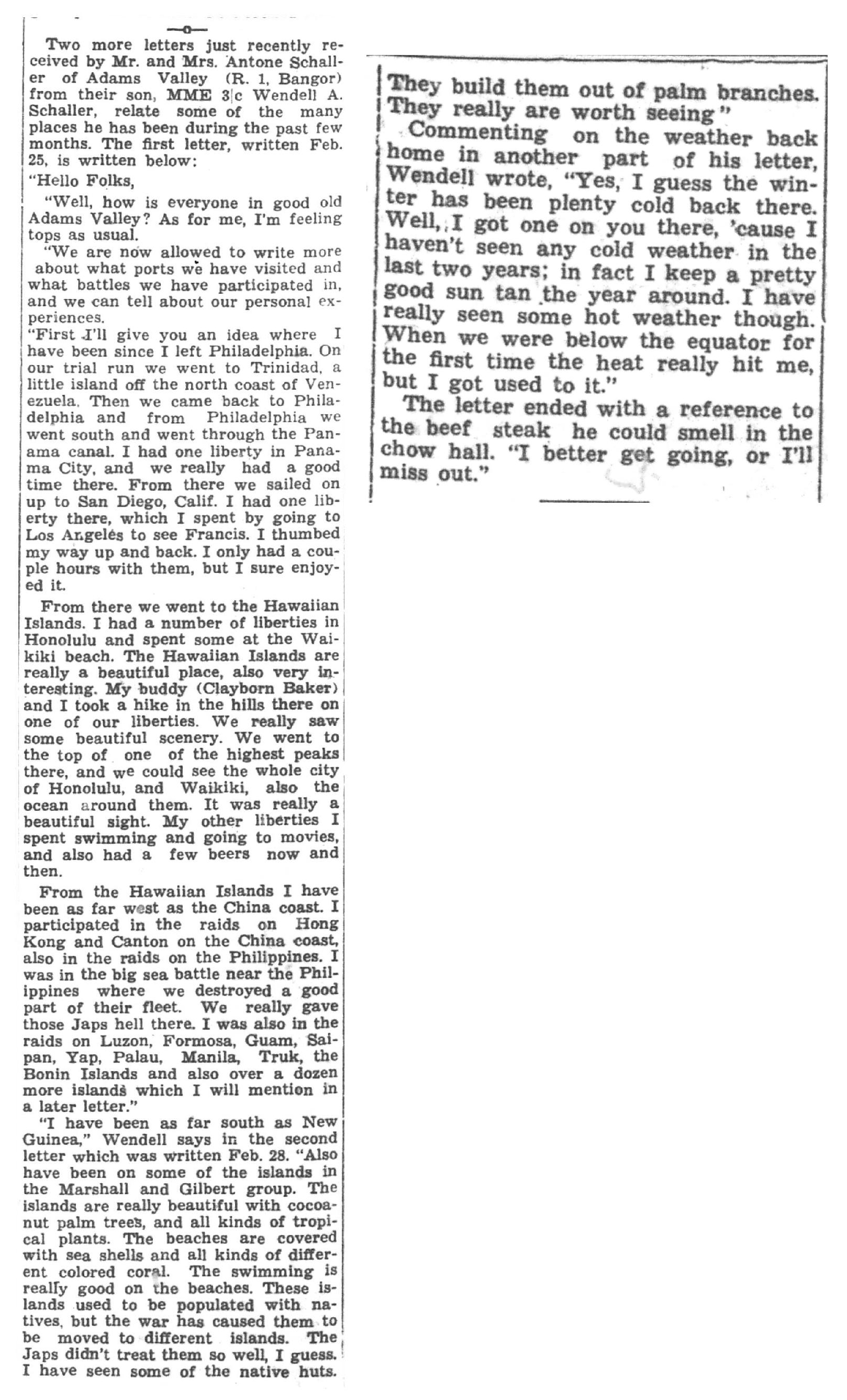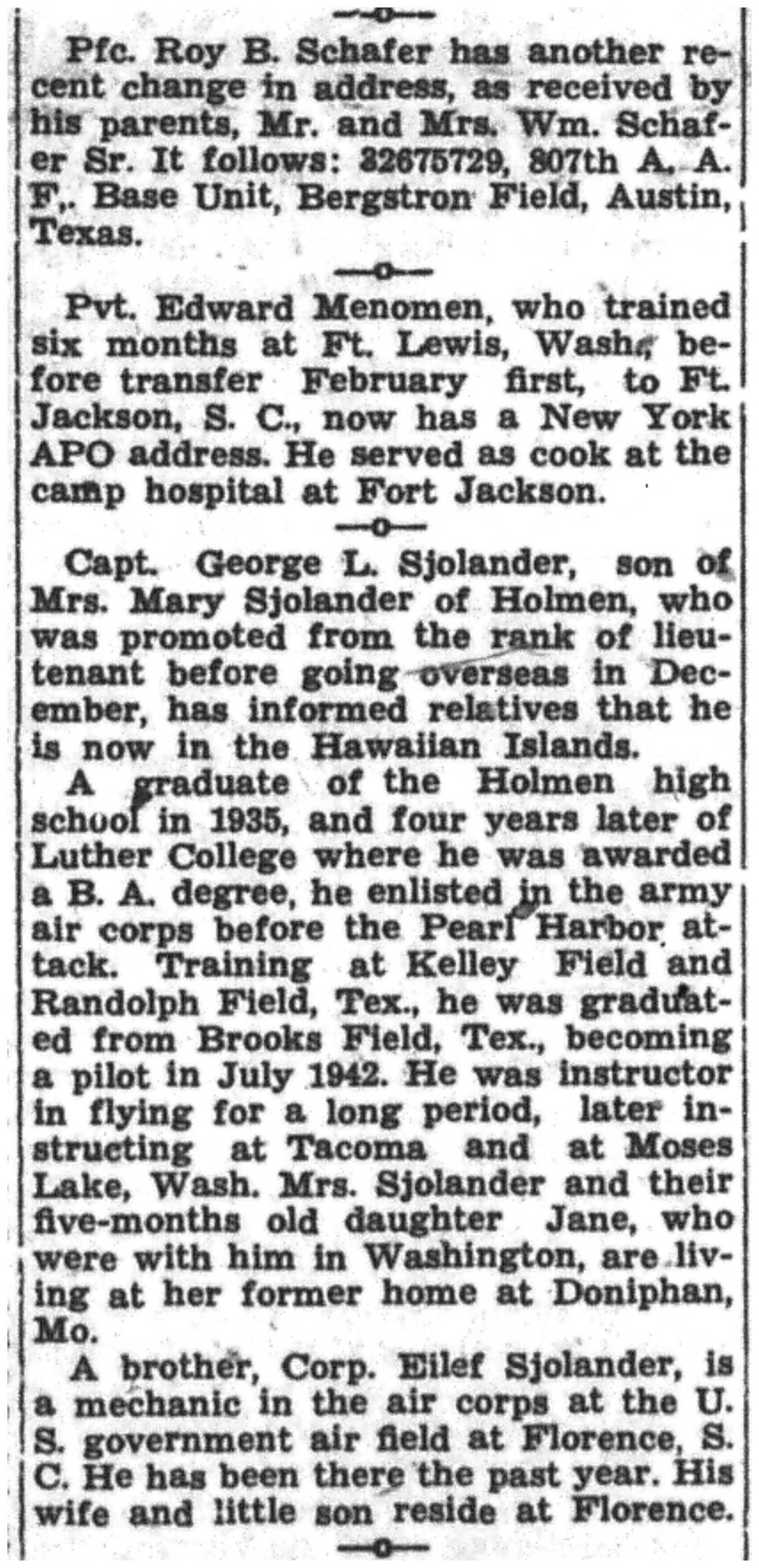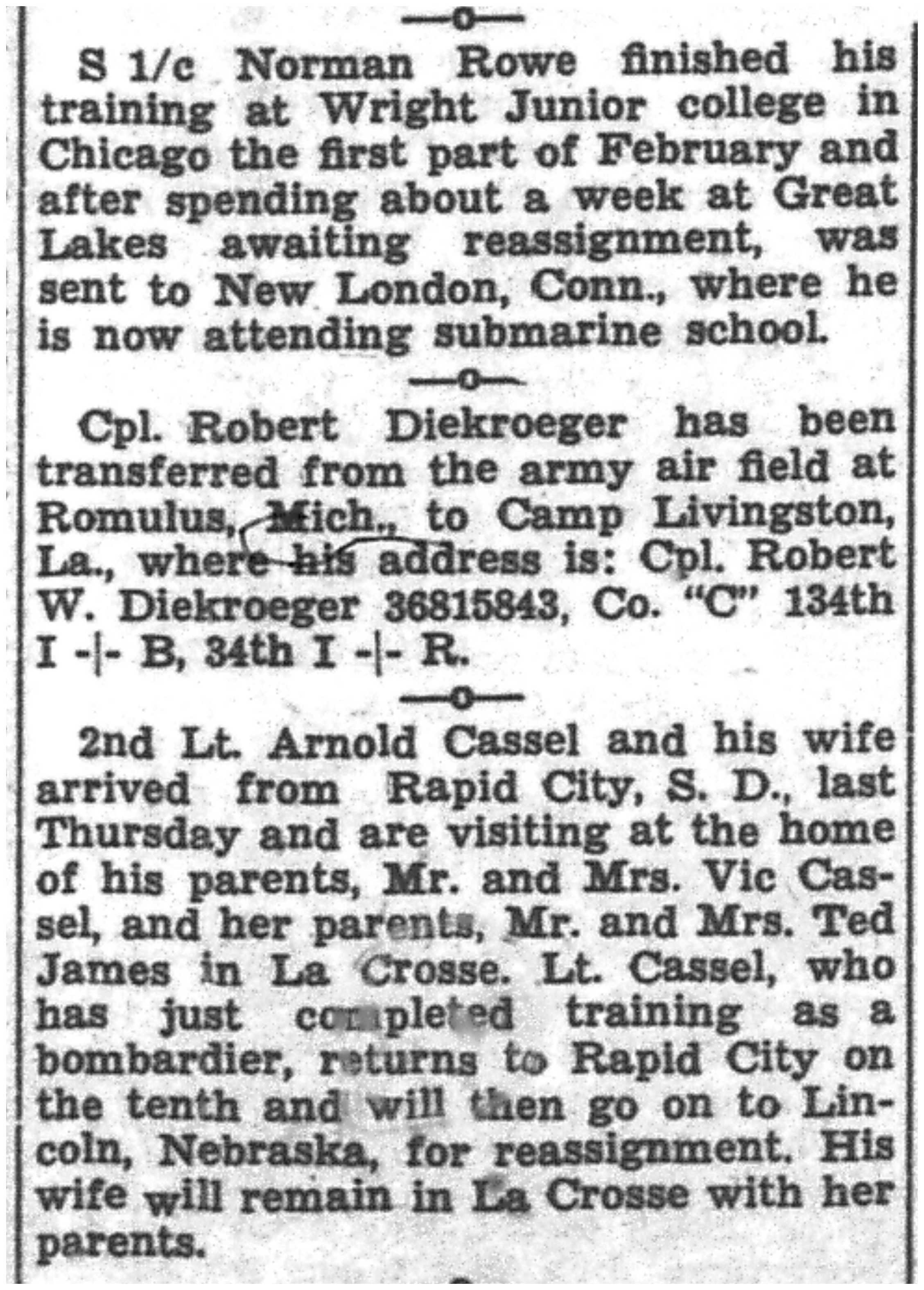 | 1945-3-3 | La Crosse Tribune p6 | |