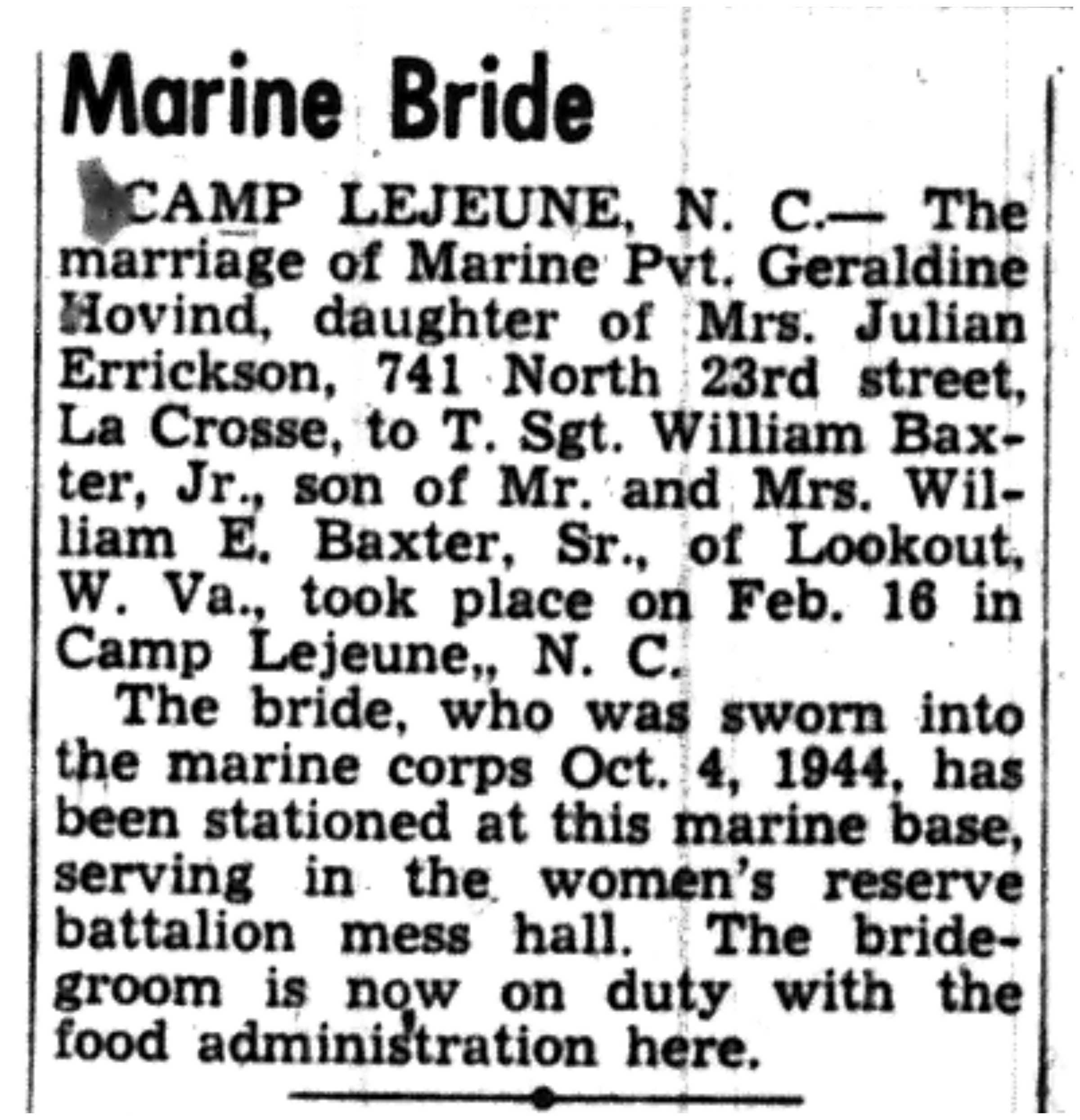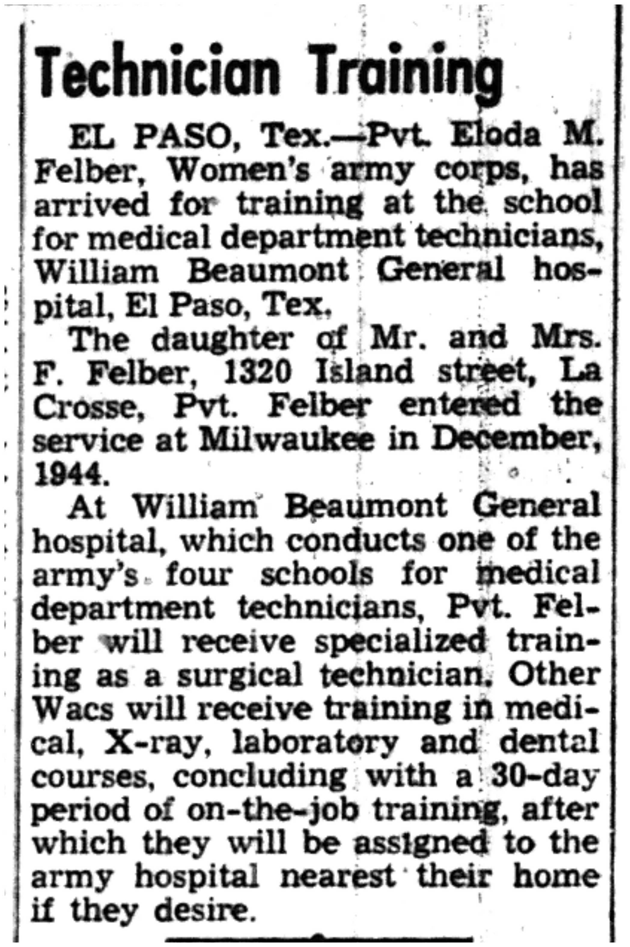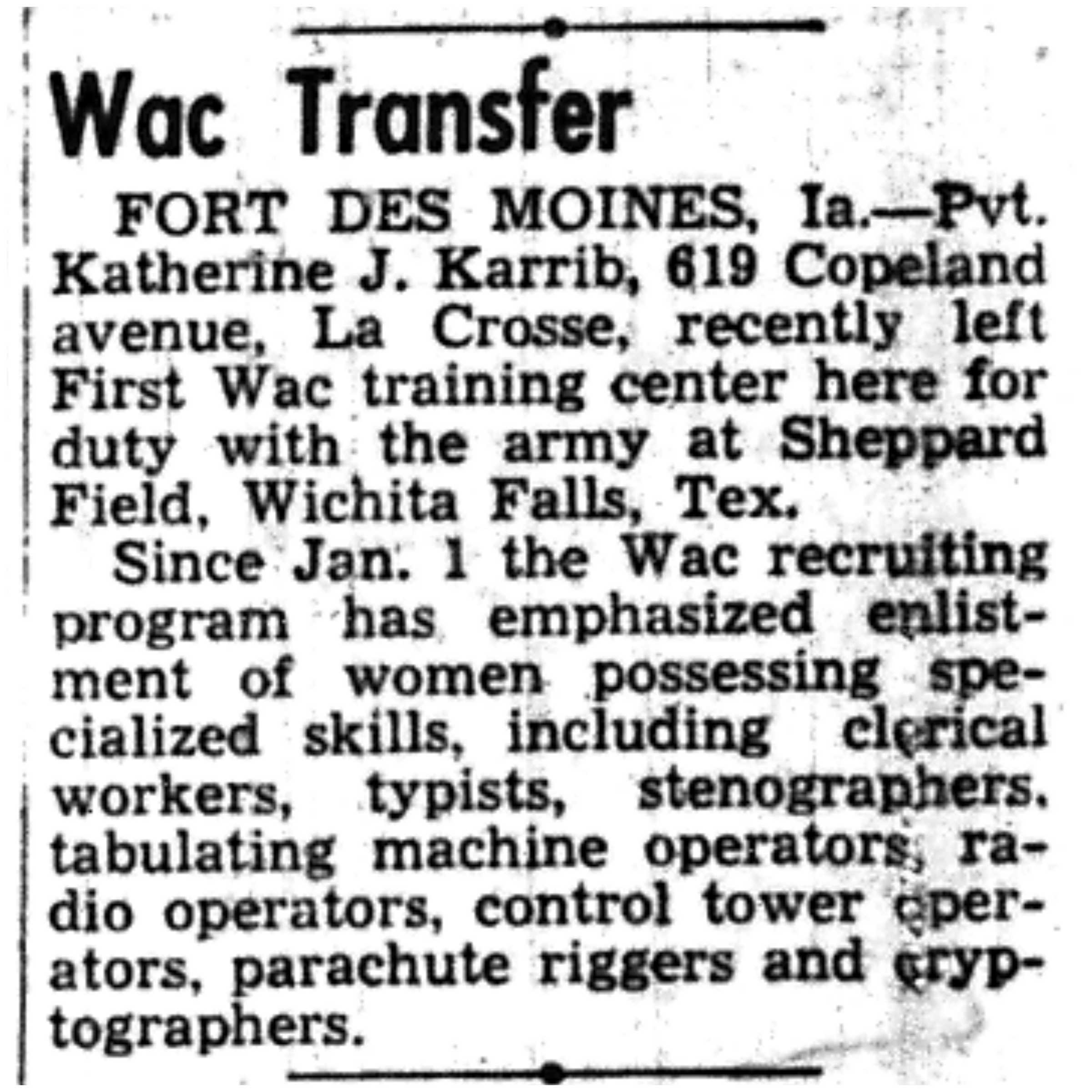 | 1945-3-1 | La Crosse Tribune p17 | |