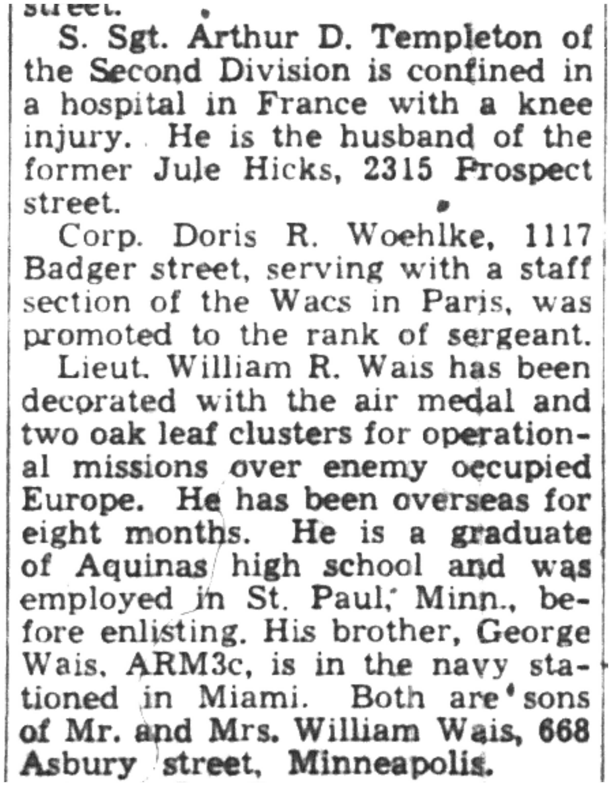 | 1945-3-25 | La Crosse Tribune p9 | |