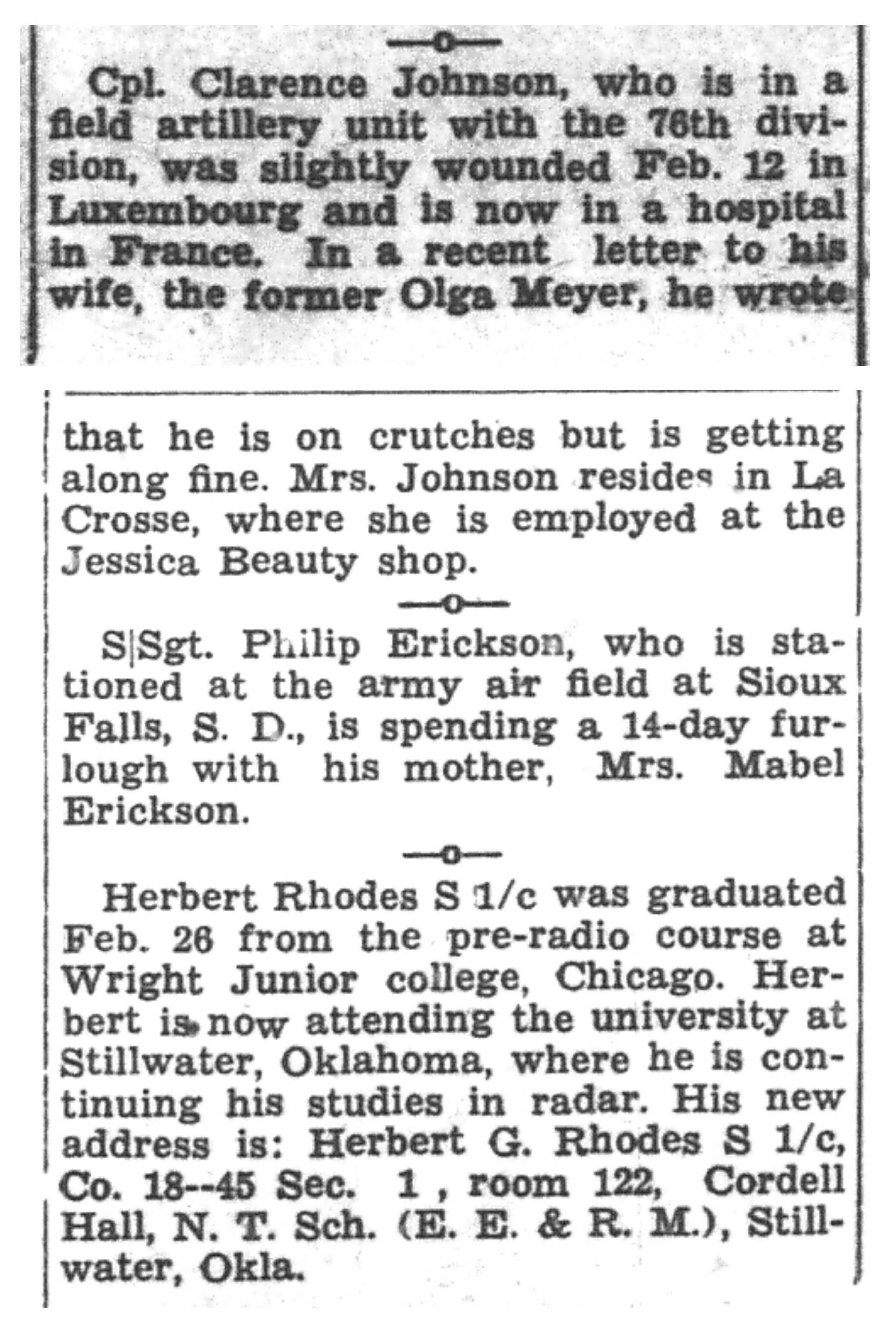 | 1945-3-11 | La Crosse Tribune p5 |