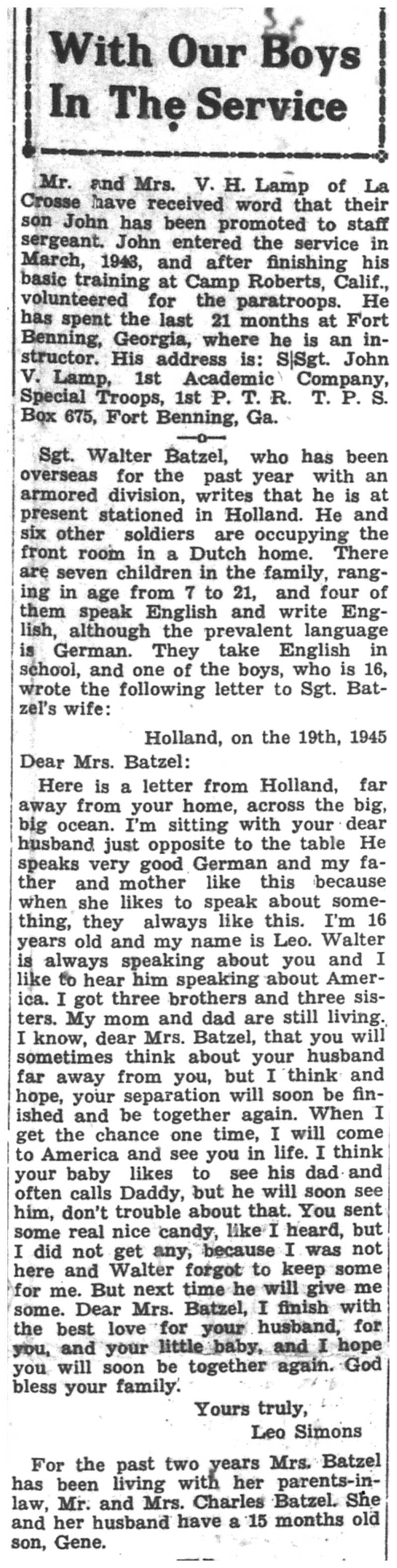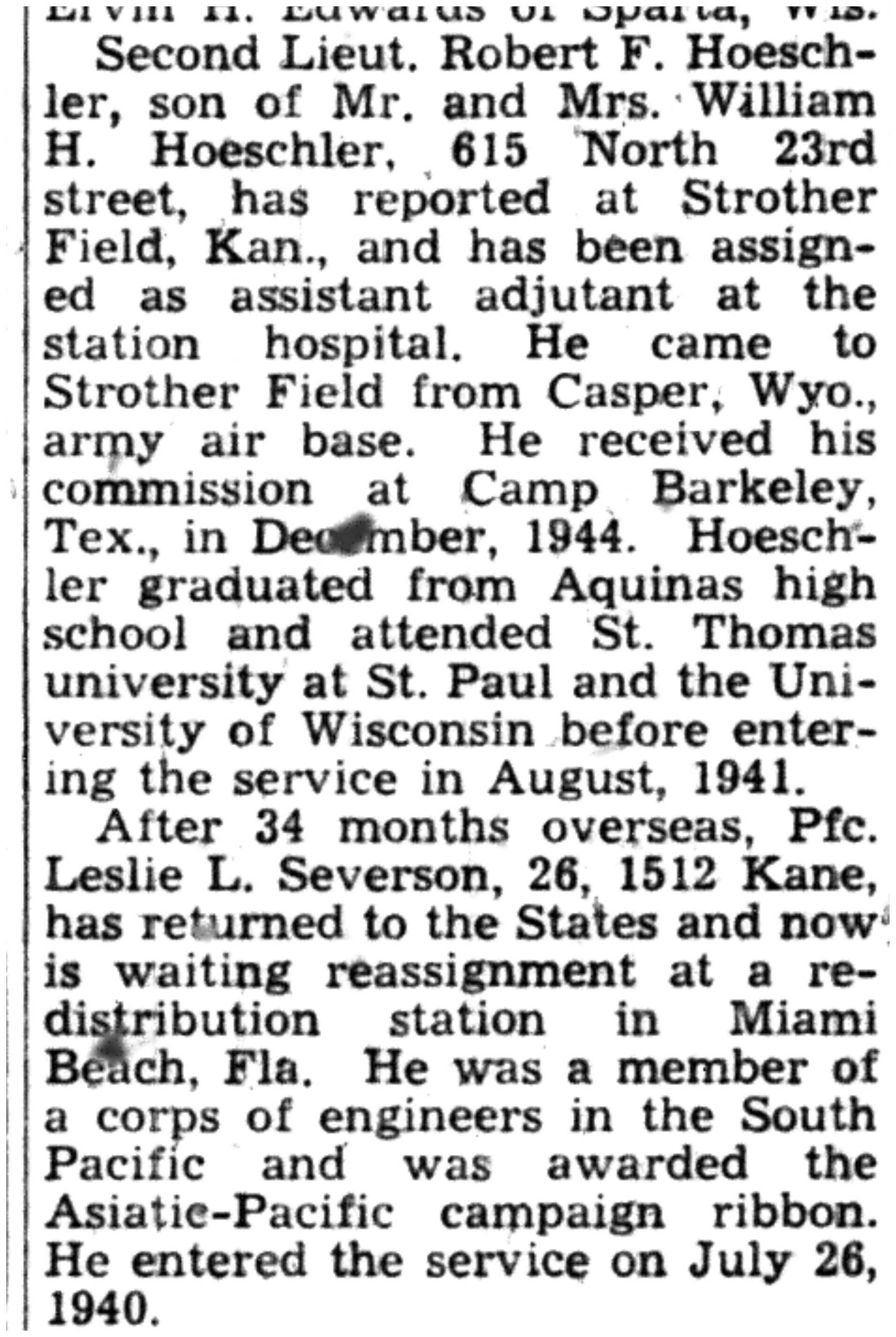 | 1945-3-29 | La Crosse Tribune p18 | |