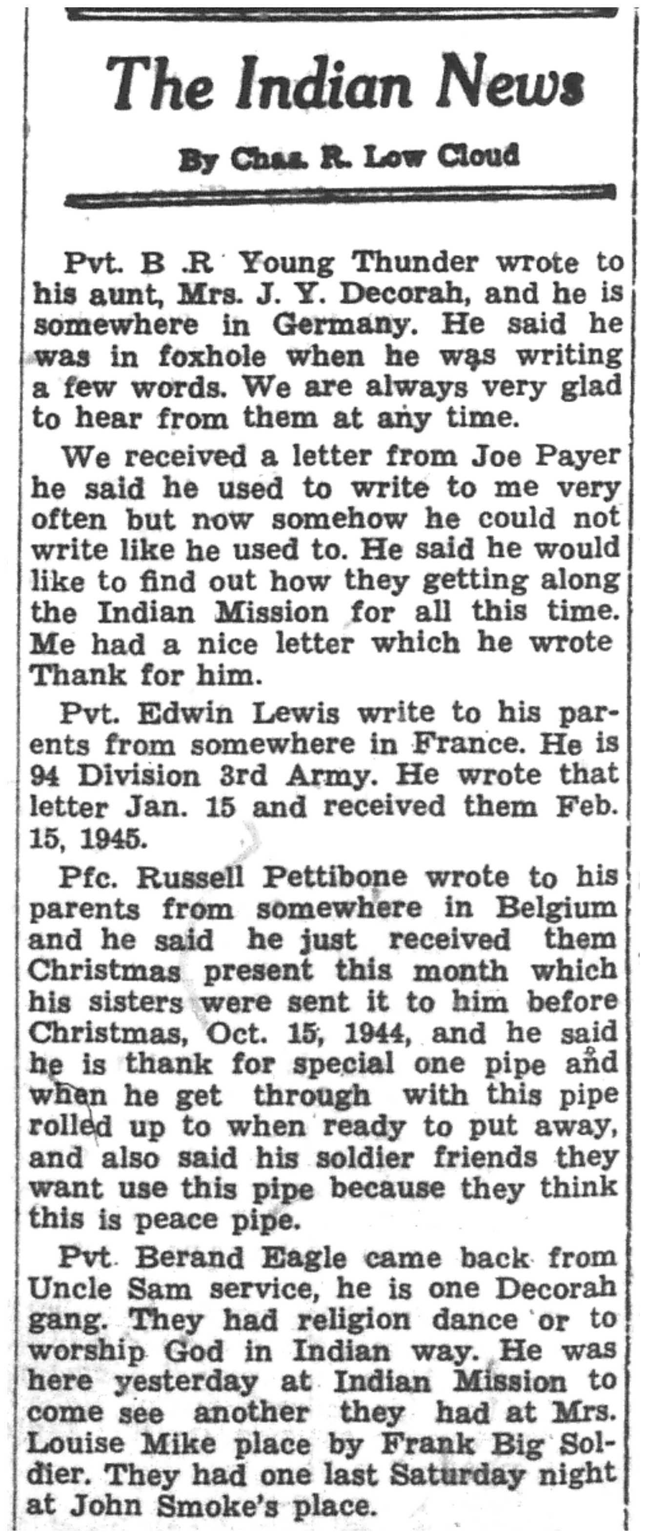B. R. Young Thunder; Edwin Lewis; Russell Pettibone; Berand Eagle |