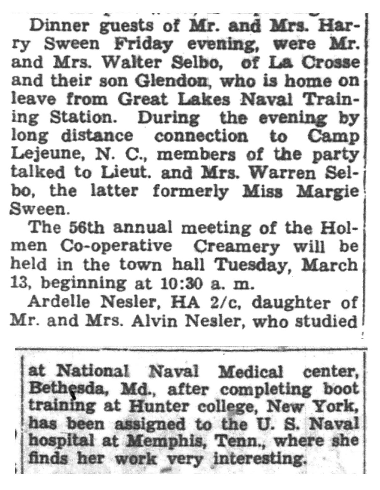 | 1945-3-29 | La Crosse County Record p4 | |