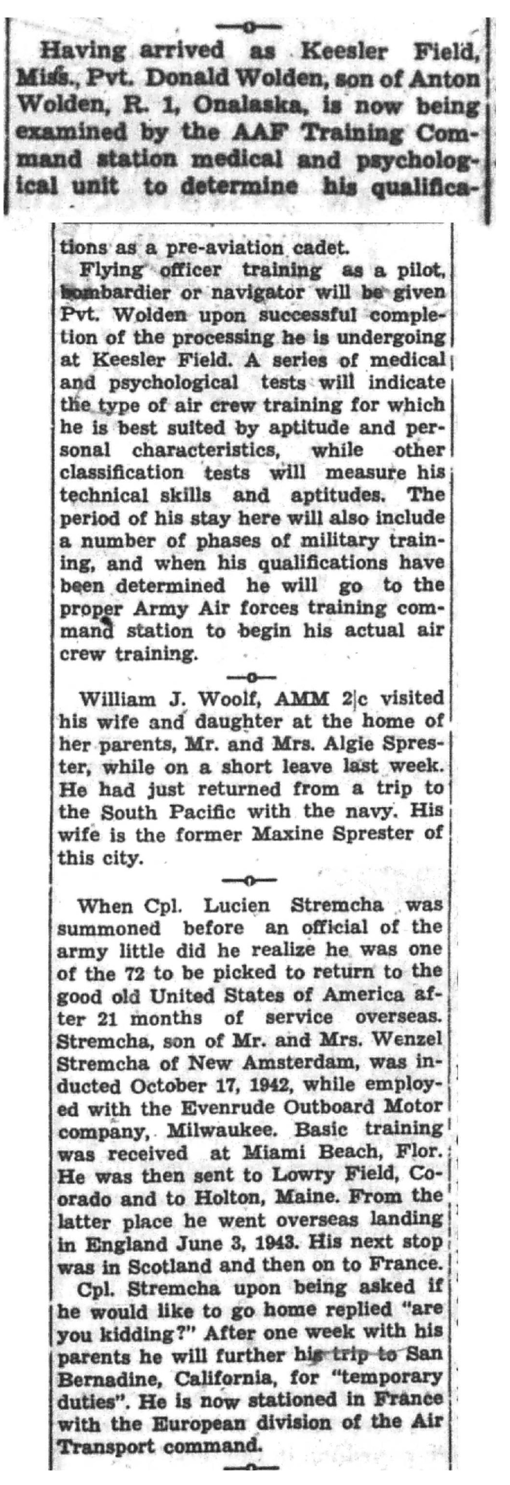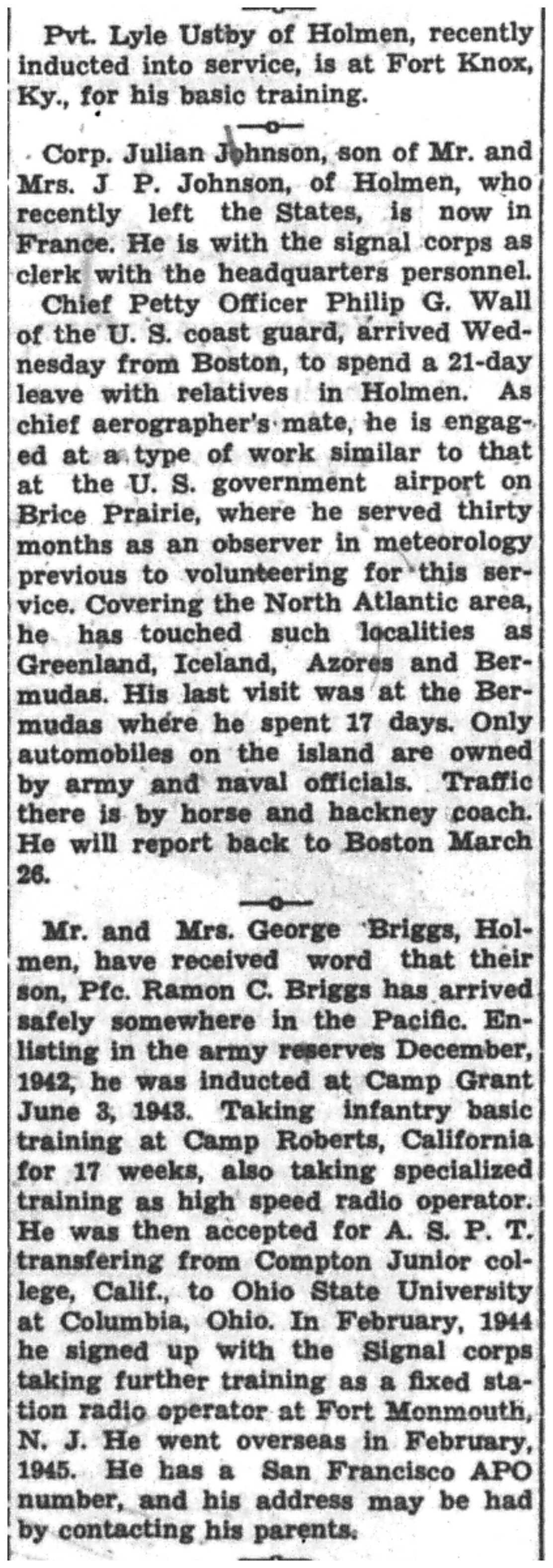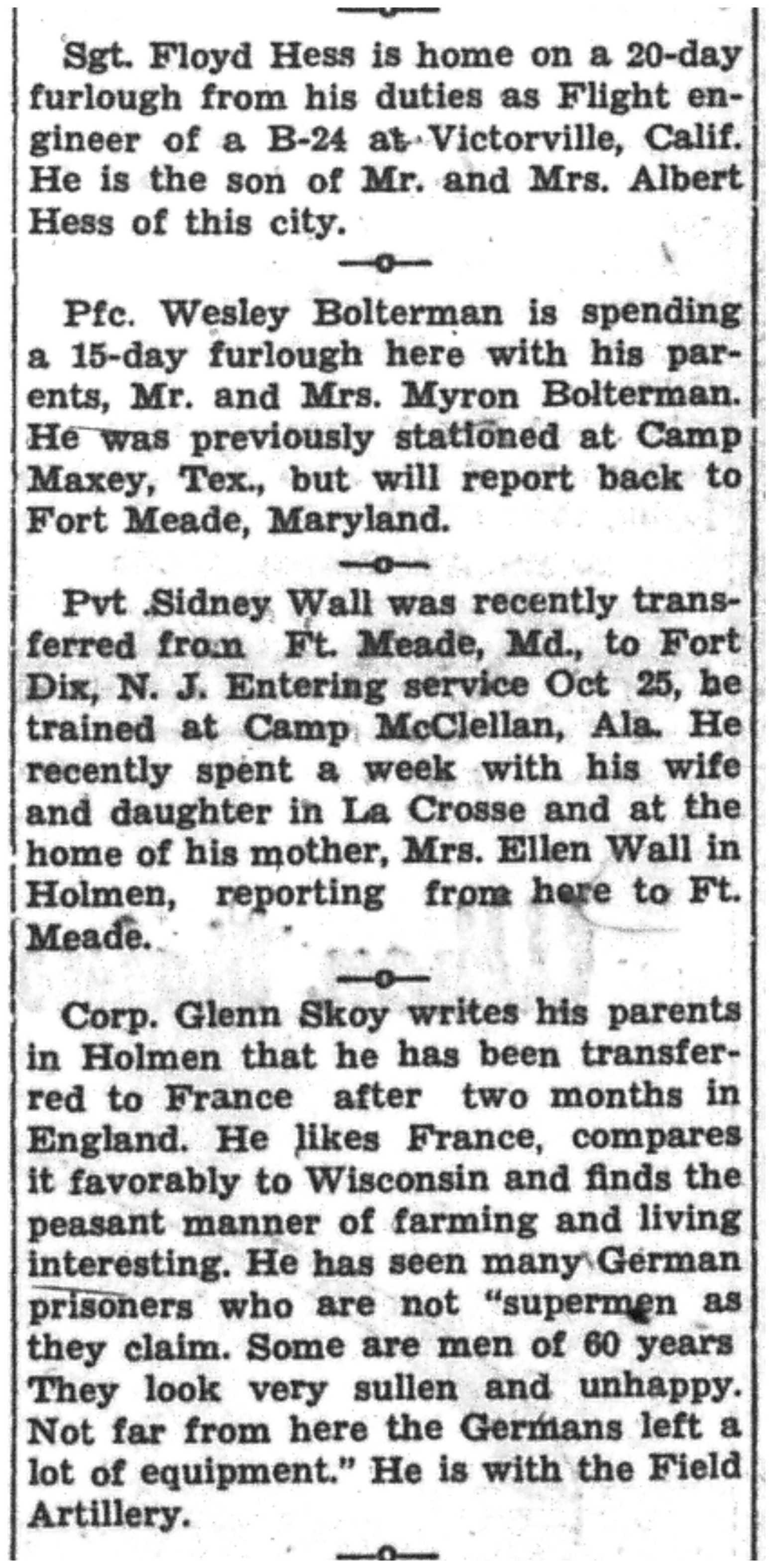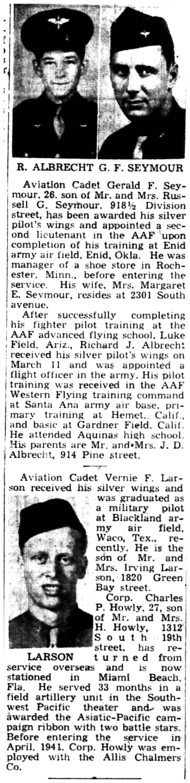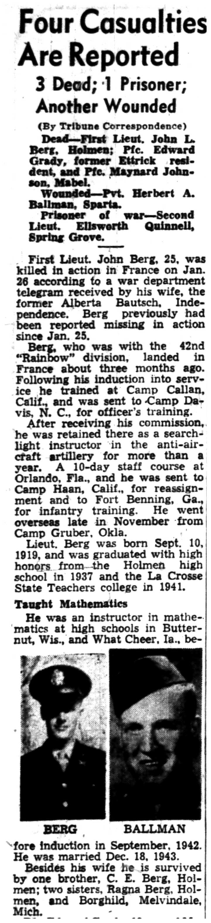 | 1945-3-25 | La Crosse Tribune p3 |