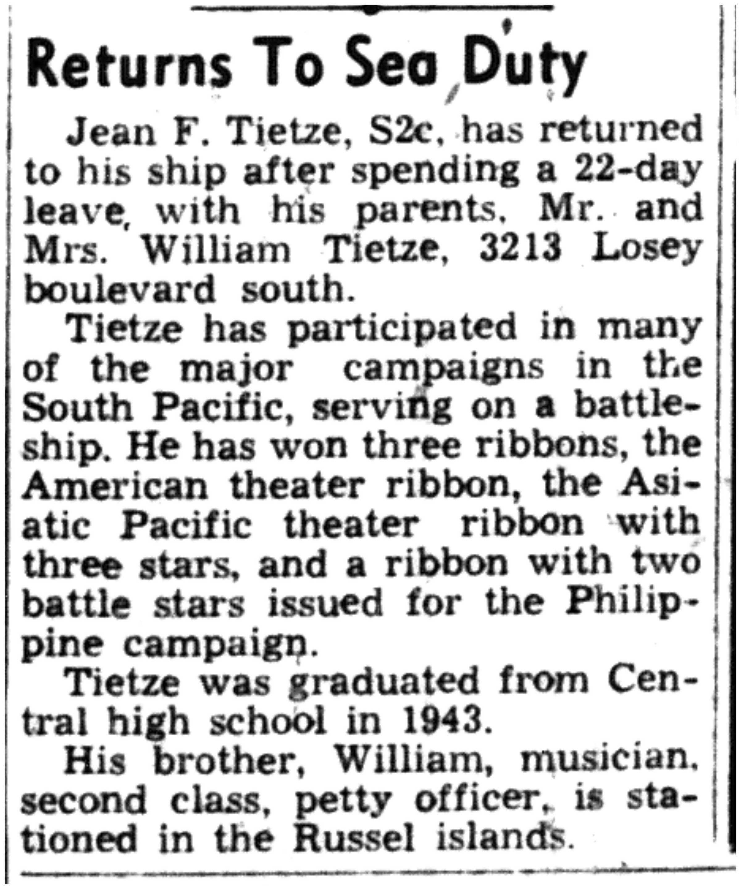 | 1945-3-29 | La Crosse Tribune p12 | |