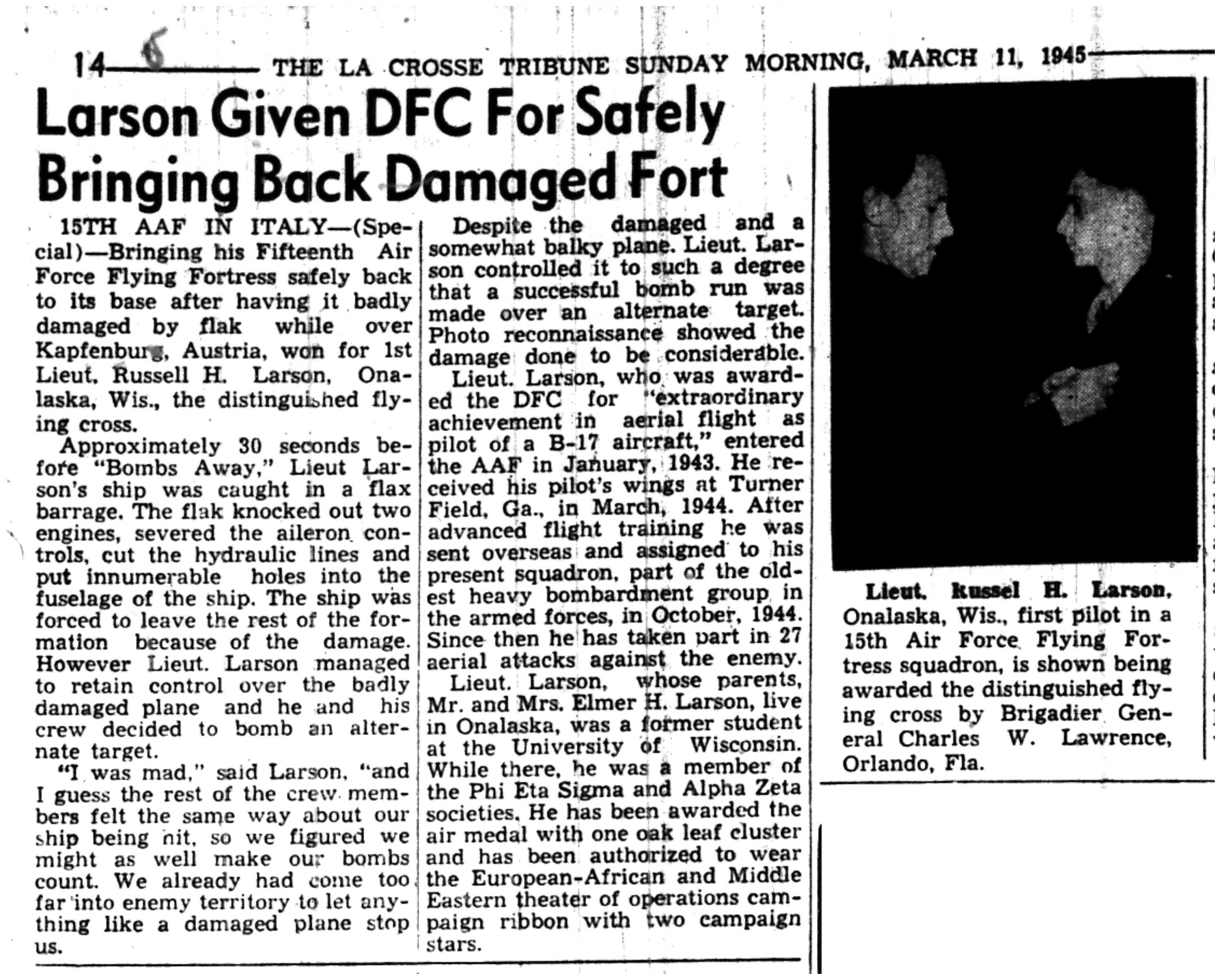 | 1945-3-30 | La Crosse Tribune p1 |